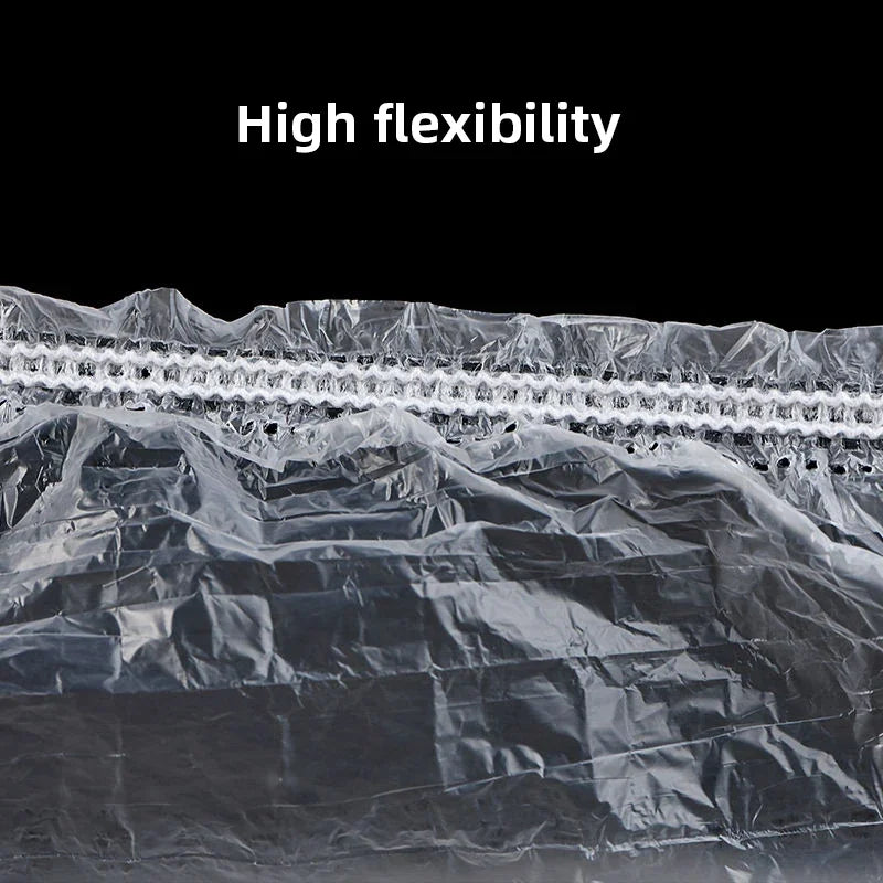 【MULTI-USE】 Except for the shower and hair salon and kitchen. It can be used as a shoe cover, hat cover, travel bag for shoes, a dog poop bag, wet bag, piping bag, camera case, etc. Light and small Disposable Shower Cap make camping, travel, and many other outdoor activities convenient