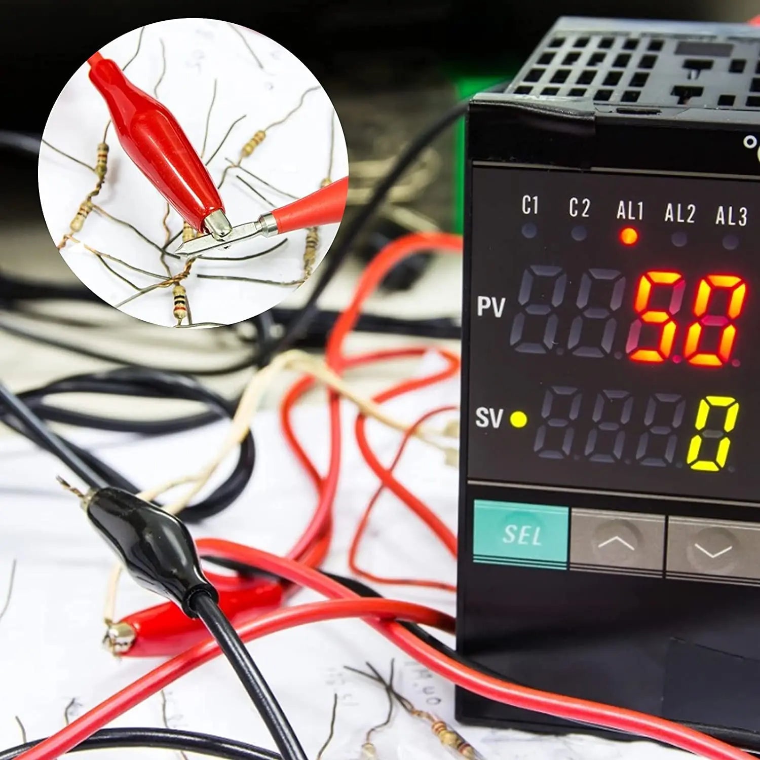 【Alligator Clips Electrical】:The test leads with alligator clips have the very premium clamps, and the size is 1.38 inch/35mm, which make these alligator clips have many much bigger size application firmly