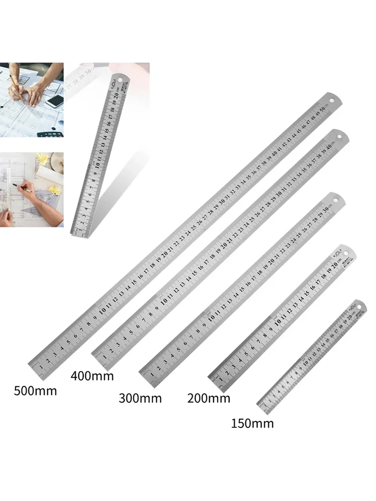 150mm/500mm Metal Scale Stainless Steel Straight Ruler Measuring Stationery Drafting Accessory Hand Tool School Office Supplies