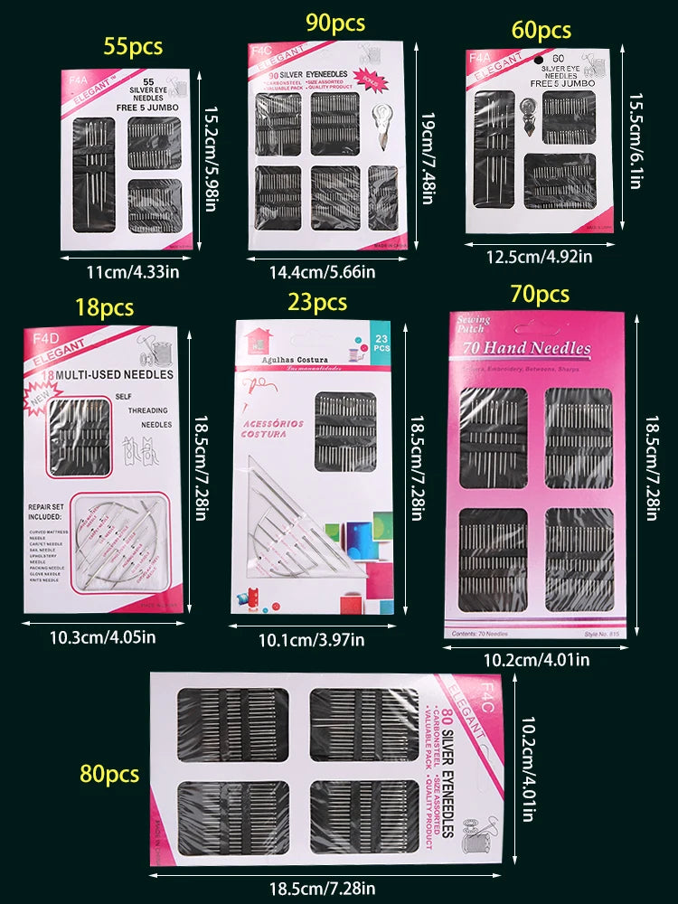 18/23/55/60/70/80/90pcs Stainless steel large eye hand sewing needle, used for sewing clothes embroidery needles