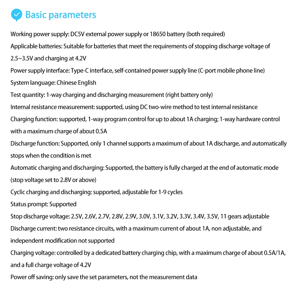 -Supports individual charging and discharging, up to 9 charging and discharging cycles in automatic mode