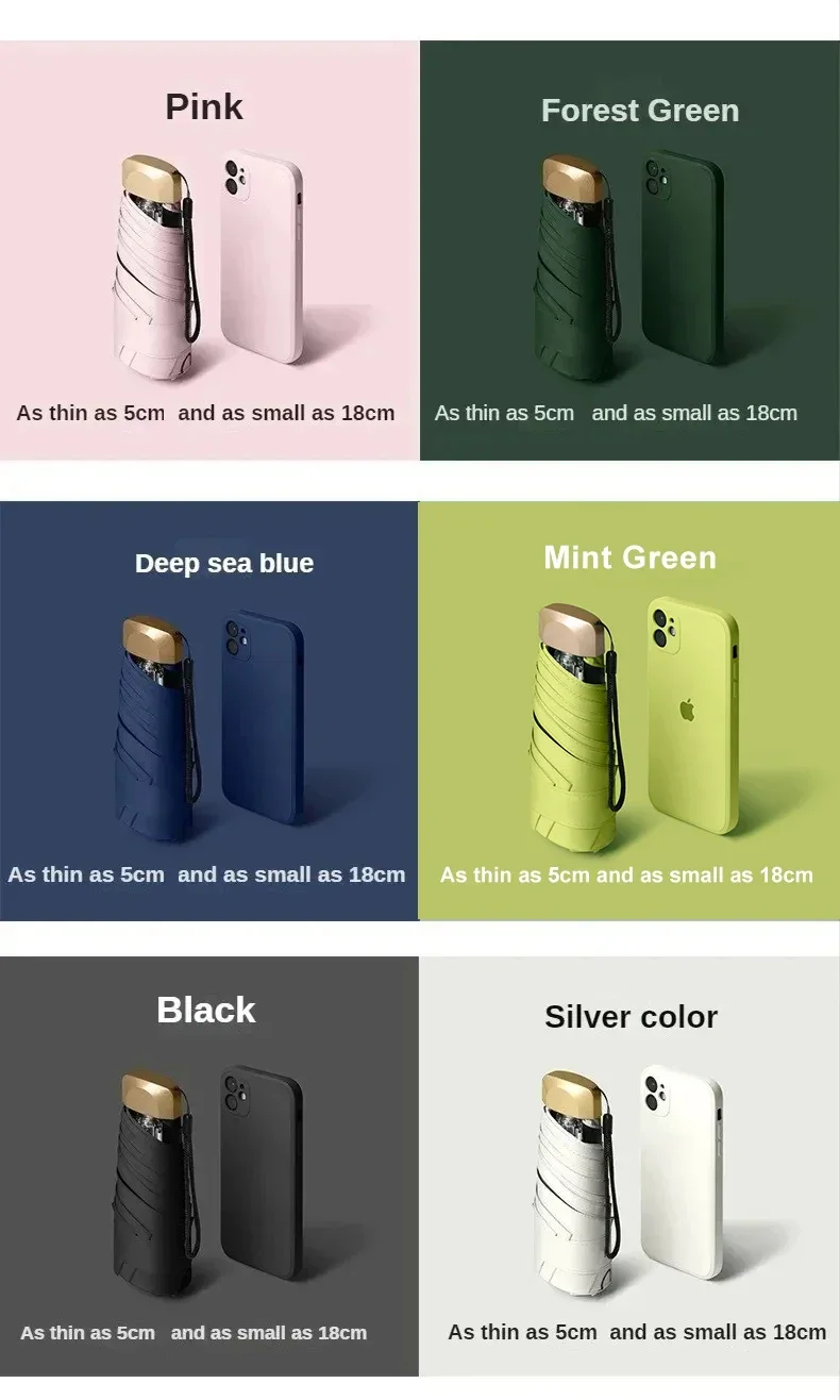1Pc Mini Sun Umbrella Pocket Rain Umbrella Vinyl Folding UV Ultraviolet Protection Sun Shade Pocket Parasol Capsule