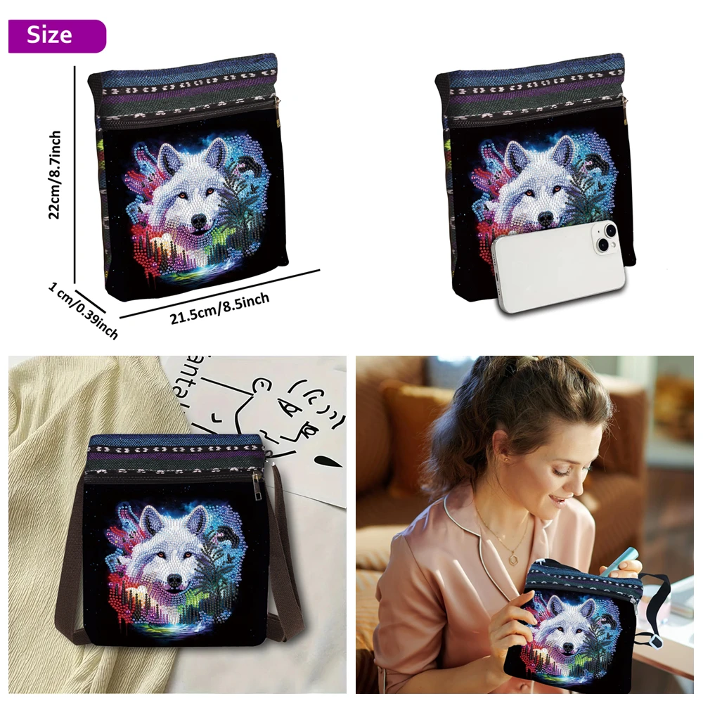 1pc/Set DIY Animals Diamond Art Handbags Canvas Zipper Purses with Strap Wolfs Diamond Painting Crossbody Bag for Adults