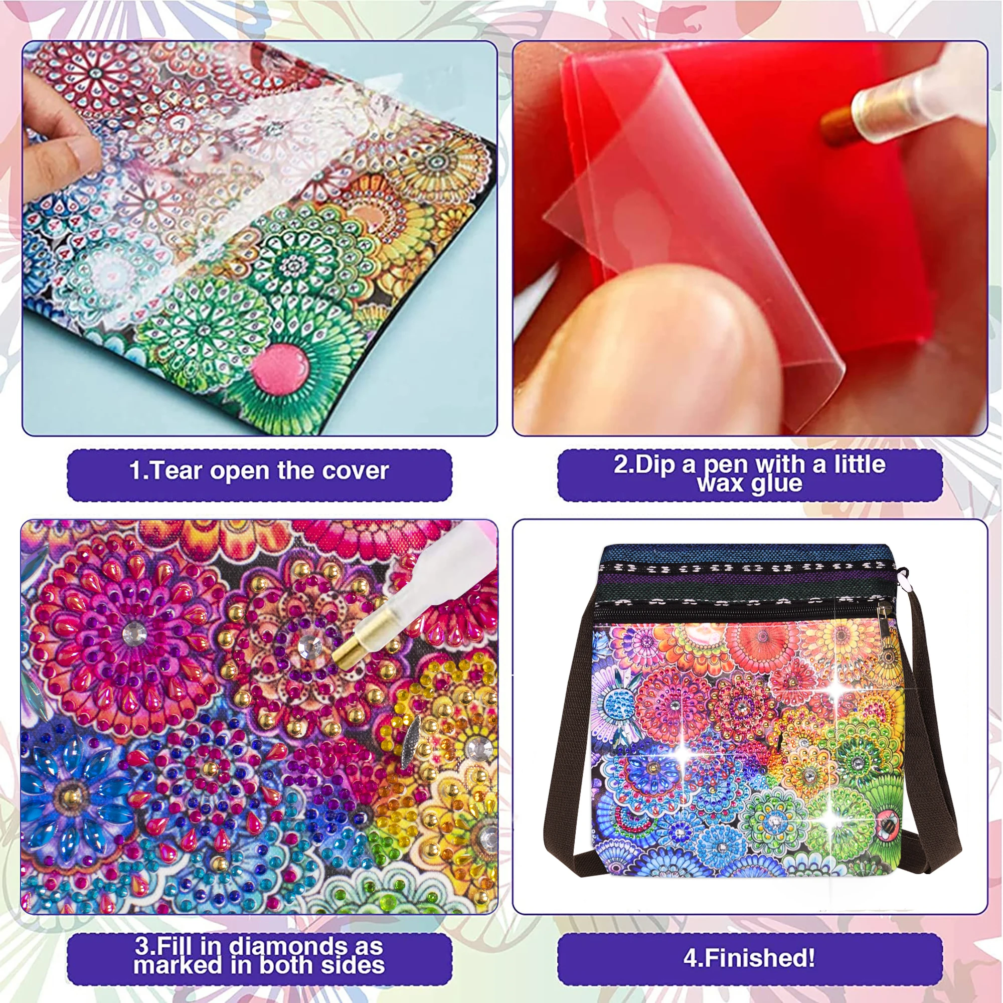 1pc/Set DIY Mandalas Diamond Art Purses Canvas Zipper Handbag with Strap Mandalas Diamond Painting Crossbody Bag for Adults