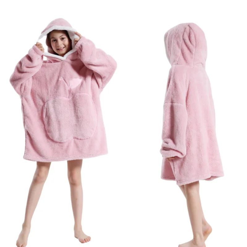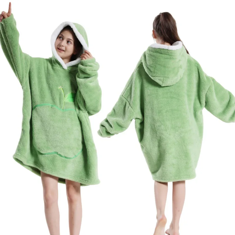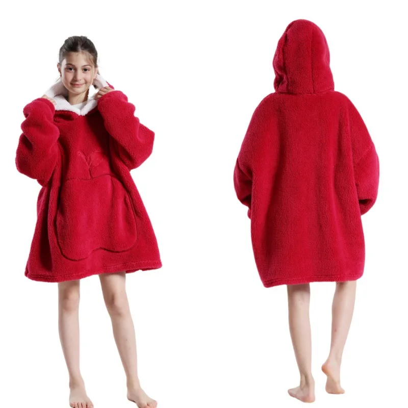 2024 Winter Oversized Wearable Blanket Hoodie Hooded TV Blanket Sleeved for Kids Women Super Long Pullover Fleece Sweatshirts