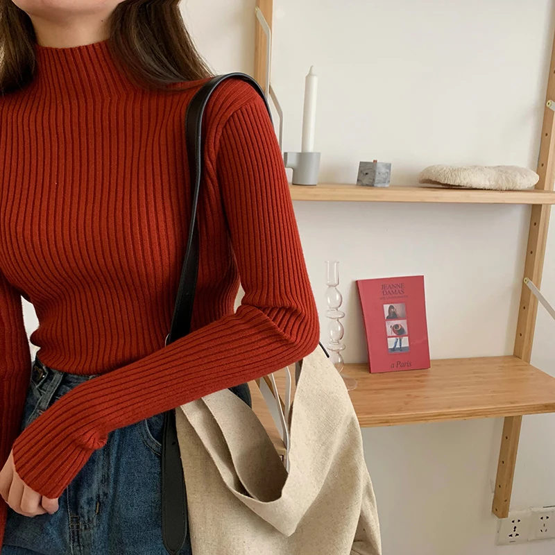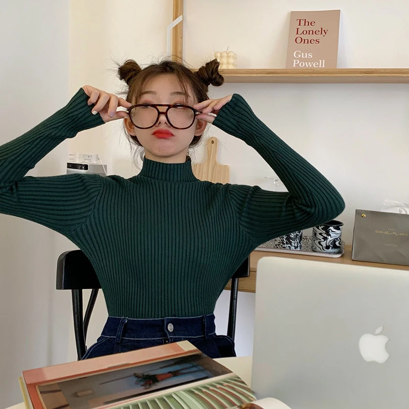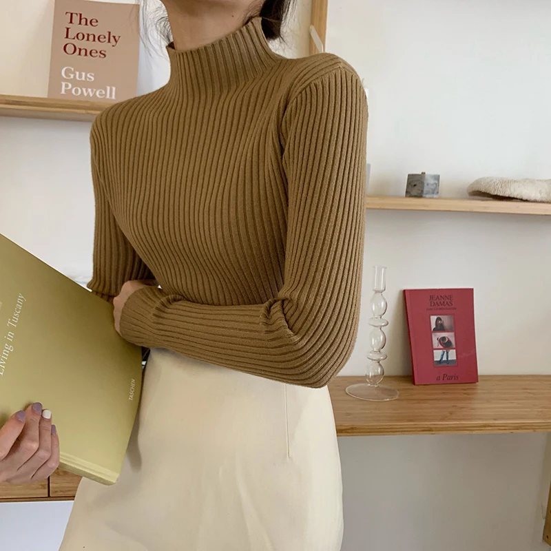 2025 chic Autumn winter Sweater Pullovers Women Long Sleeve casual turtleneck warm basic Sweater knit Jumpers top