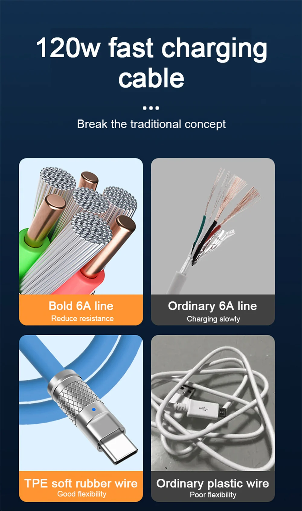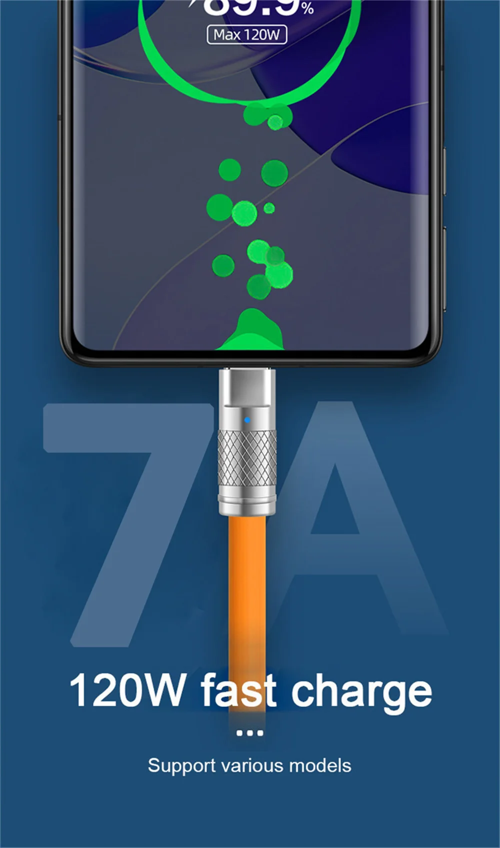 3PCS 120W Super Fast Charge Type-C Liquid Silicone Cable Quick Charge USB C Lines For Xiaomi Huawei Samsung USB Phone Data Wire