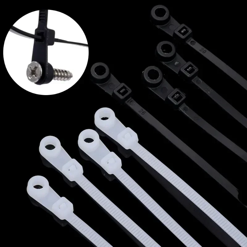 Mountable Cable Ties with Screw Hole Nylon Self Locking Loop Wraps Bundle Fixed Cables Ties Wire Fastening Organizer Straps