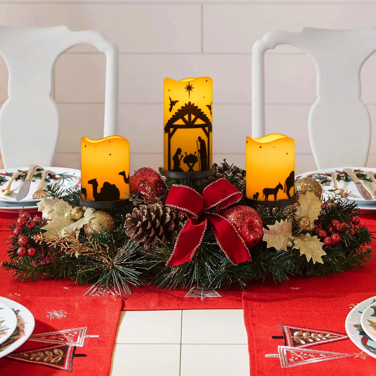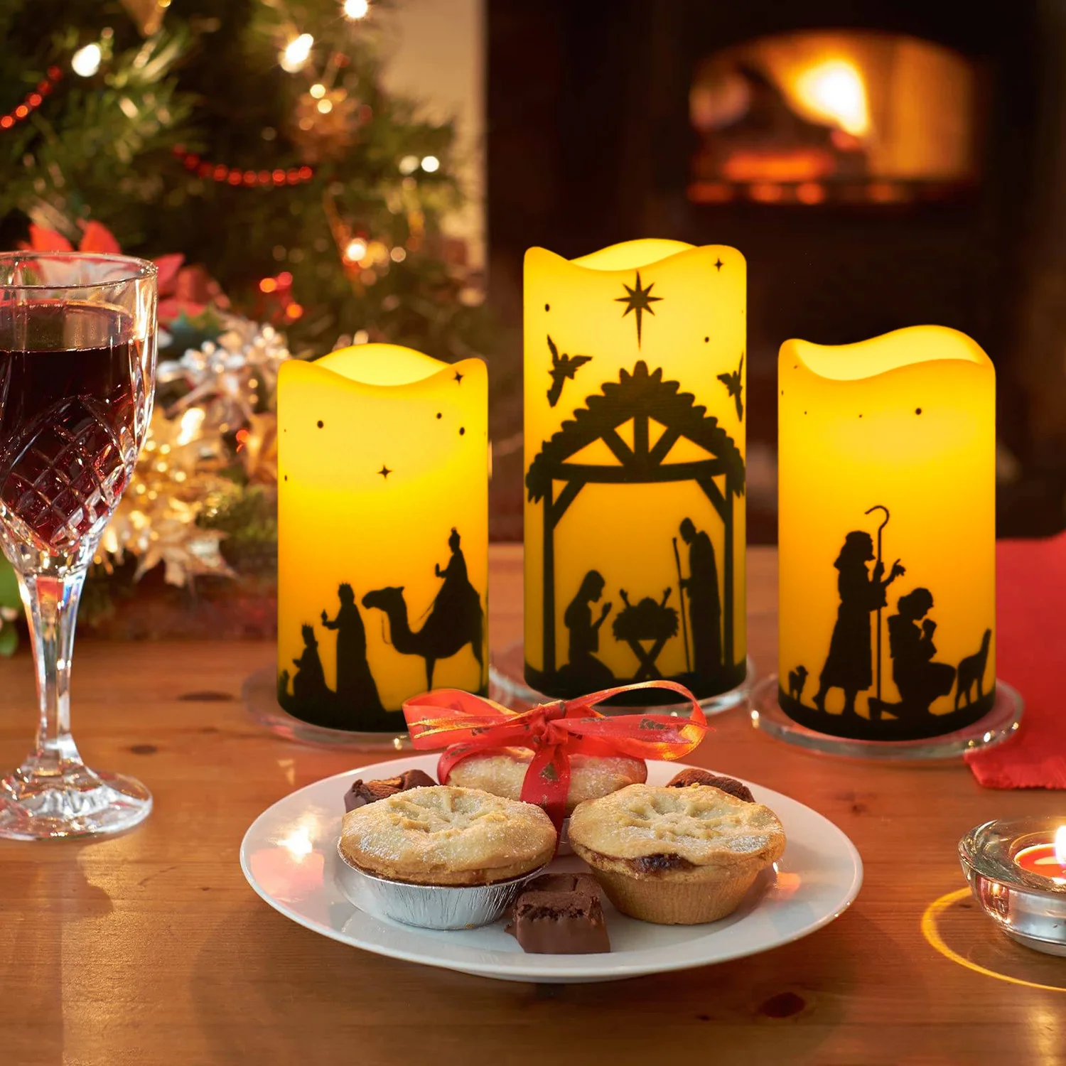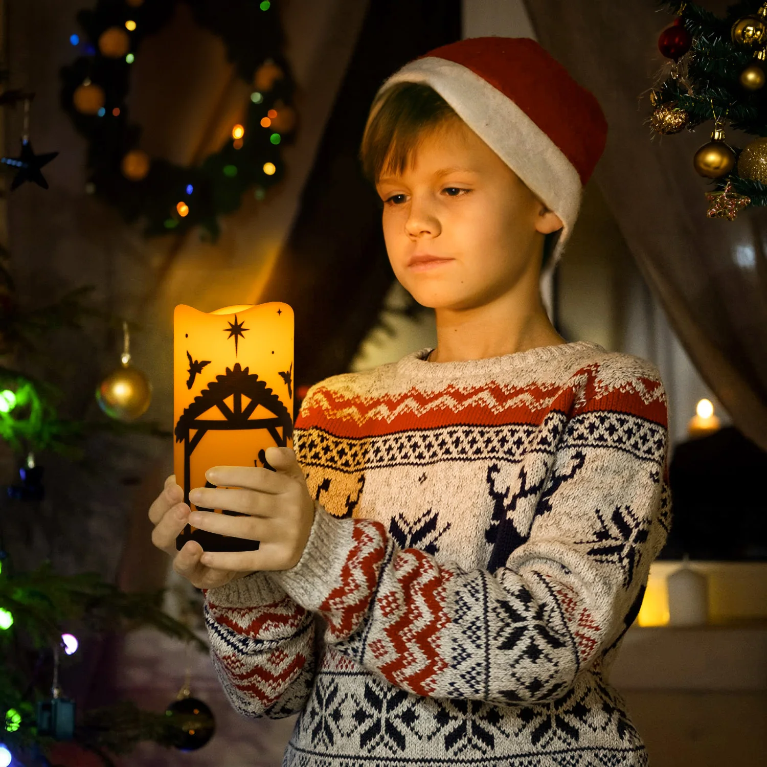 5pcs Flameless LED Christmas Nativity Scene Candle Lights Battery Powered Religious Pillar Decoration for Indoor Holiday Home