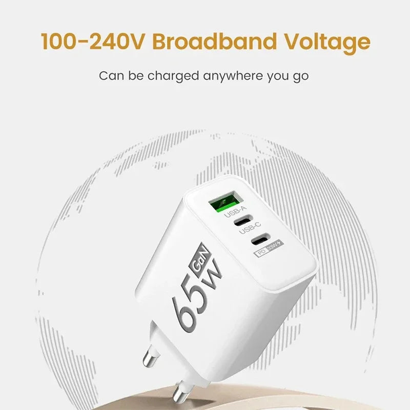 65W GaN USB C Charger Fast Charging Charger Quick Charge 3.0 PD Wall Phone Adapter For iPhone 15 11 Xiaomi POCO Samsung Oneplus