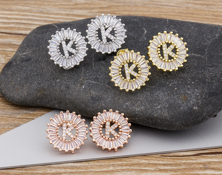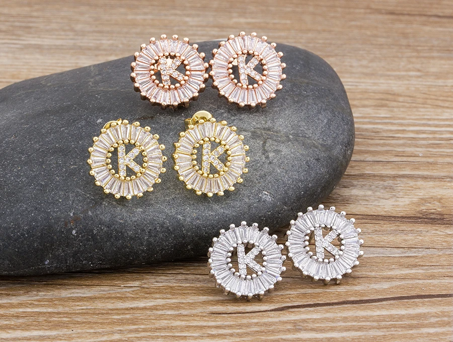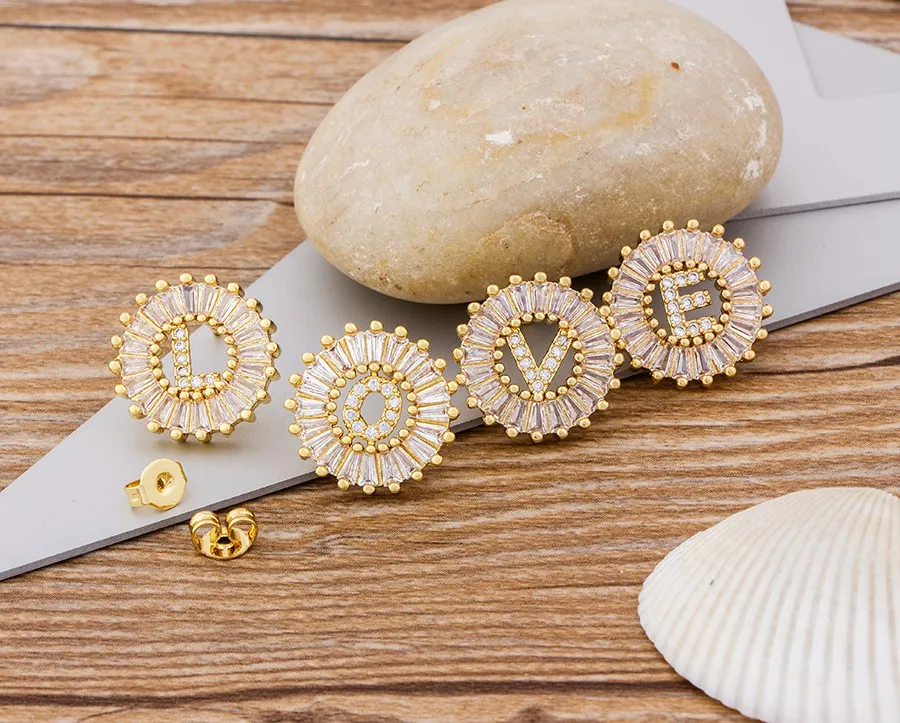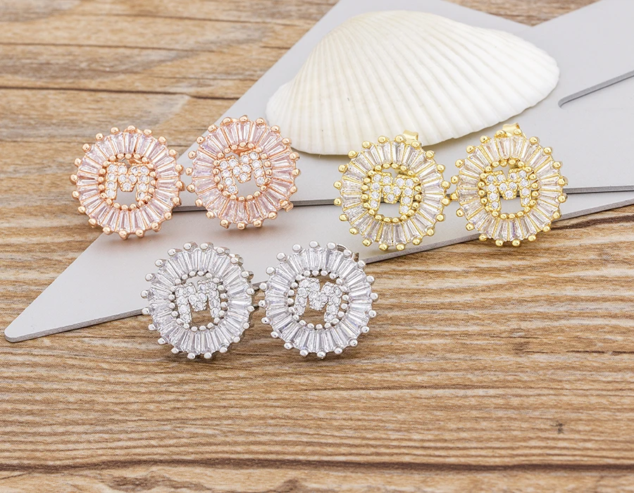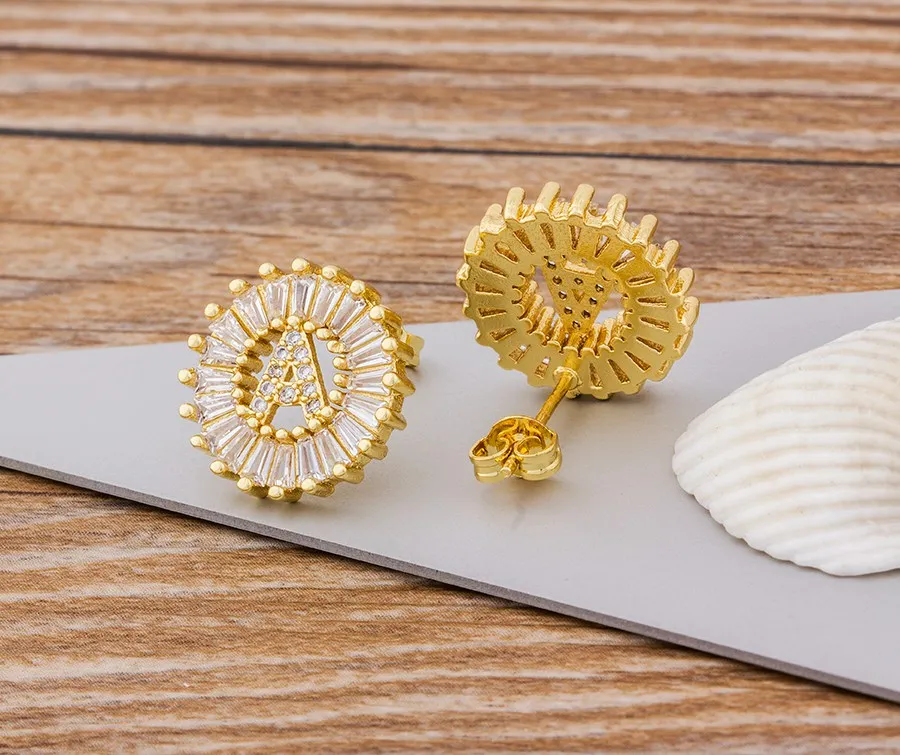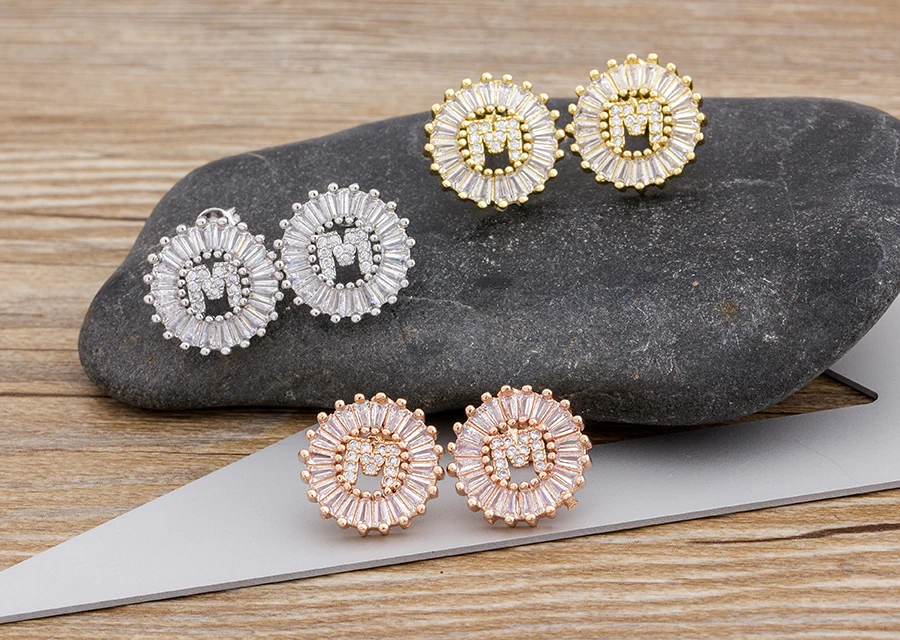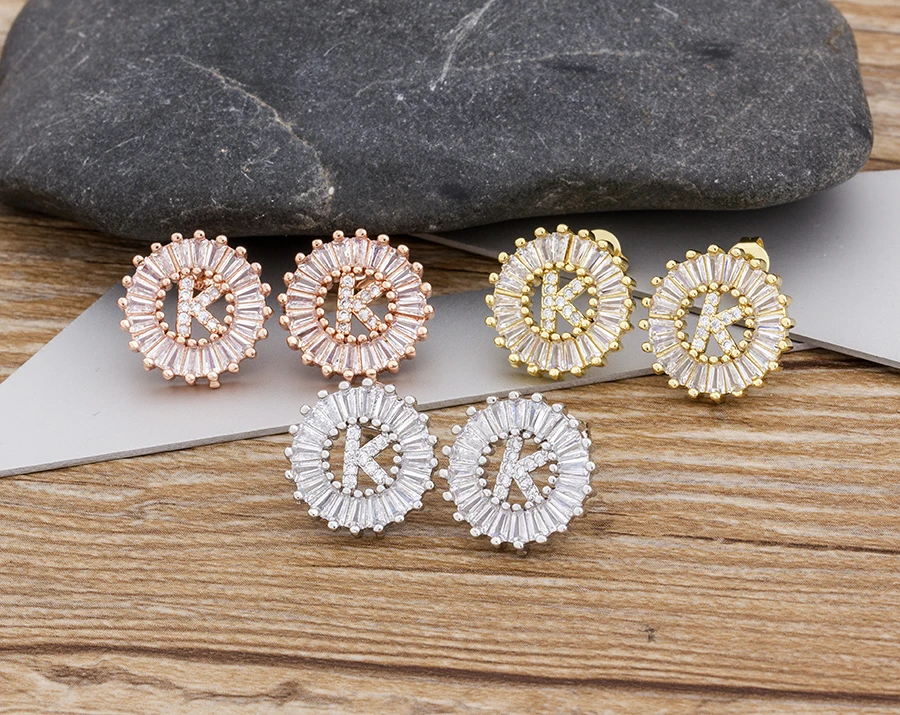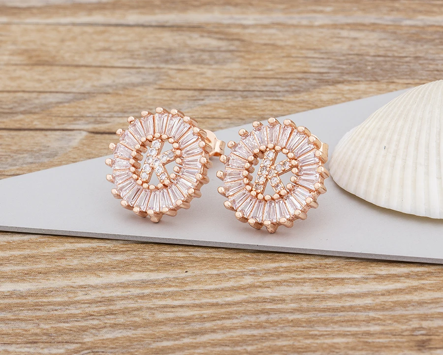 AIBEF Gold/Rose Gold/Silver Color 26 Initial Alphabet Letter Stud Earrings Statement Gift Family Name CZ Earrings Women Jewelry