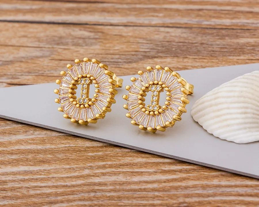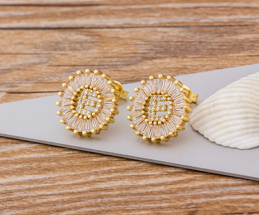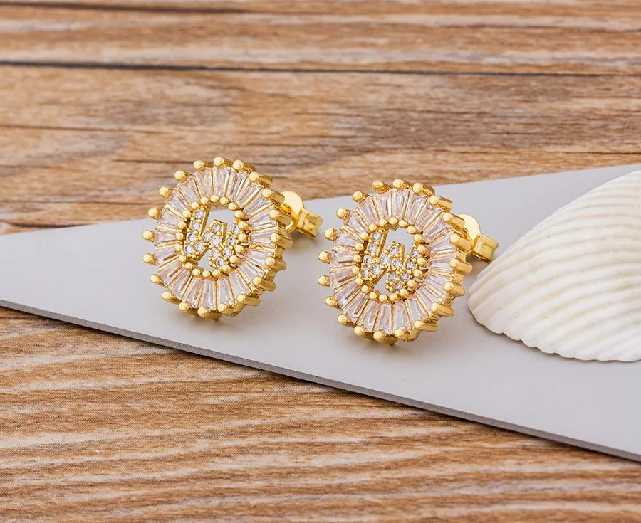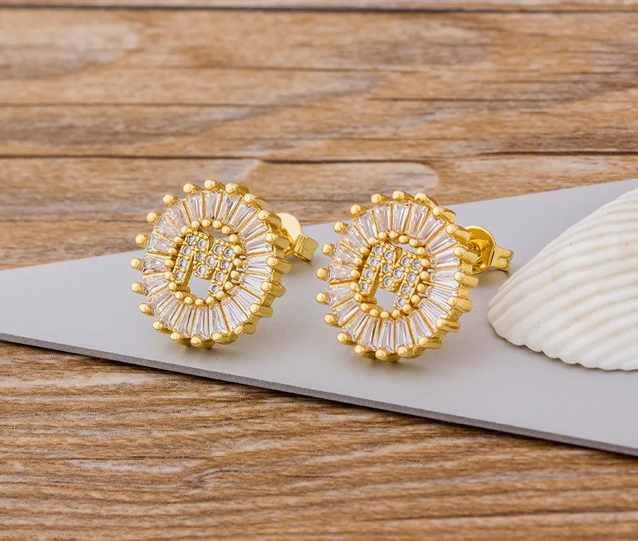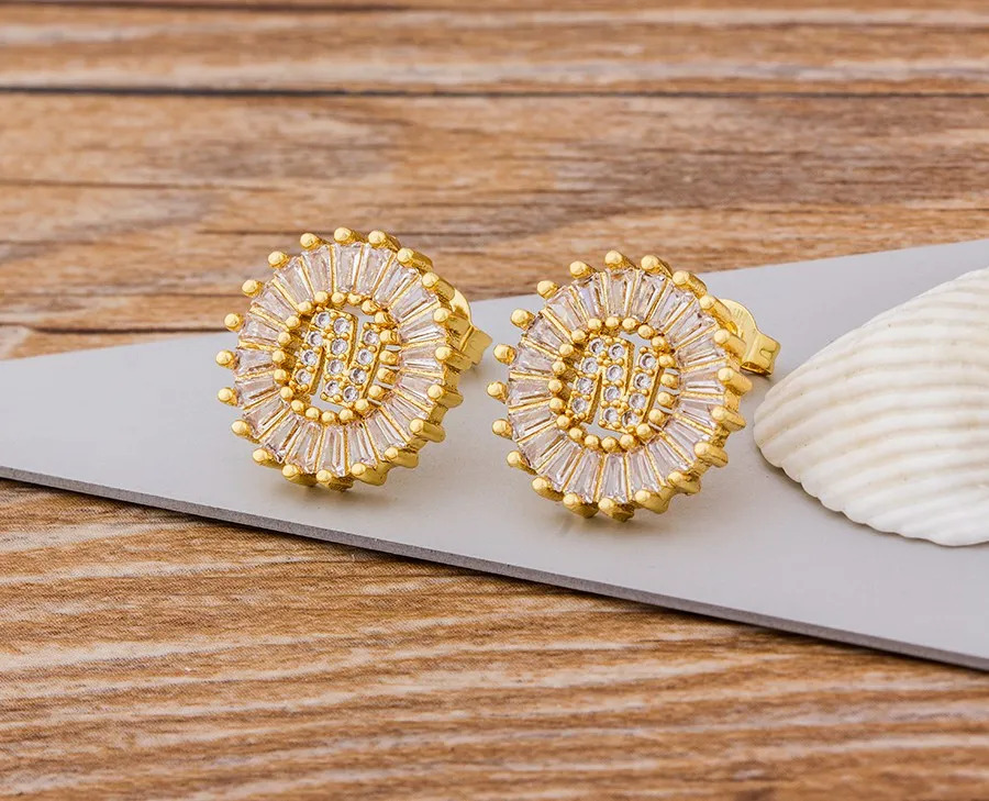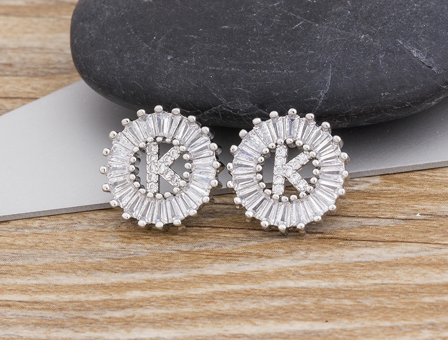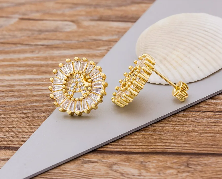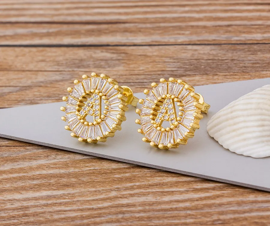 AIBEF Gold/Rose Gold/Silver Color 26 Initial Alphabet Letter Stud Earrings Statement Gift Family Name CZ Earrings Women Jewelry