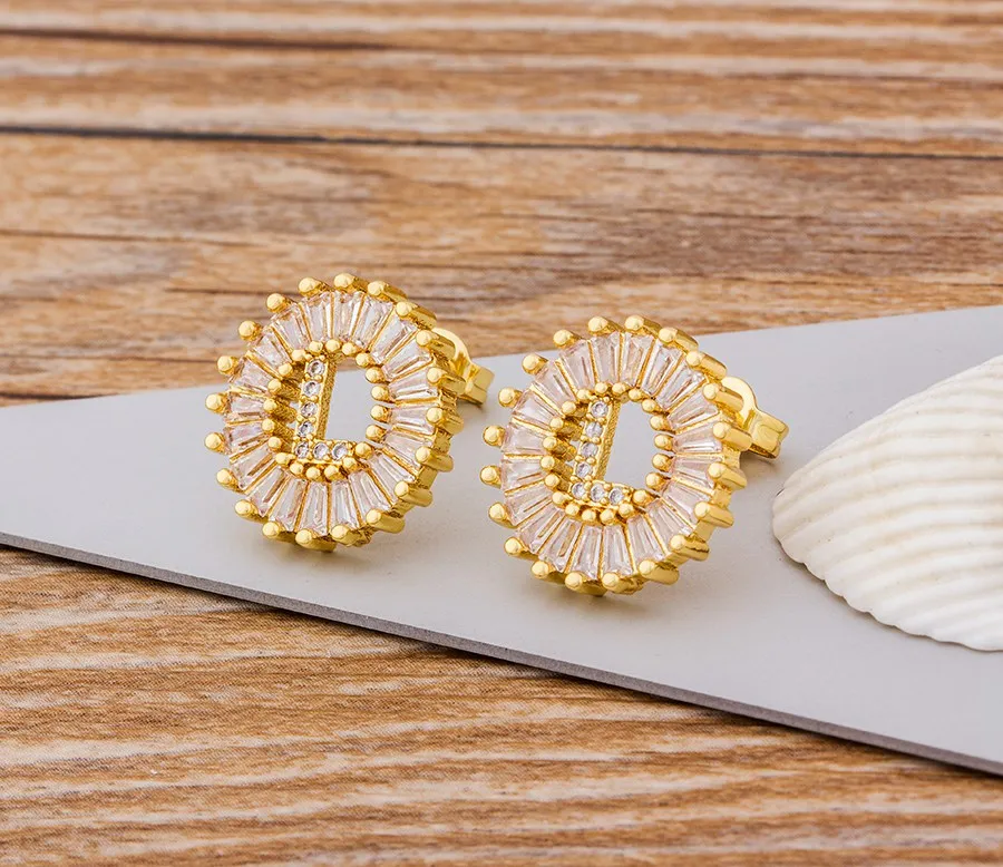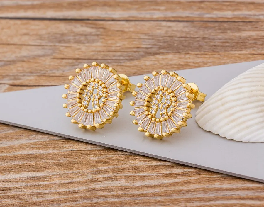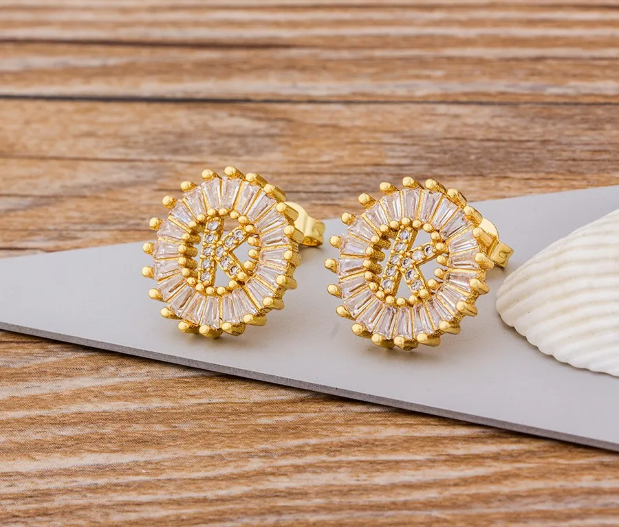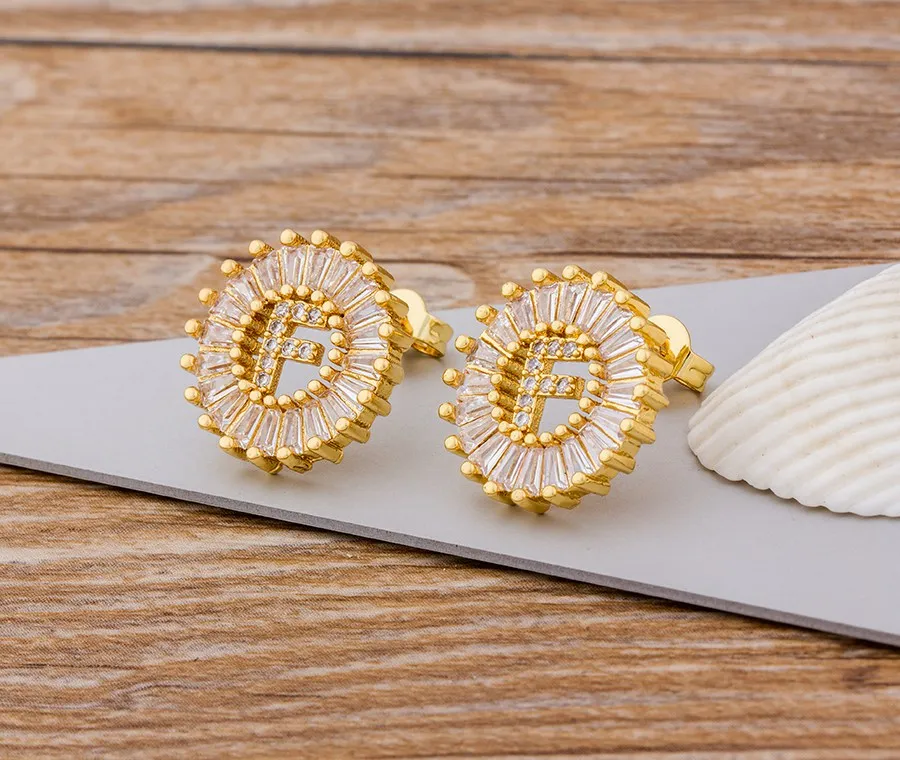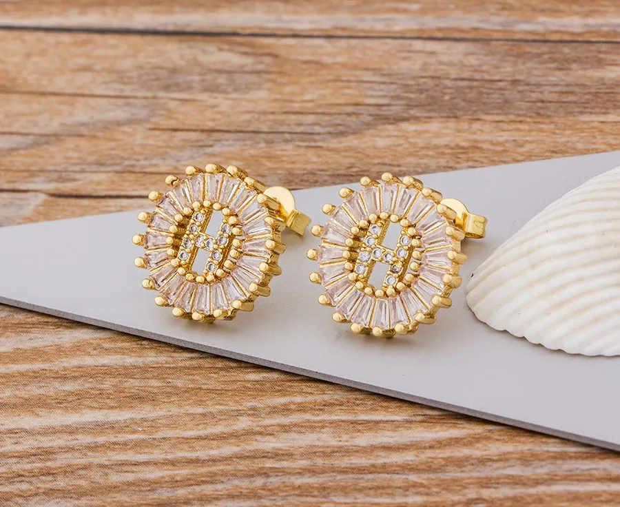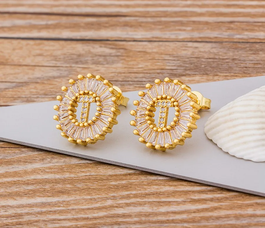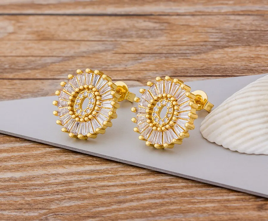 AIBEF Gold/Rose Gold/Silver Color 26 Initial Alphabet Letter Stud Earrings Statement Gift Family Name CZ Earrings Women Jewelry