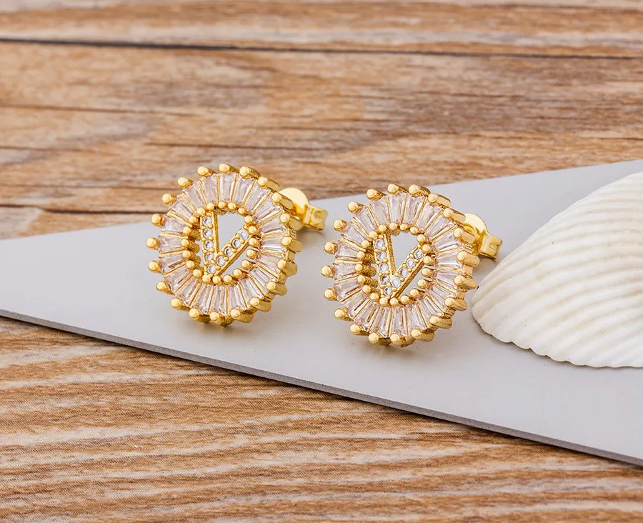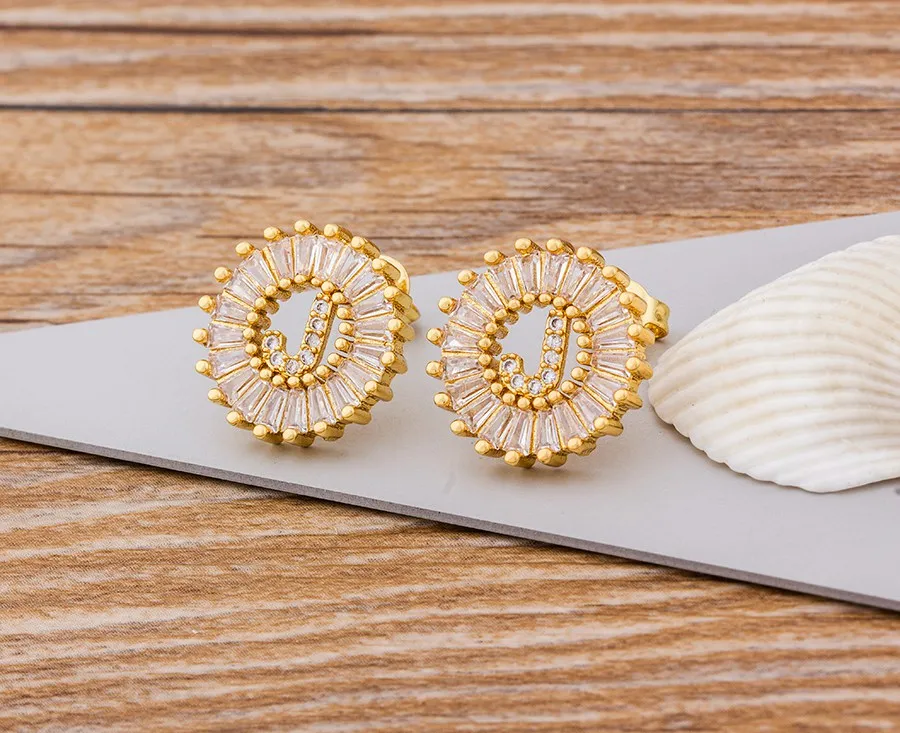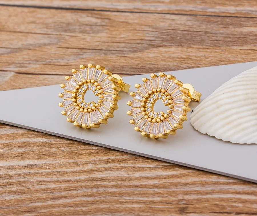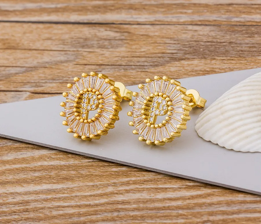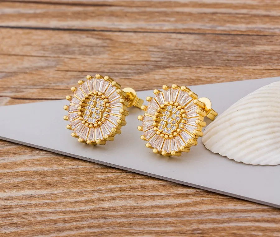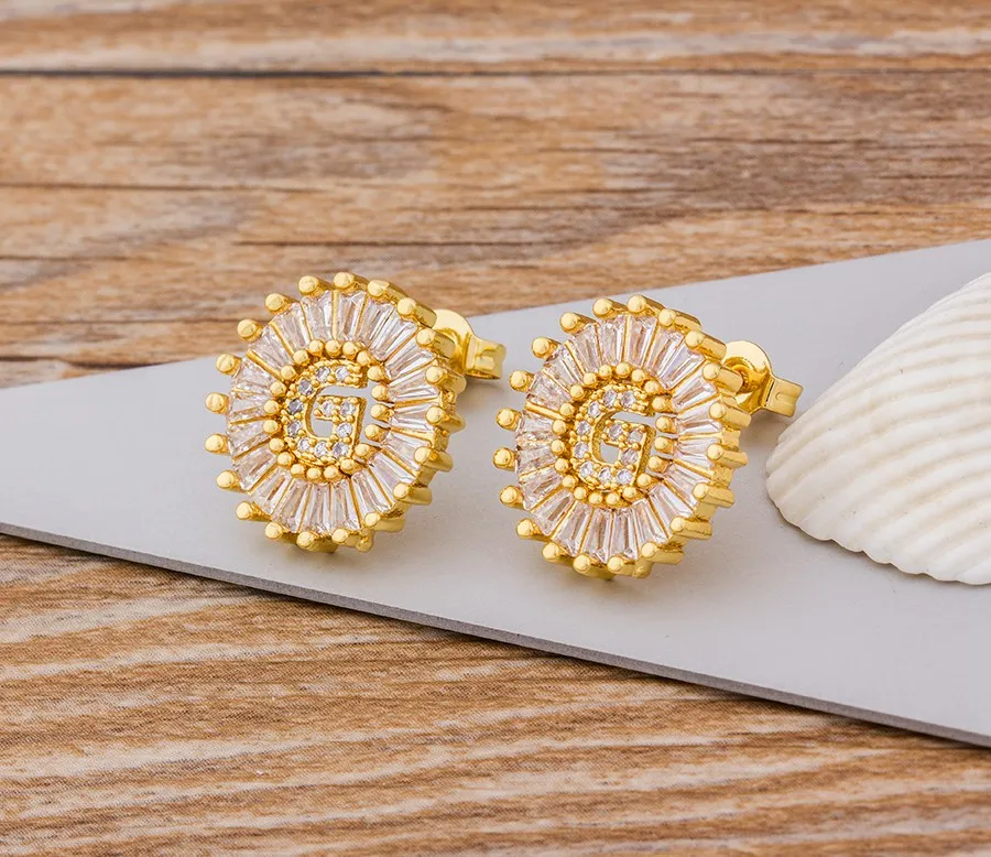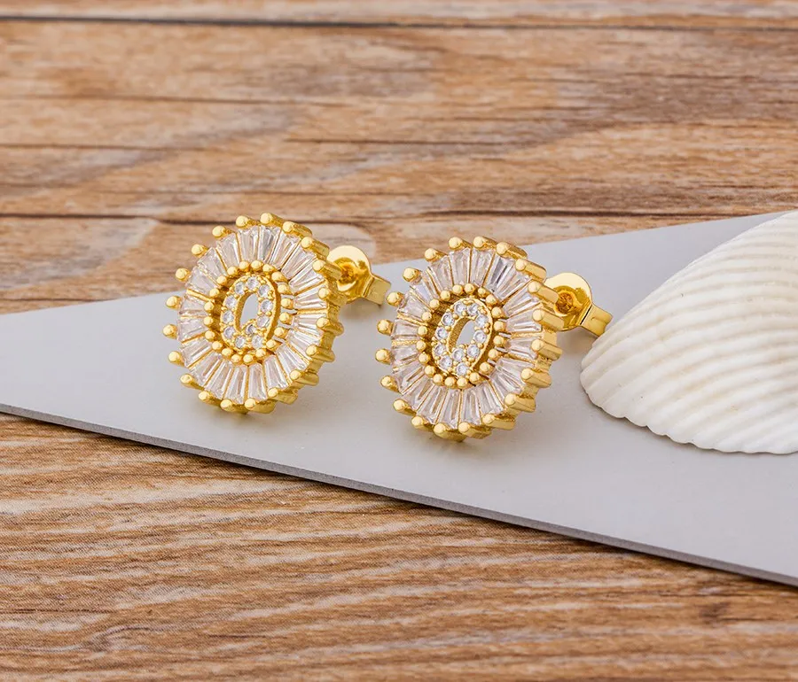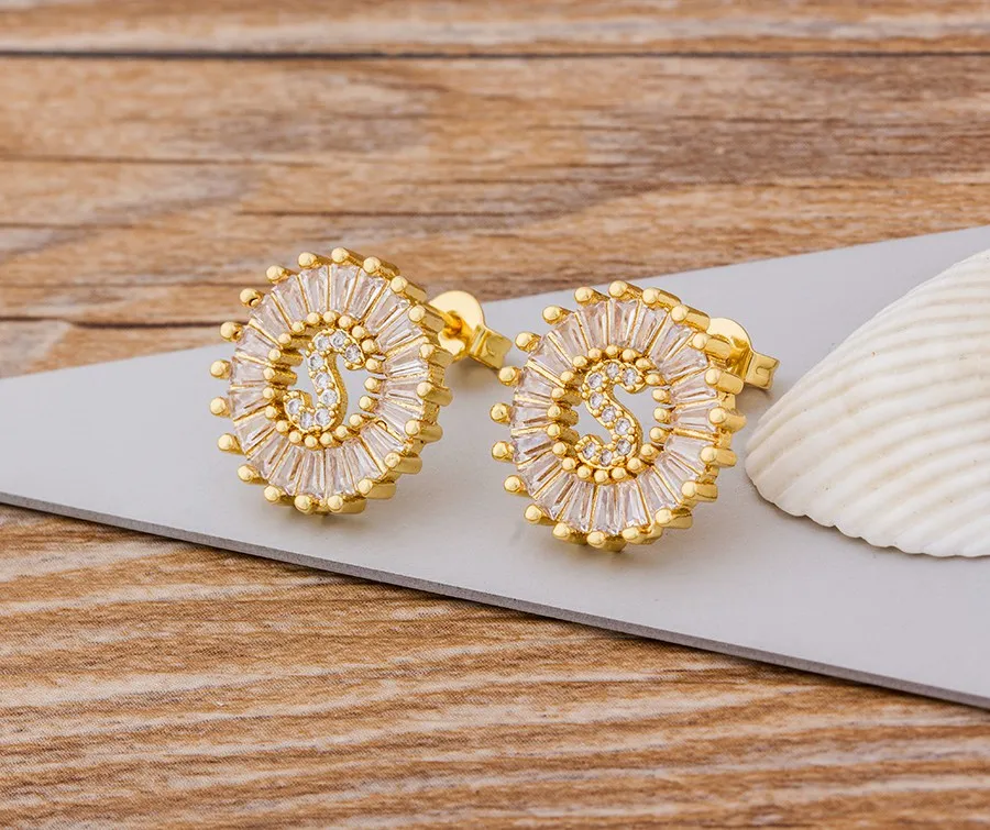 AIBEF Gold/Rose Gold/Silver Color 26 Initial Alphabet Letter Stud Earrings Statement Gift Family Name CZ Earrings Women Jewelry
