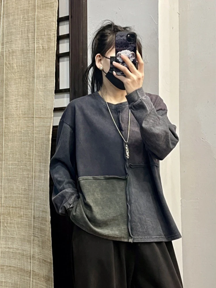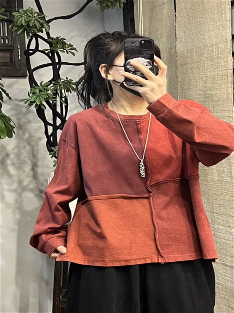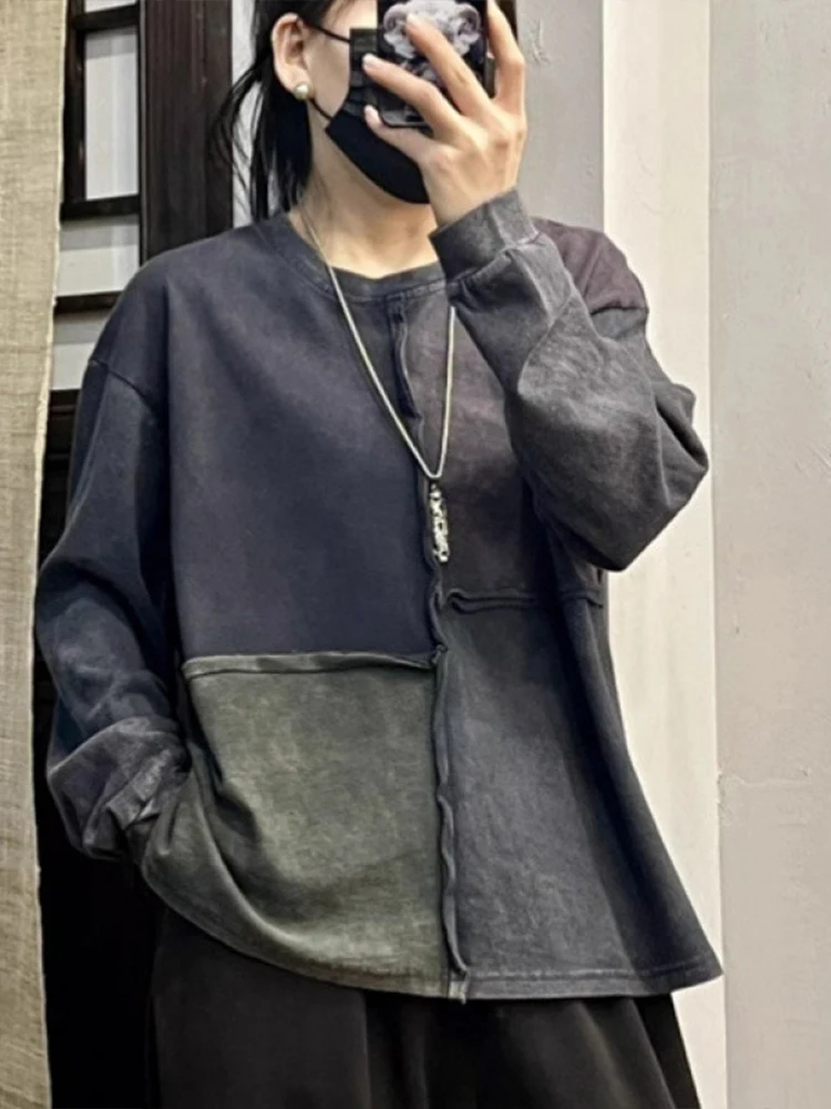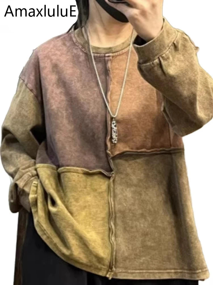 Amax luluE Womens Fashion Patchwork Harajuku Tops 2025 Spring Korean Style Ladies Loose Leisure T-Shirts Vintage Classic Clothes