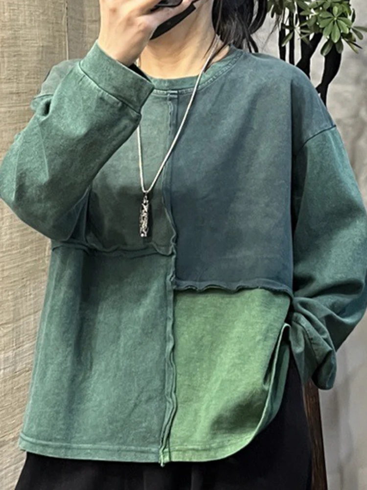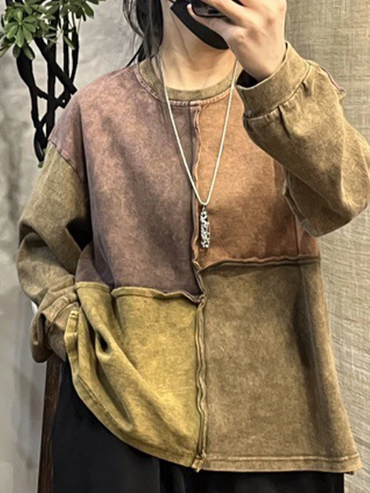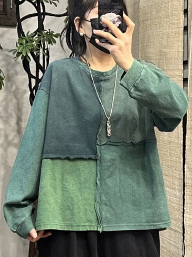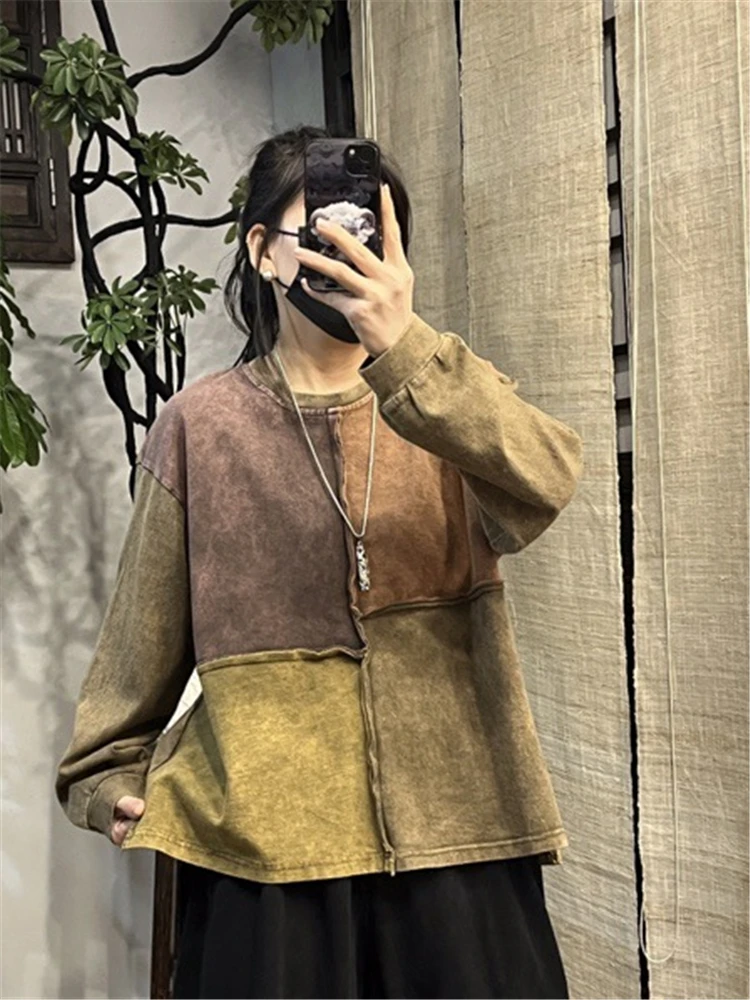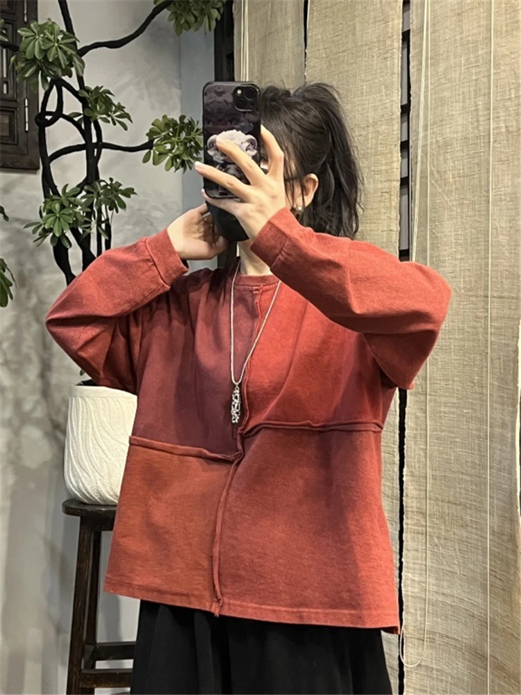 Amax luluE Womens Fashion Patchwork Harajuku Tops 2025 Spring Korean Style Ladies Loose Leisure T-Shirts Vintage Classic Clothes