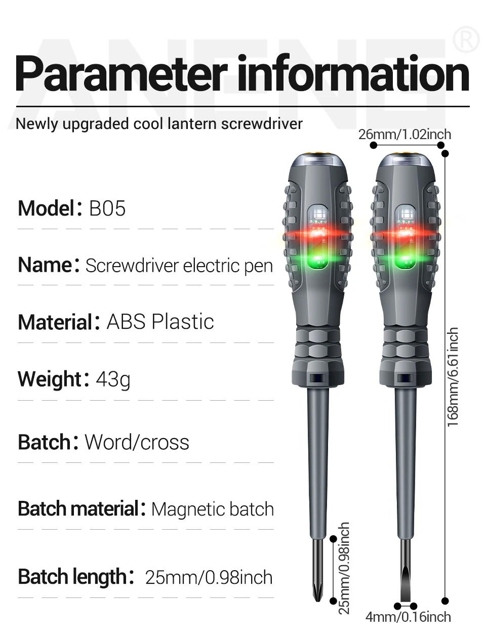 ANENG B05 Word/cross Screwdrivers Neon Bulb Indicator Meter Electric Pen Insulated Electrician Highlight Pocket Tester Pen Tools