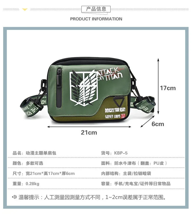 Anime Attack on Titan Shoulder Bag Demon Slayer Purse Wallet Fahion Canvas Outdoor Crossbody Men Boys Shopping Bag