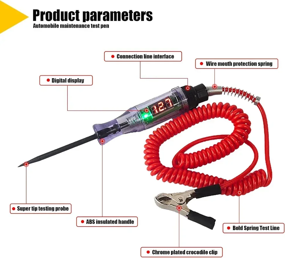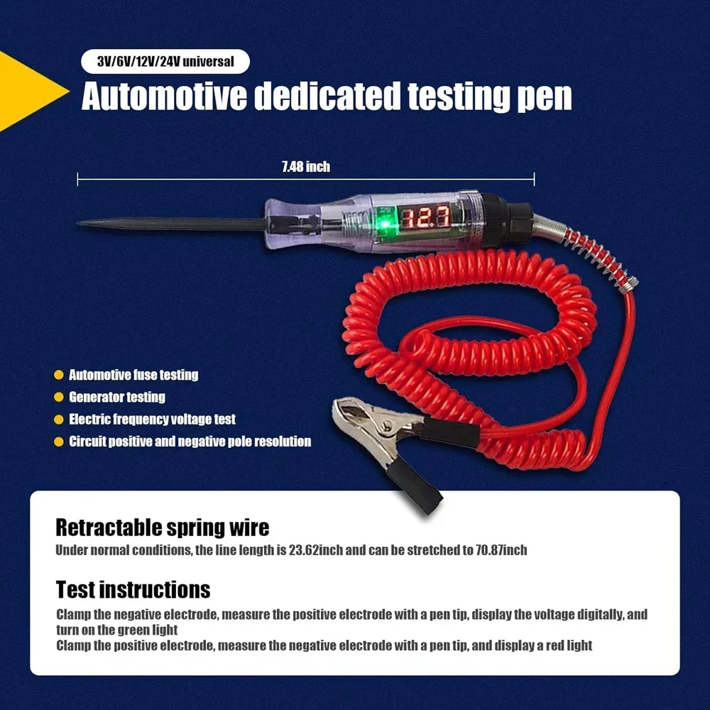 Test Light Automotive Circuit Tester DC5V-90V DC Digital LCD Display Prolong Spring Cable for Sedan,SUV,RV,Truck,Lawn Mower