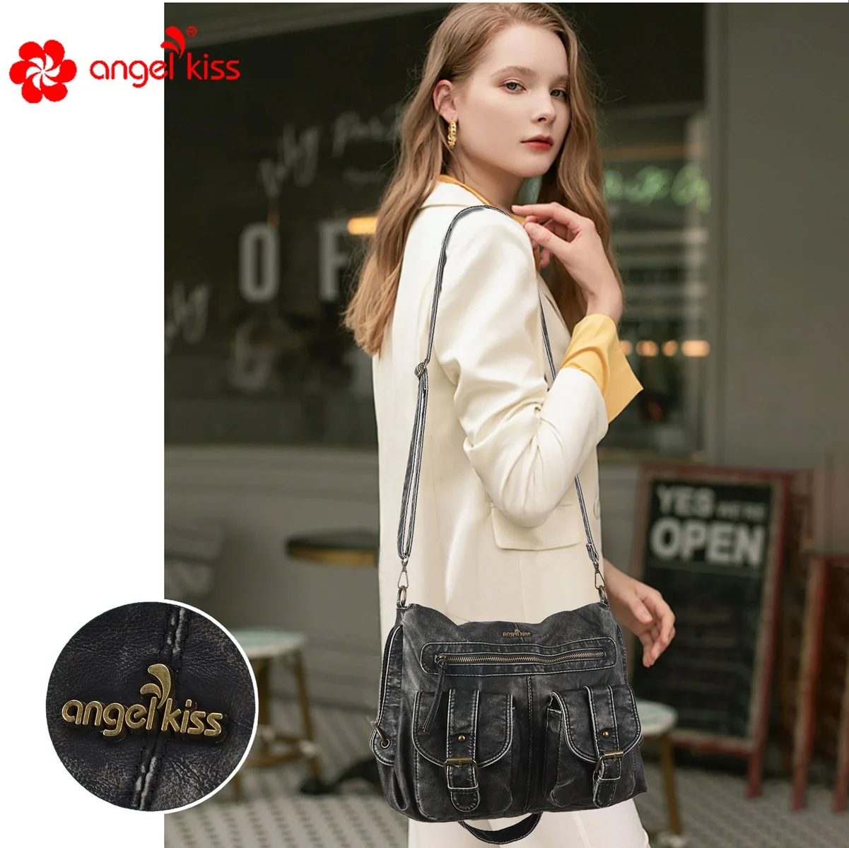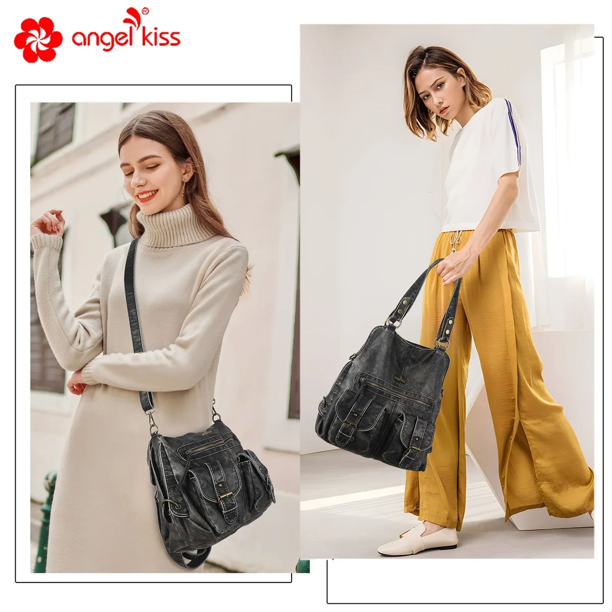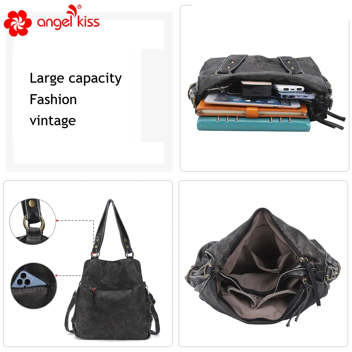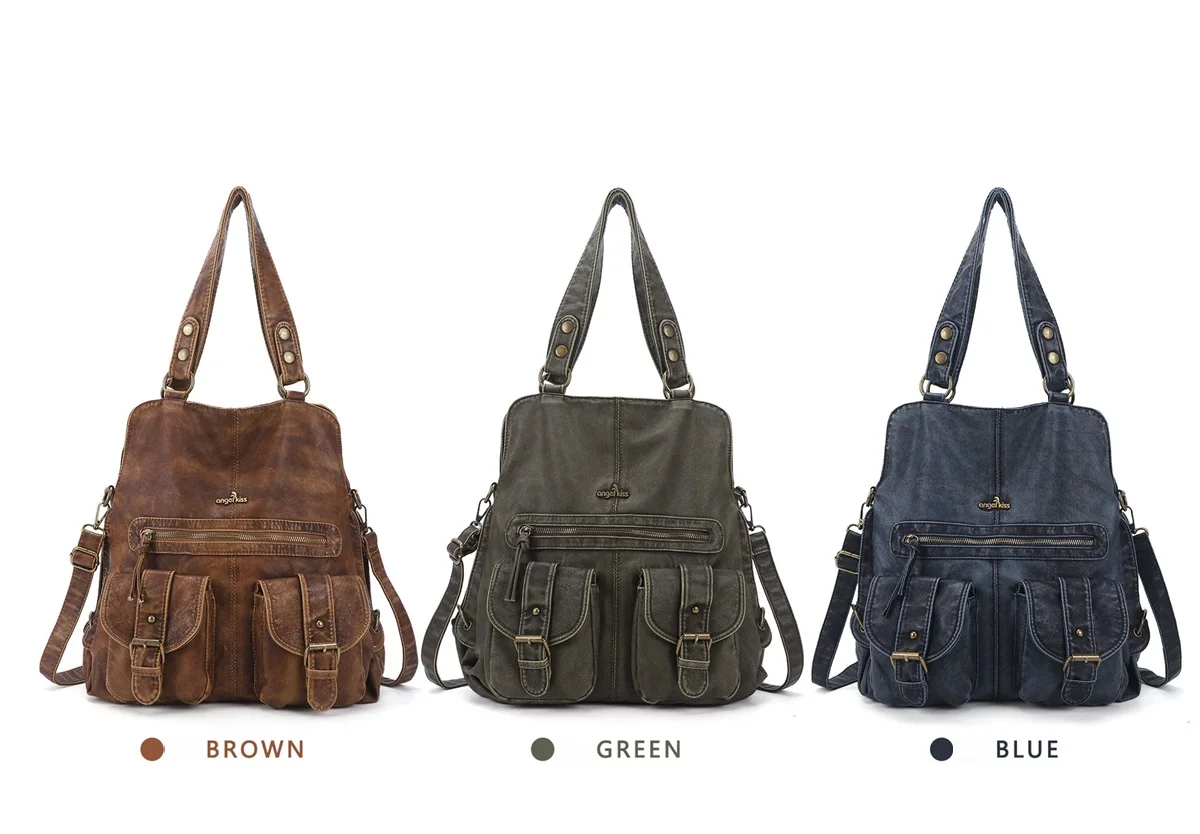 Bag Backpack Women Large Shoulder Bag Soft Fashion School Bag Vintage Backpack Multi-Pockets Shoulder Bag Phone Pack