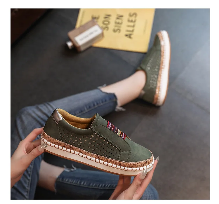 Blue Flats Classic Women Shoes 2025 Slip on Women Sneakers Breathable Hollow Out Casual Vulcanized Shoes Woman Summer Loafers