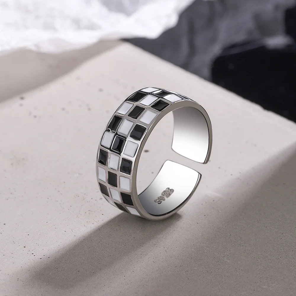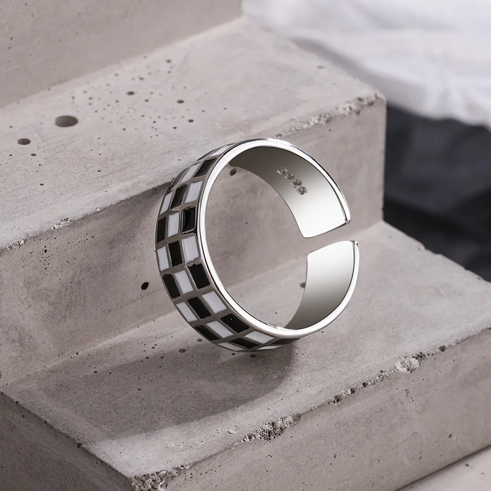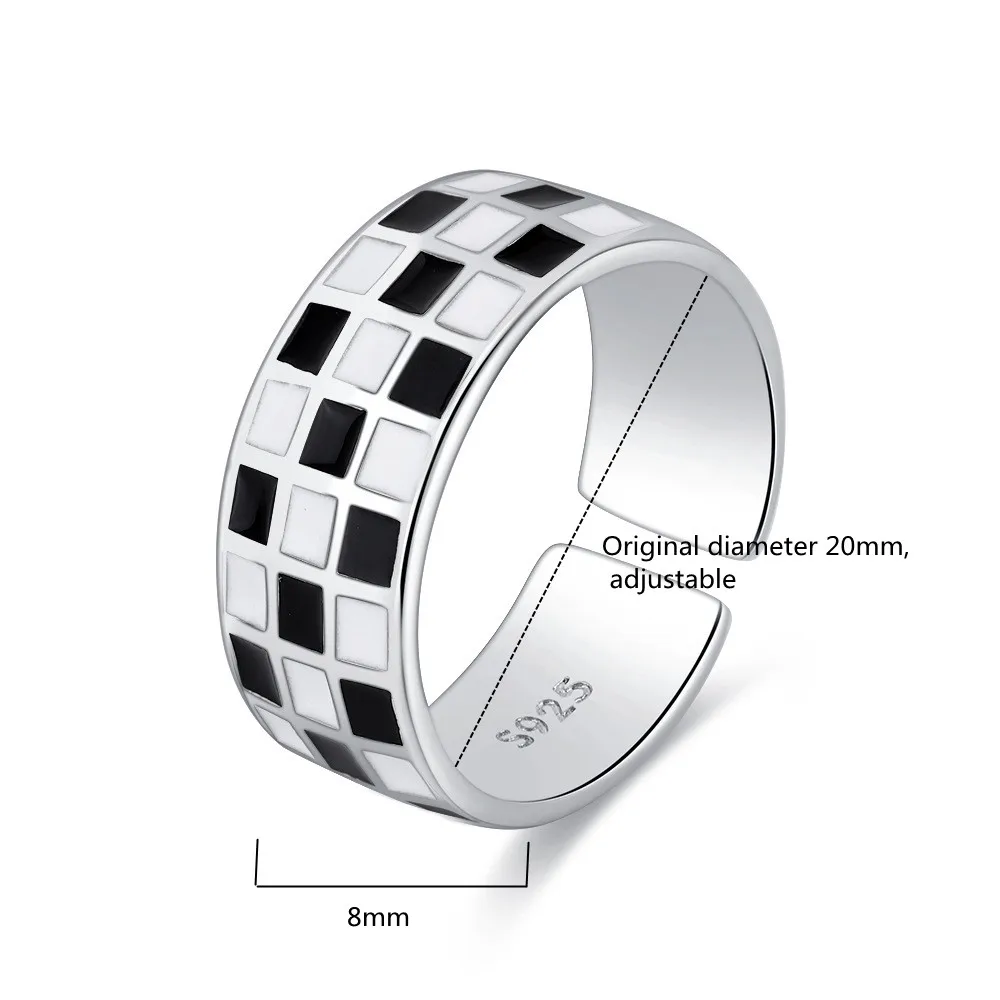 Buyee 925 Sterling Silver Fashion Ring Black & White Spacing Open Ring Finger for Women Men Women Fine Jewelry Circle Gift