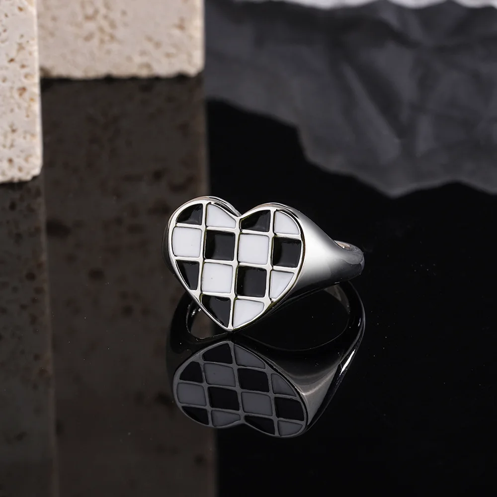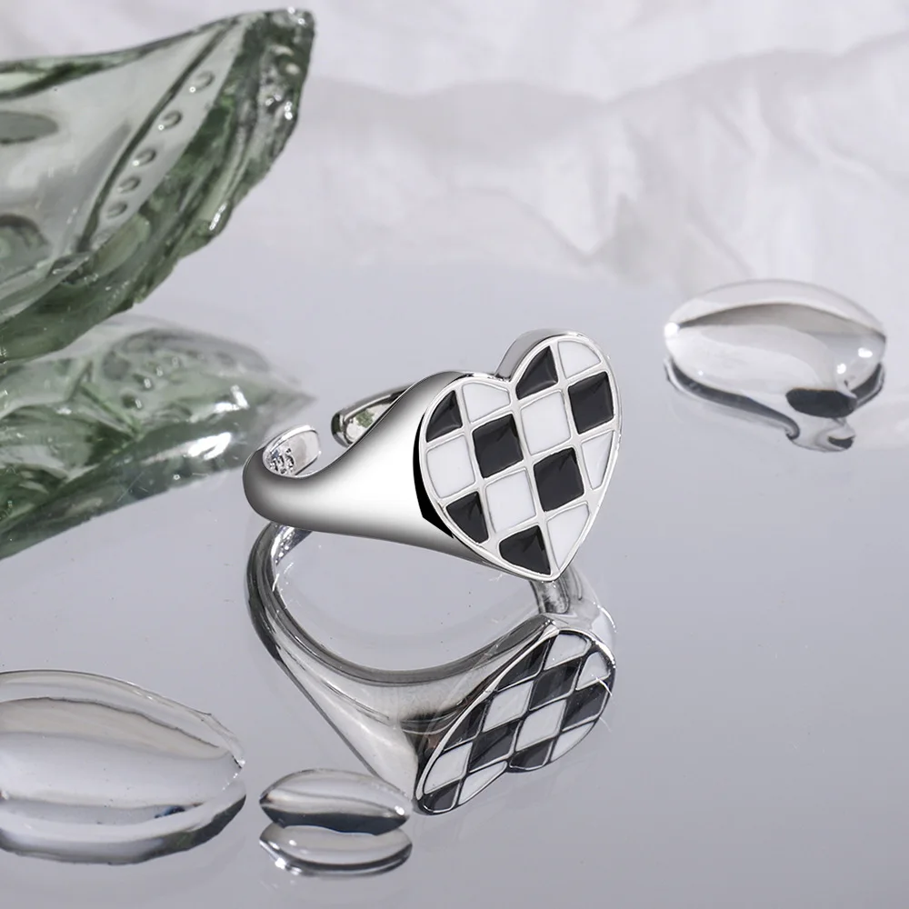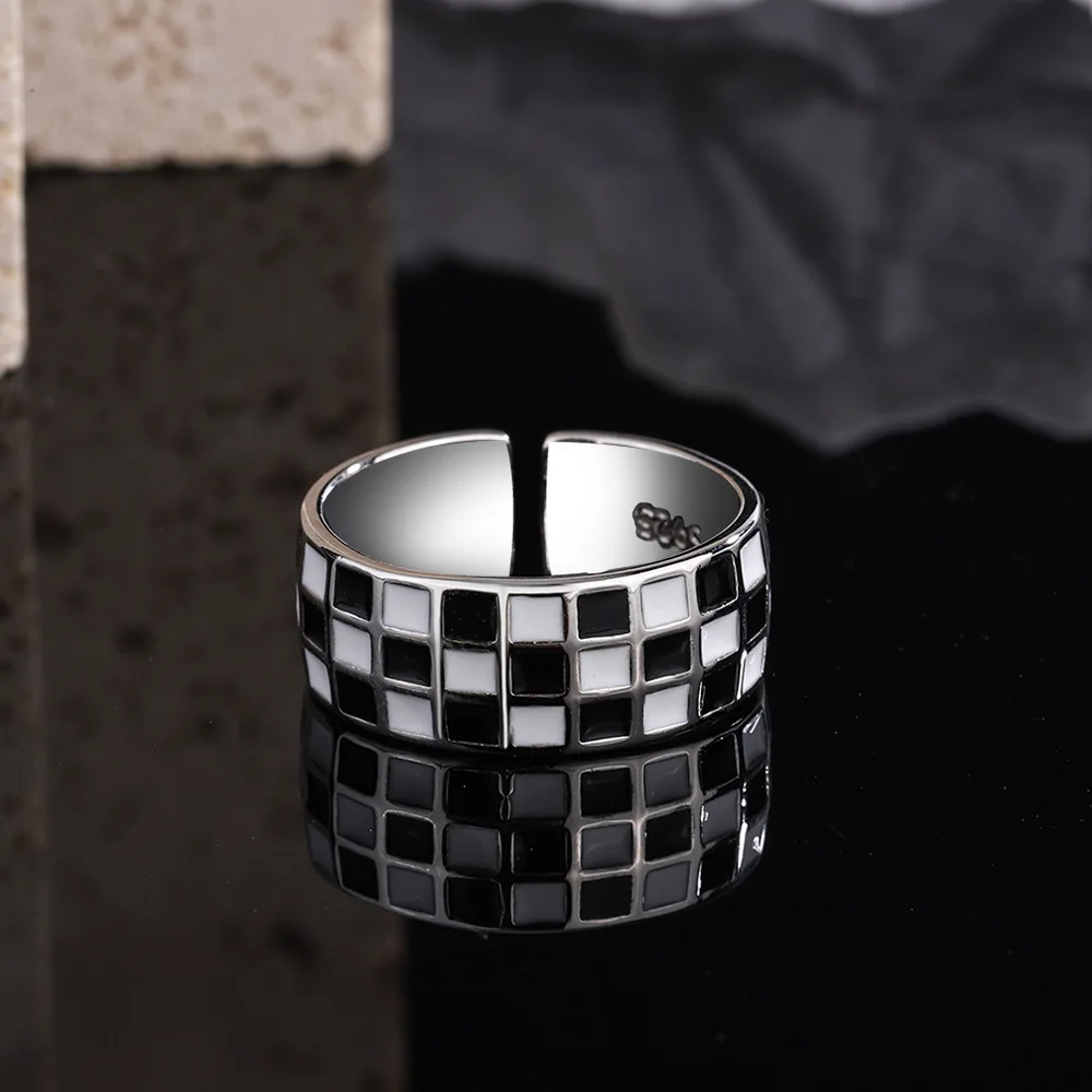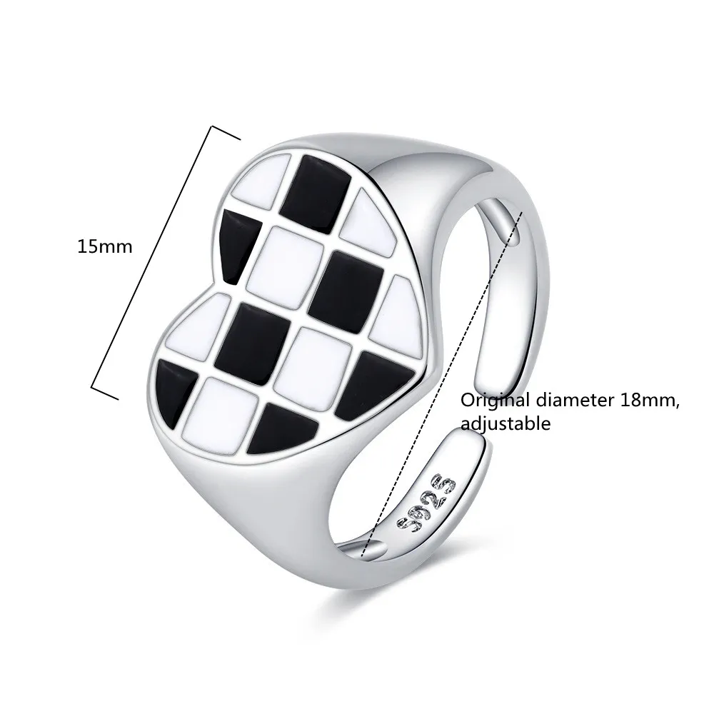 Buyee 925 Sterling Silver Fashion Ring Black & White Spacing Open Ring Finger for Women Men Women Fine Jewelry Circle Gift