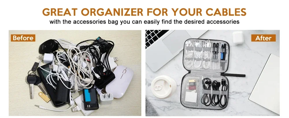 Purpose: It can store power bank/data cable/mobile phone/tablet/U disk, etc., the storage is neat and orderly, dust-proof and moisture-proof.