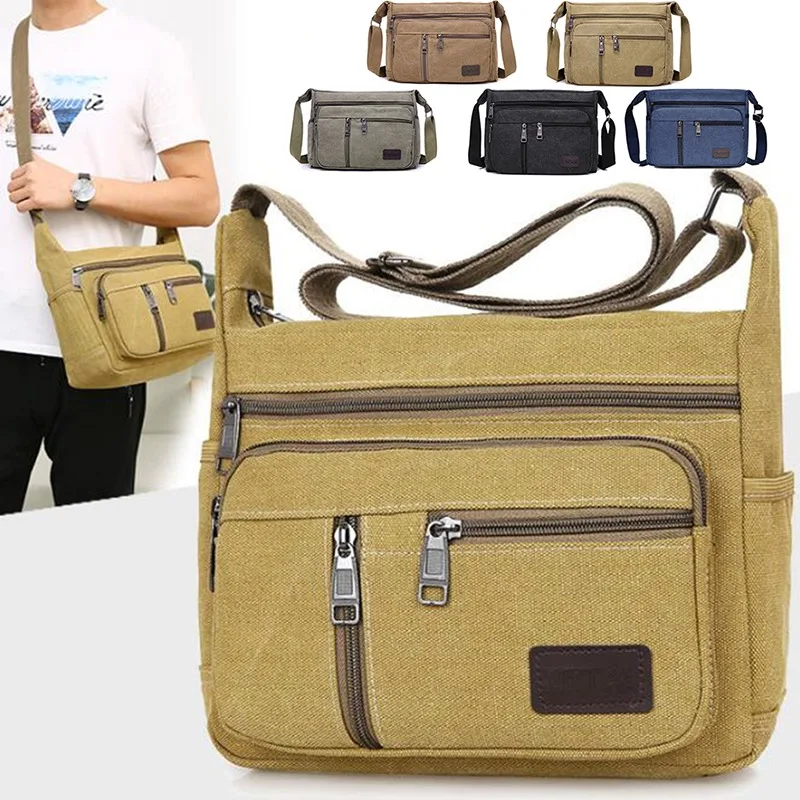 Canvas Messenger Bag For Men Water Resistant Waxed Crossbody Bags Briefcase Padded Shoulder Bag Handbag Hot Sell Newest