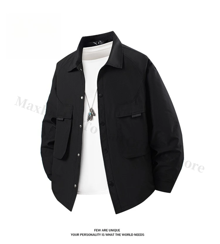 COMXZ Men Trendy Jacket 2025 Lapel Collar Outdoor Hiking Camping Durable Casual Gorpcore Coat Lightweight Windbreaker Autumn
