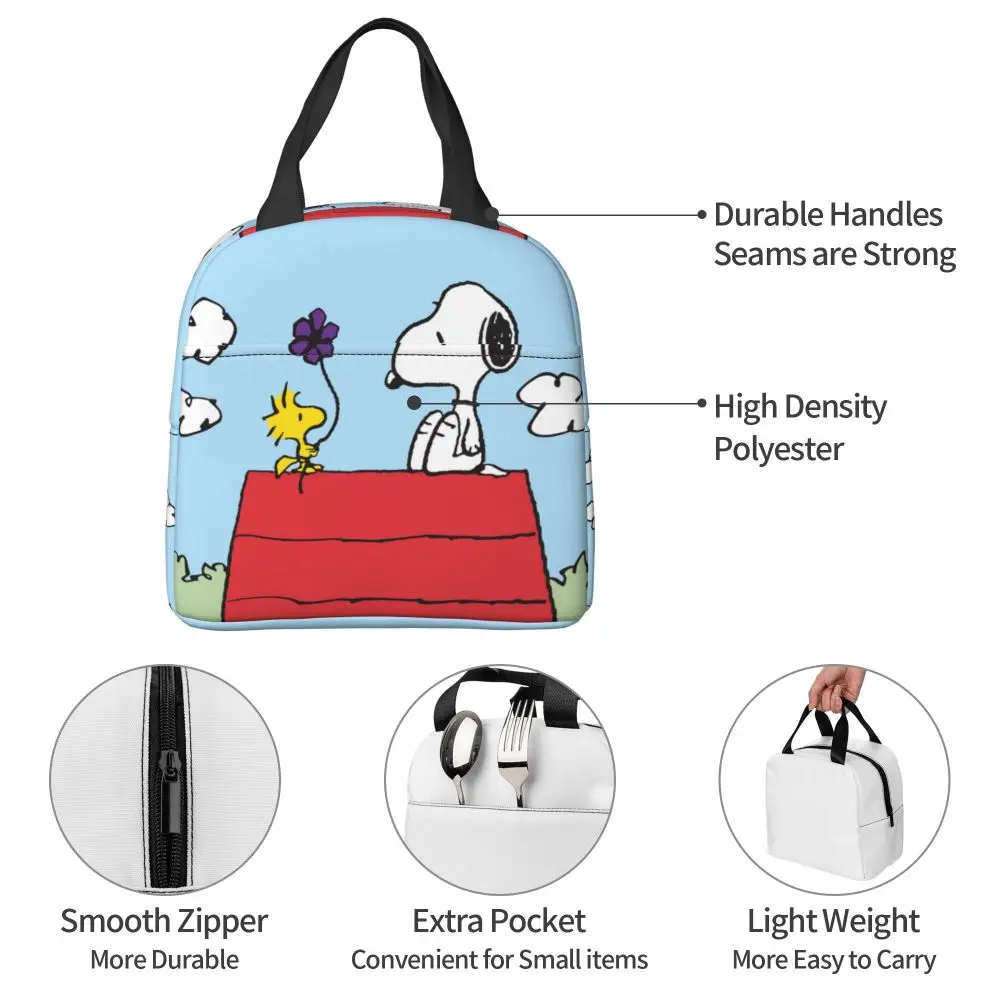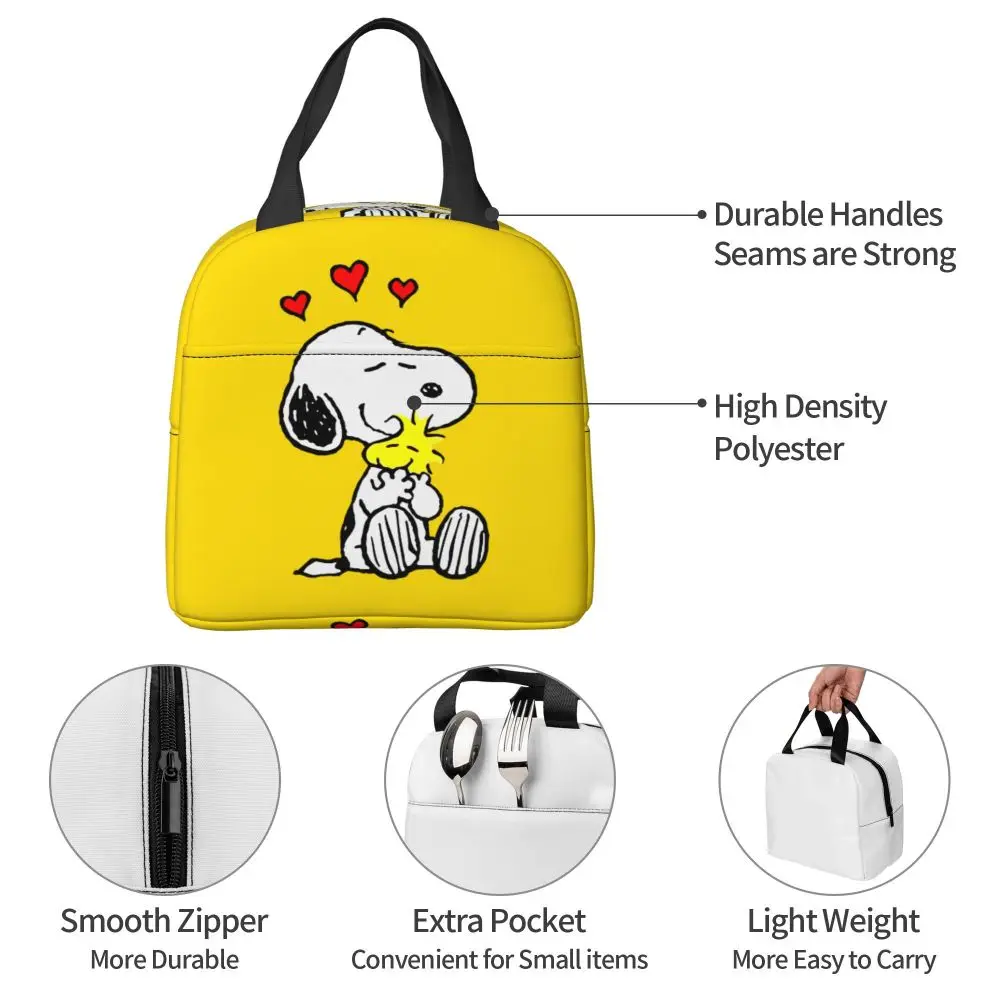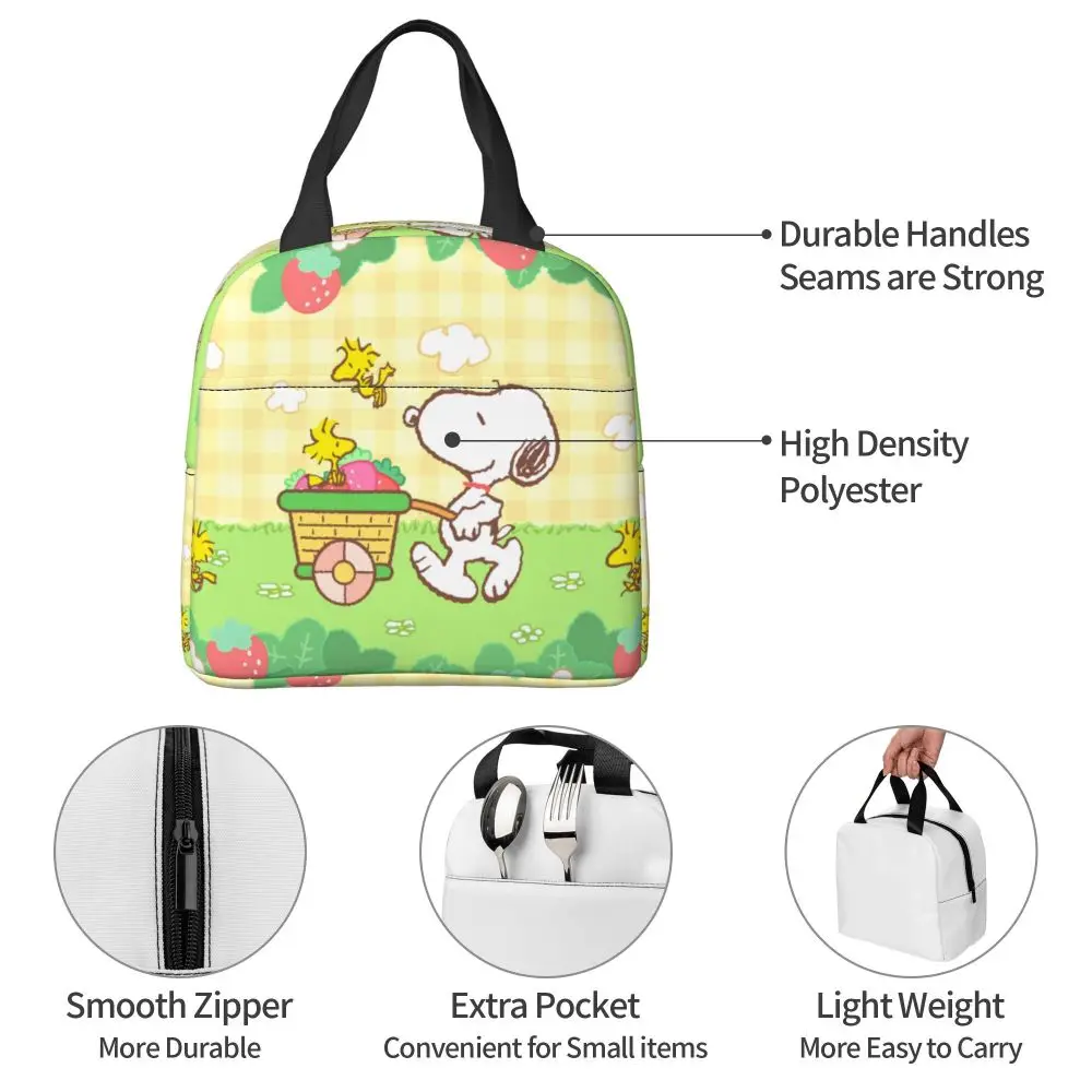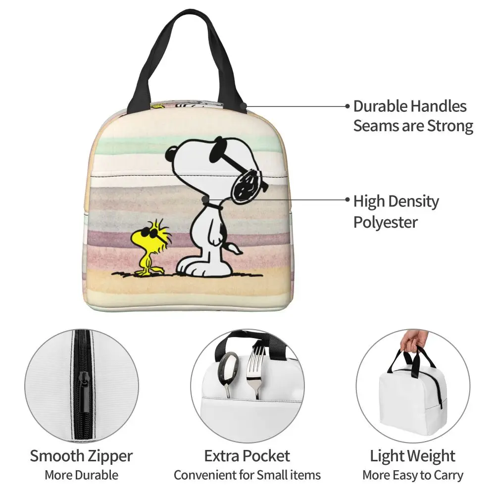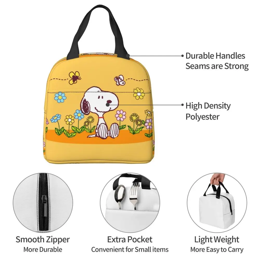 Custom Funny Cartoon Snoopy Lunch Box Waterproof Thermal Cooler Food Insulated Lunch Bag Kids For Kids Portable Picnic Tote Bags