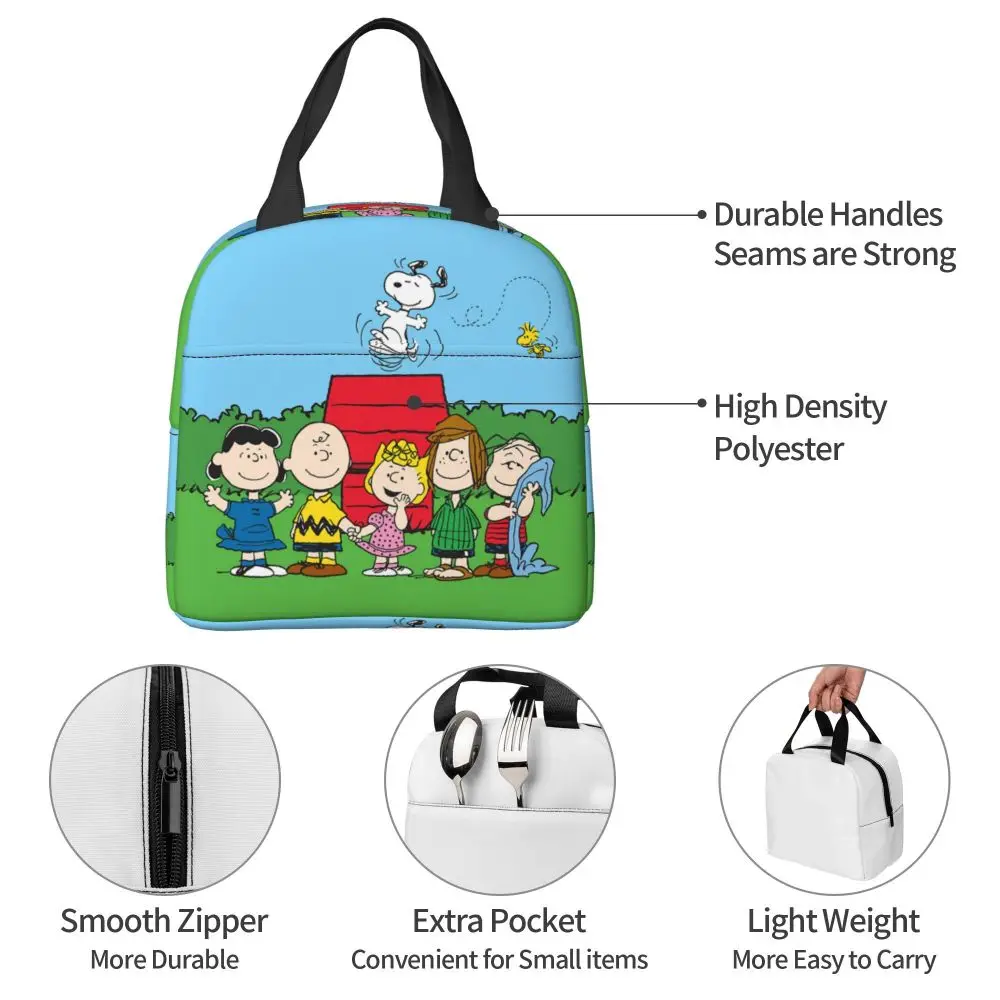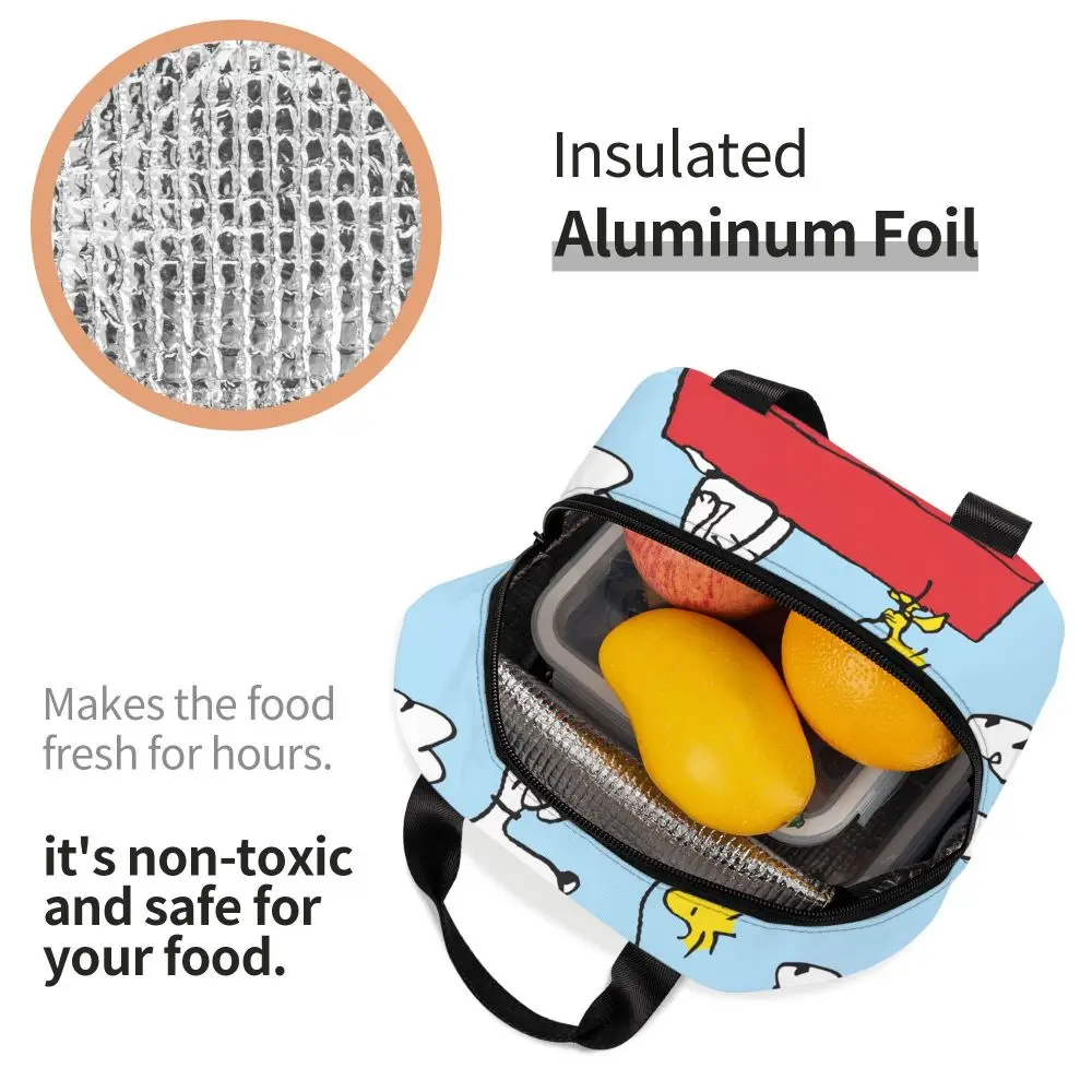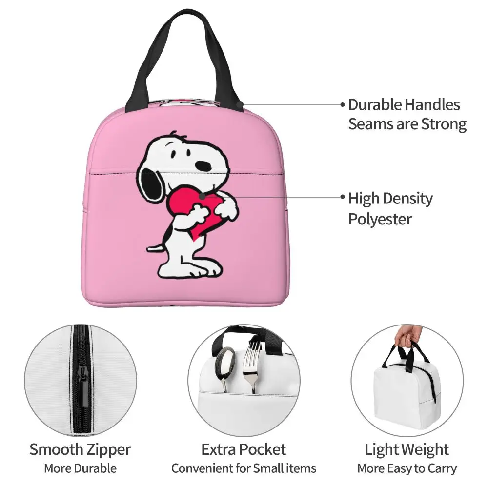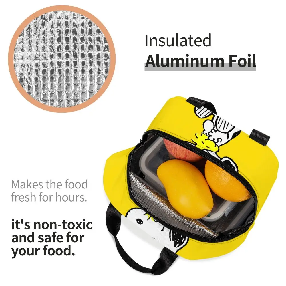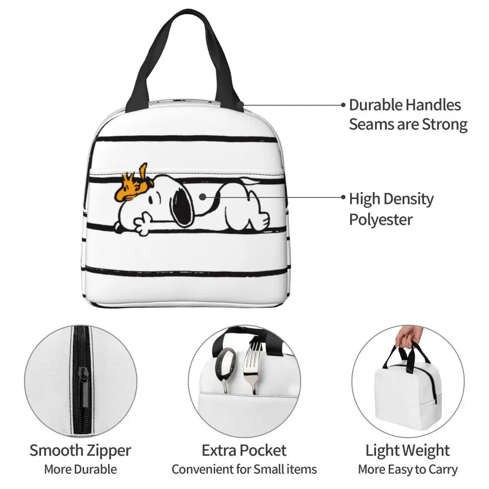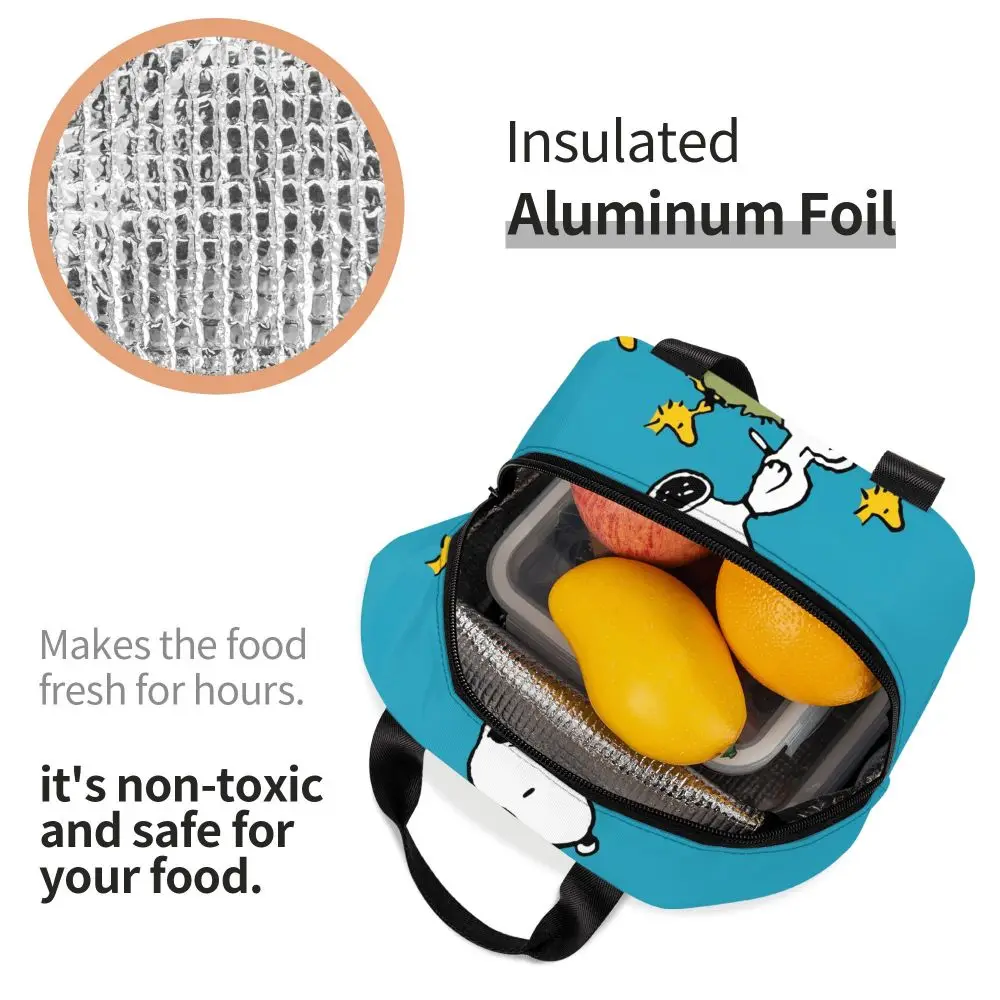 Custom Funny Cartoon Snoopy Lunch Box Waterproof Thermal Cooler Food Insulated Lunch Bag Kids For Kids Portable Picnic Tote Bags