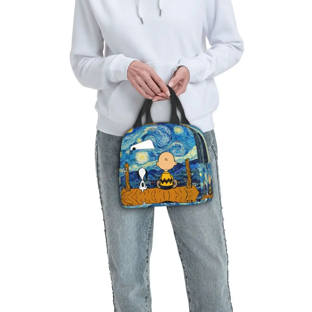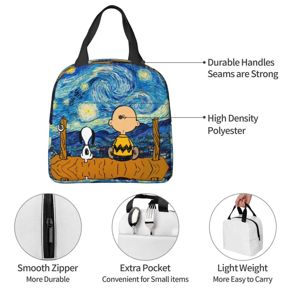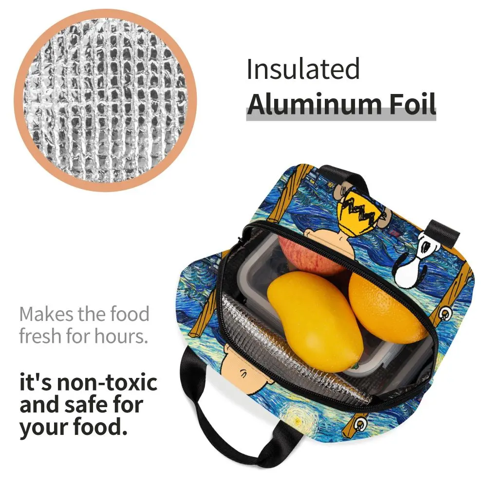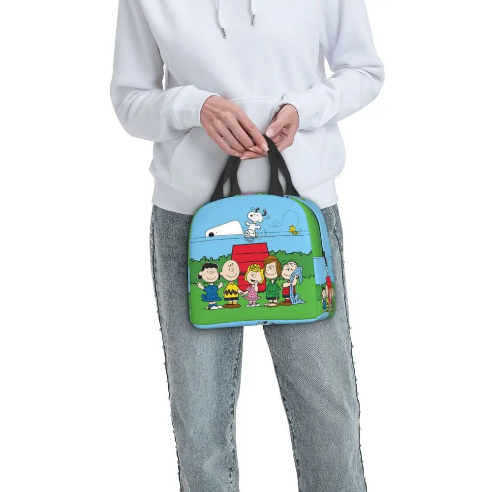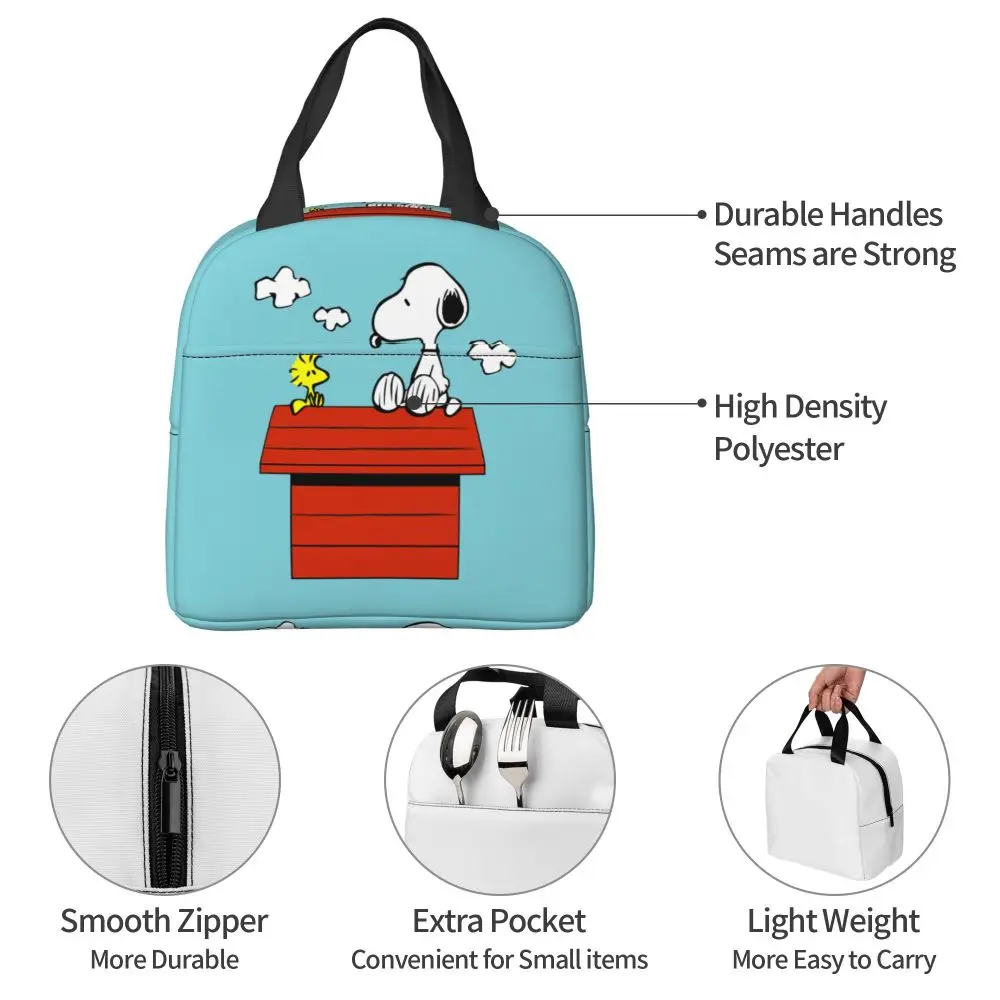 Custom Funny Cartoon Snoopy Lunch Box Waterproof Thermal Cooler Food Insulated Lunch Bag Kids For Kids Portable Picnic Tote Bags