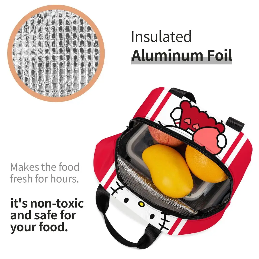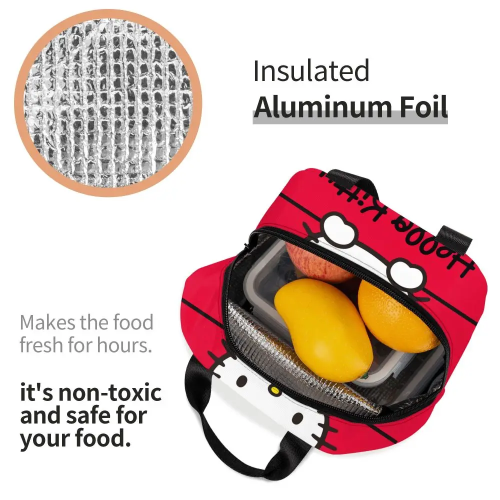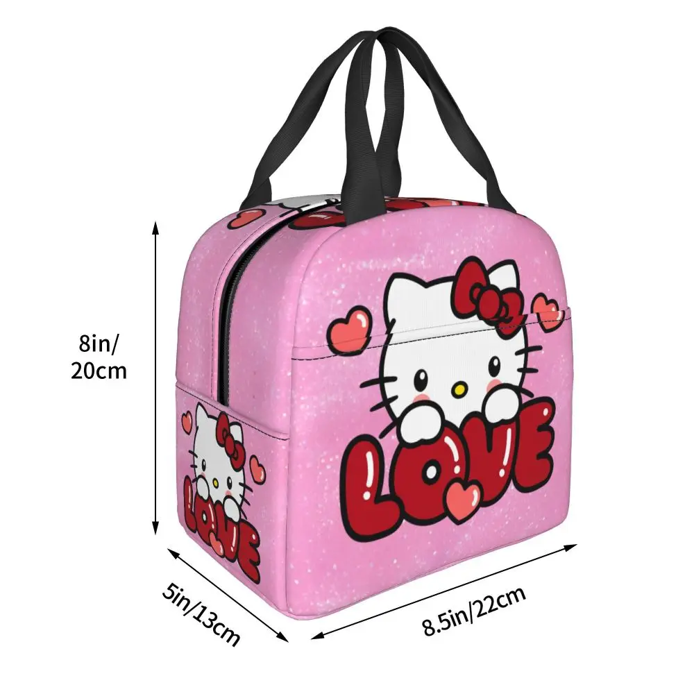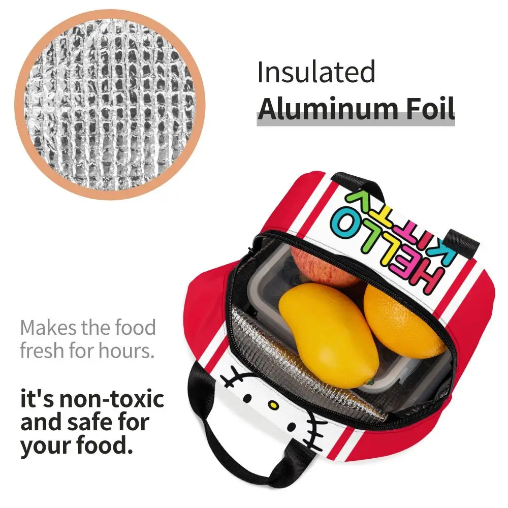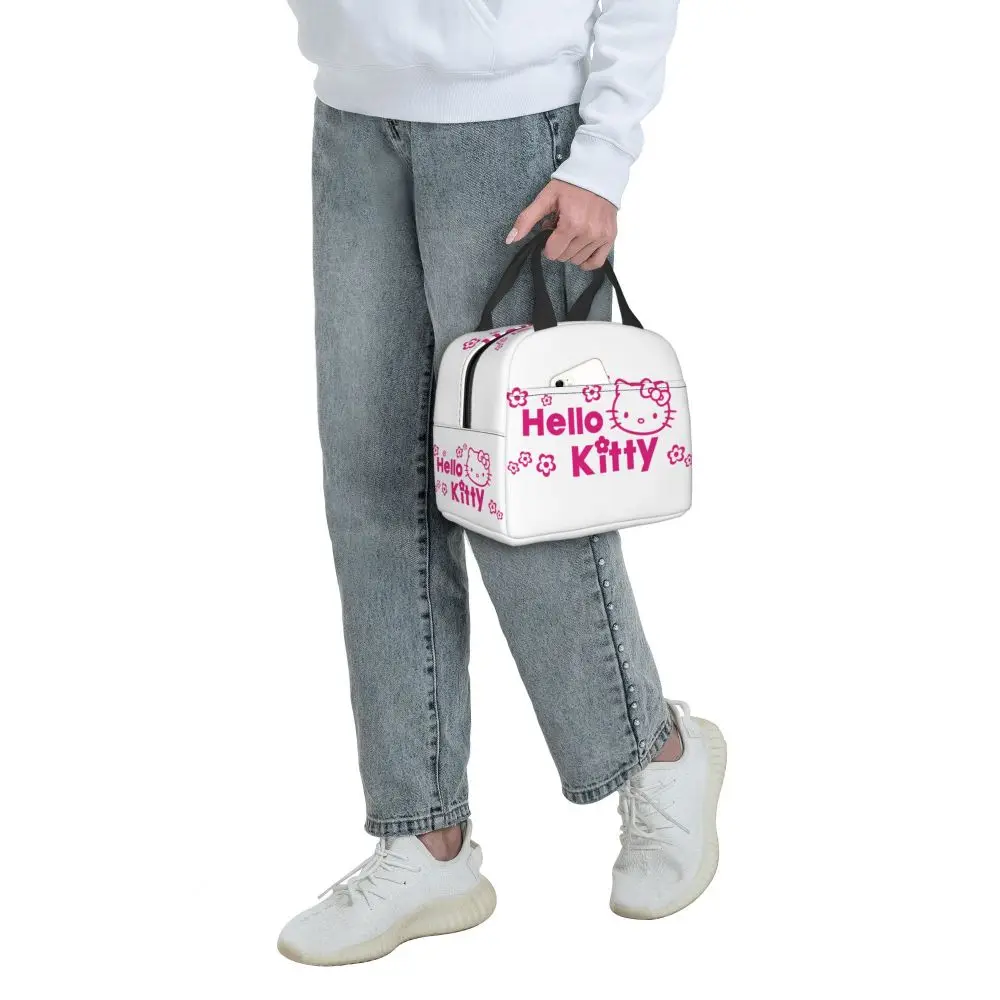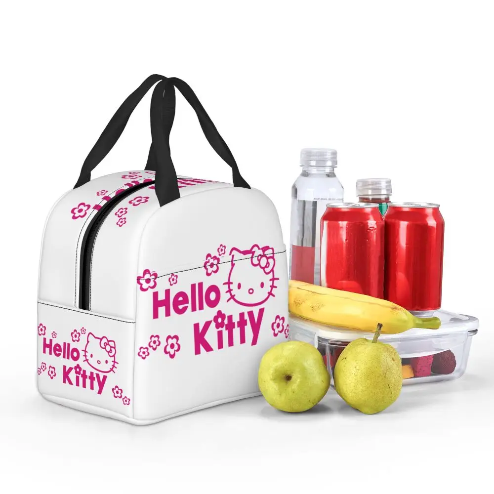Custom Hello Kitty Cat Lunch Bag Leakproof Cooler Thermal Insulated Bento Box For Women Kids Picnic Travel Food Tote Bags