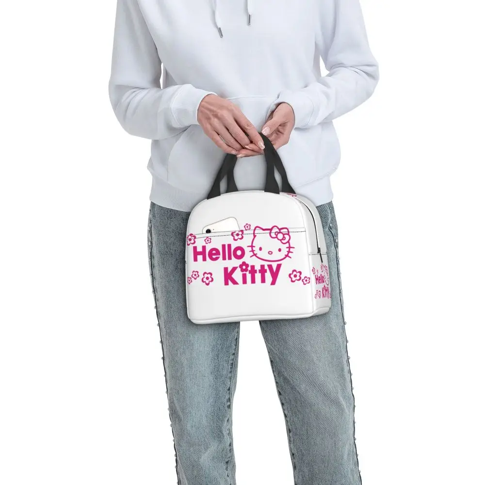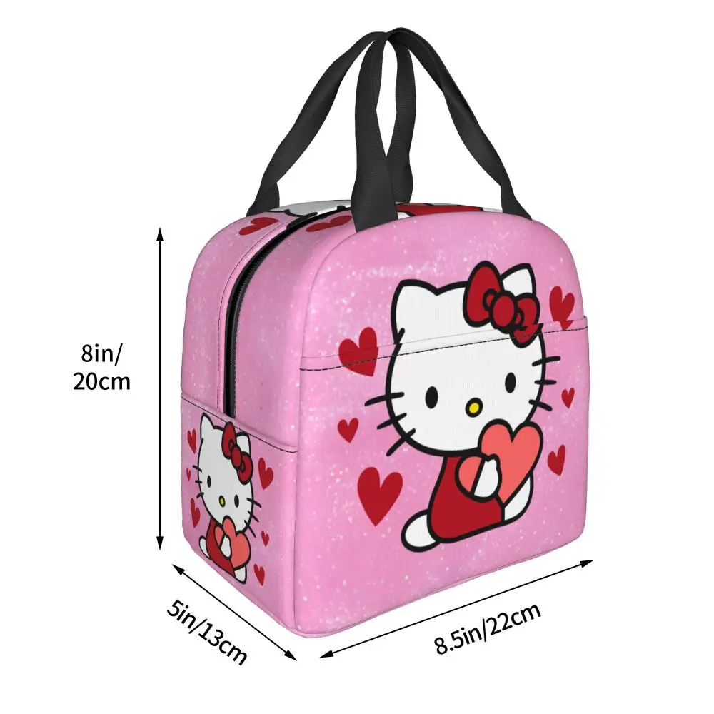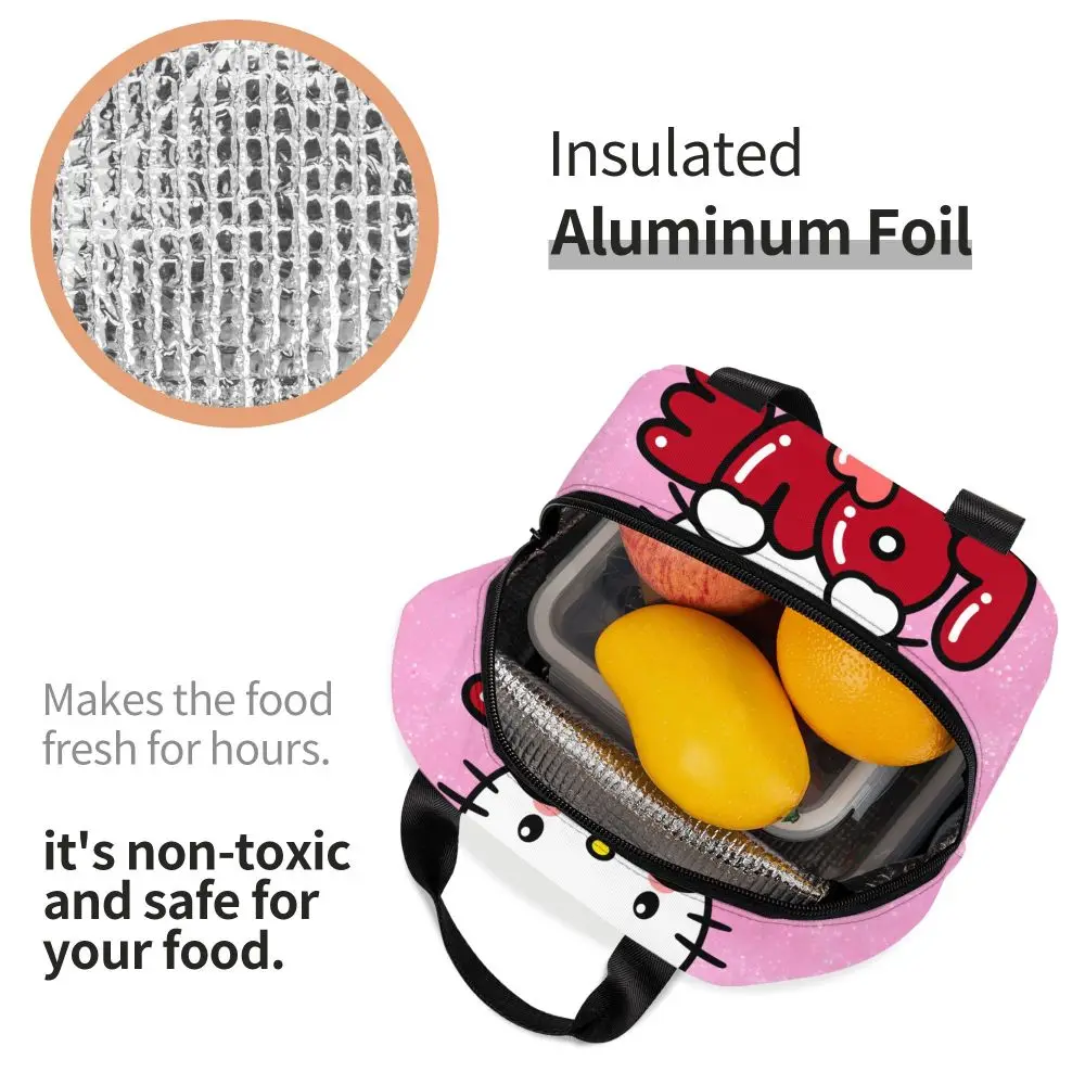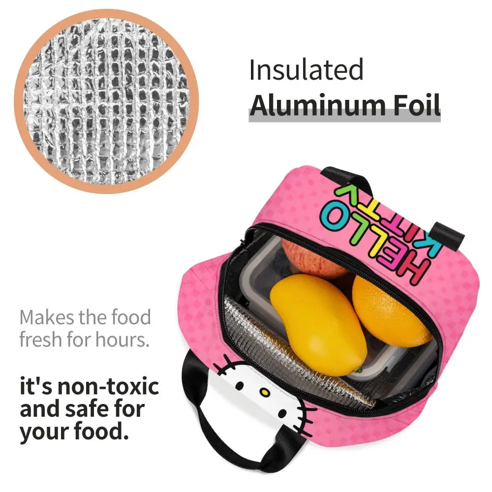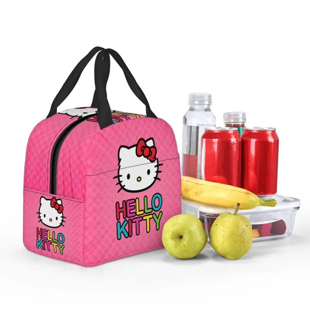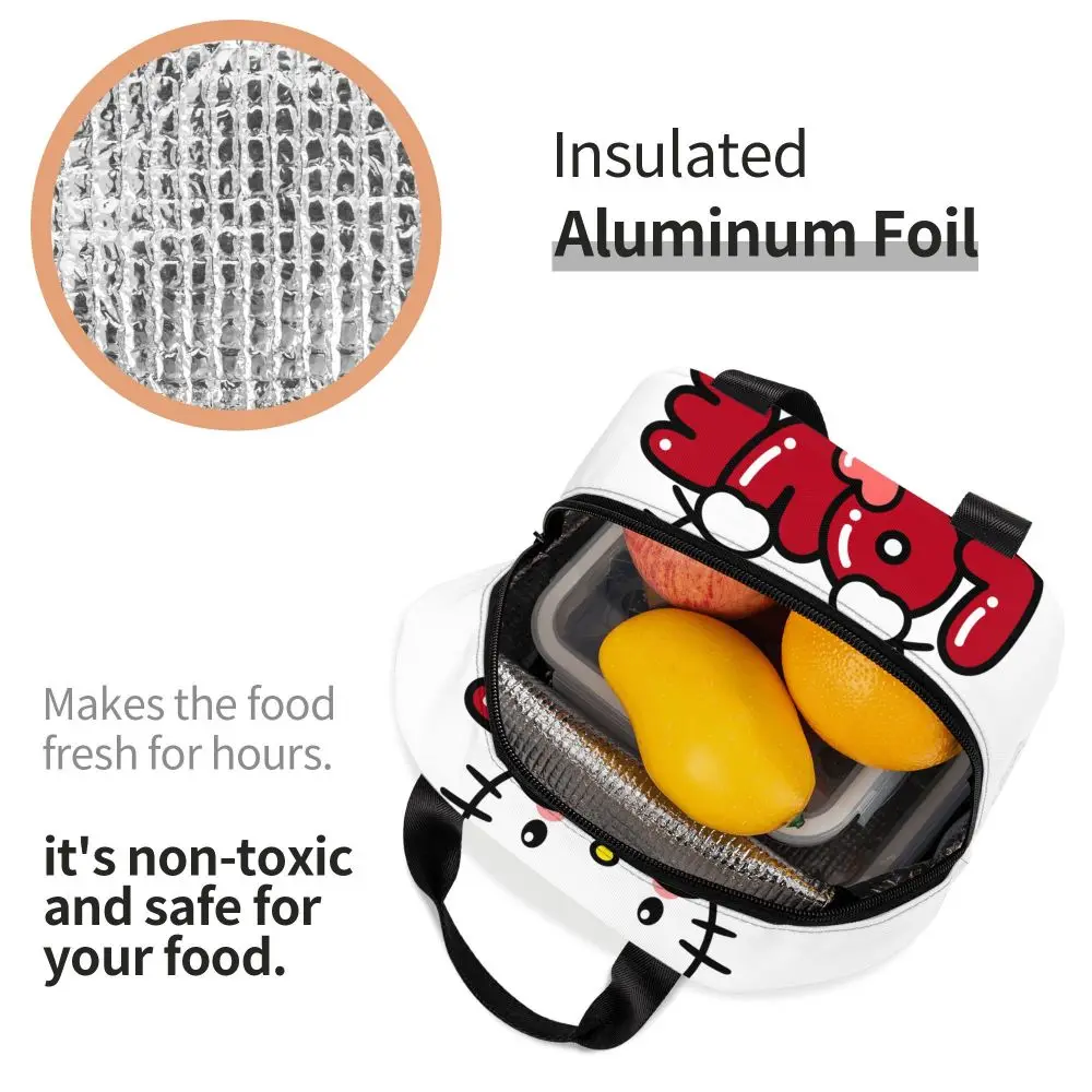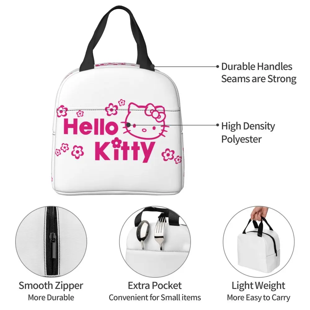 Custom Hello Kitty Cat Lunch Bag Leakproof Cooler Thermal Insulated Bento Box For Women Kids Picnic Travel Food Tote Bags