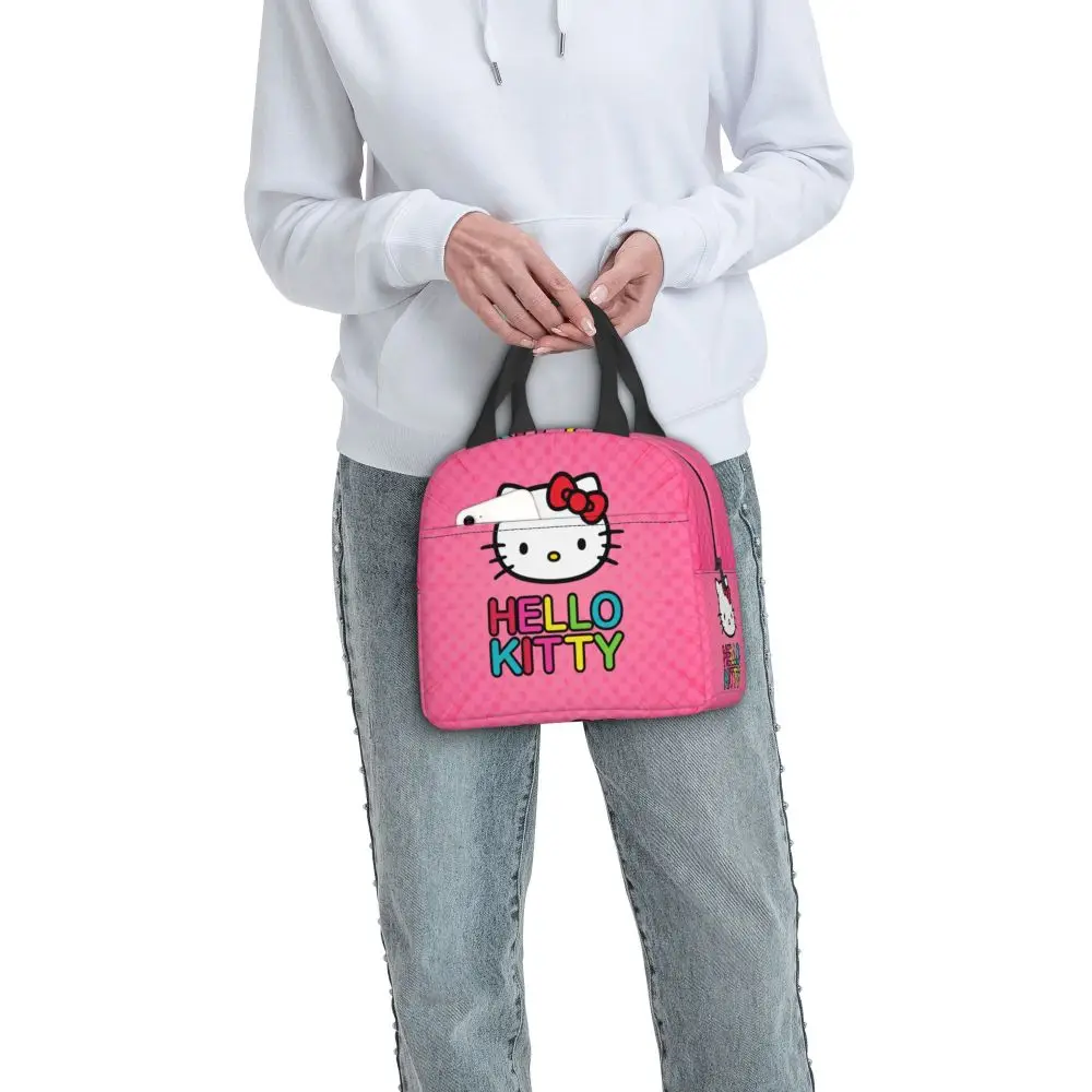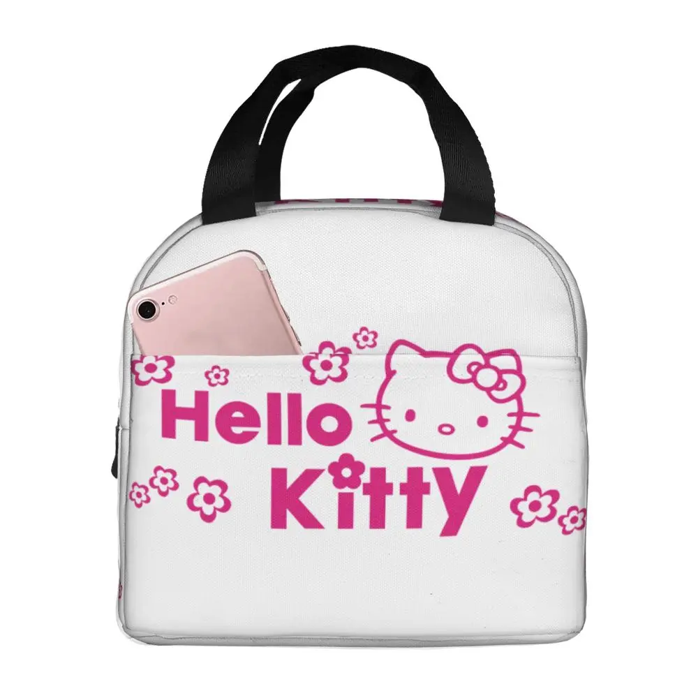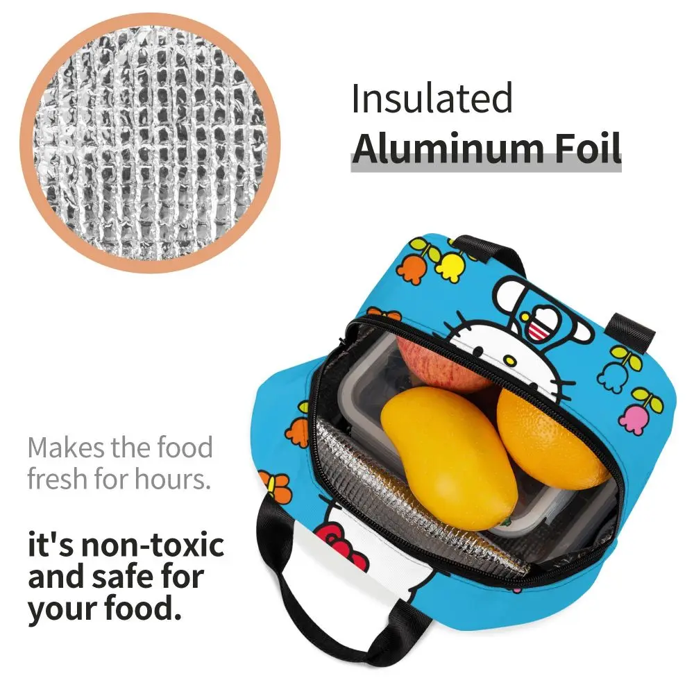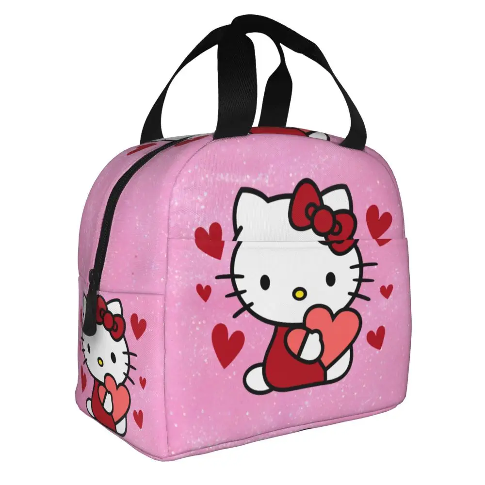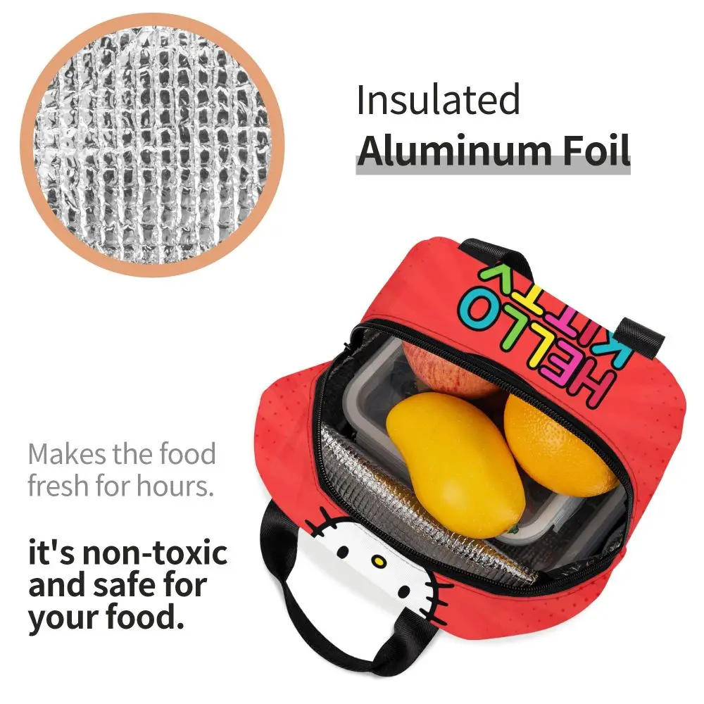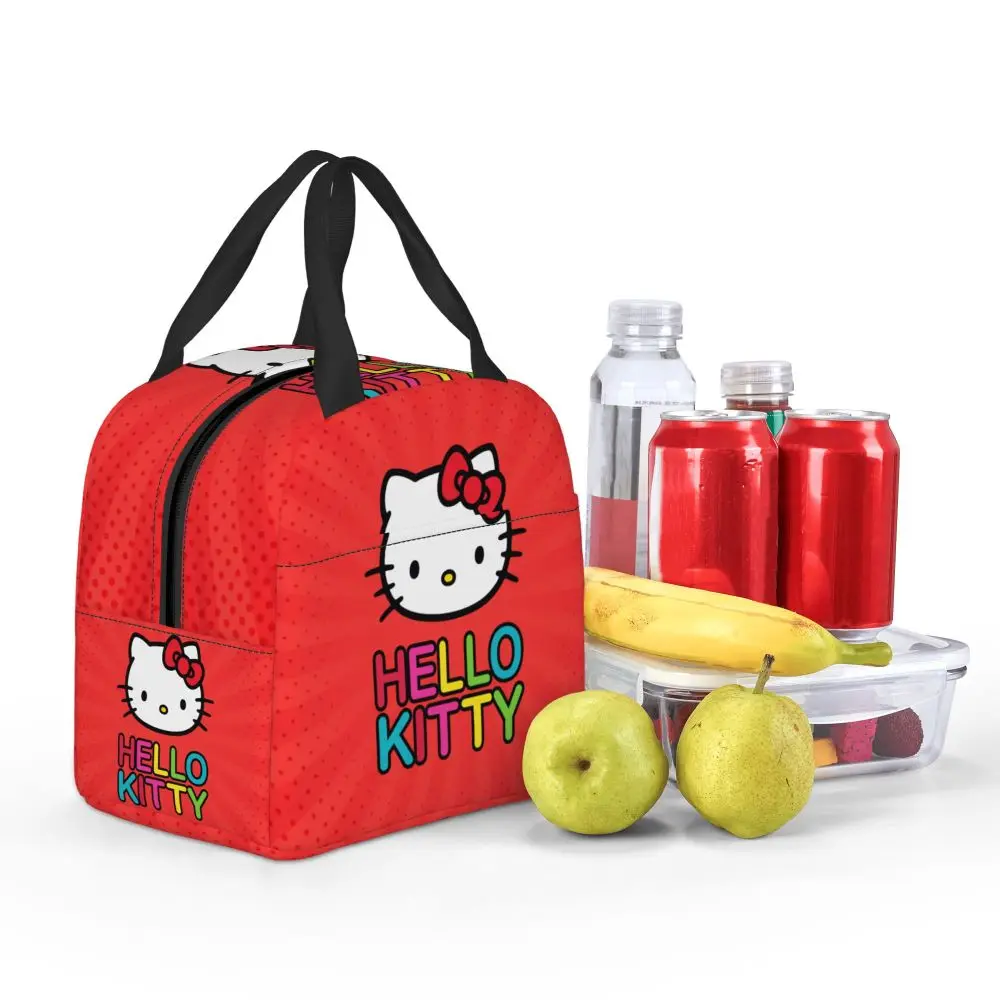 Custom Hello Kitty Cat Lunch Bag Leakproof Cooler Thermal Insulated Bento Box For Women Kids Picnic Travel Food Tote Bags
