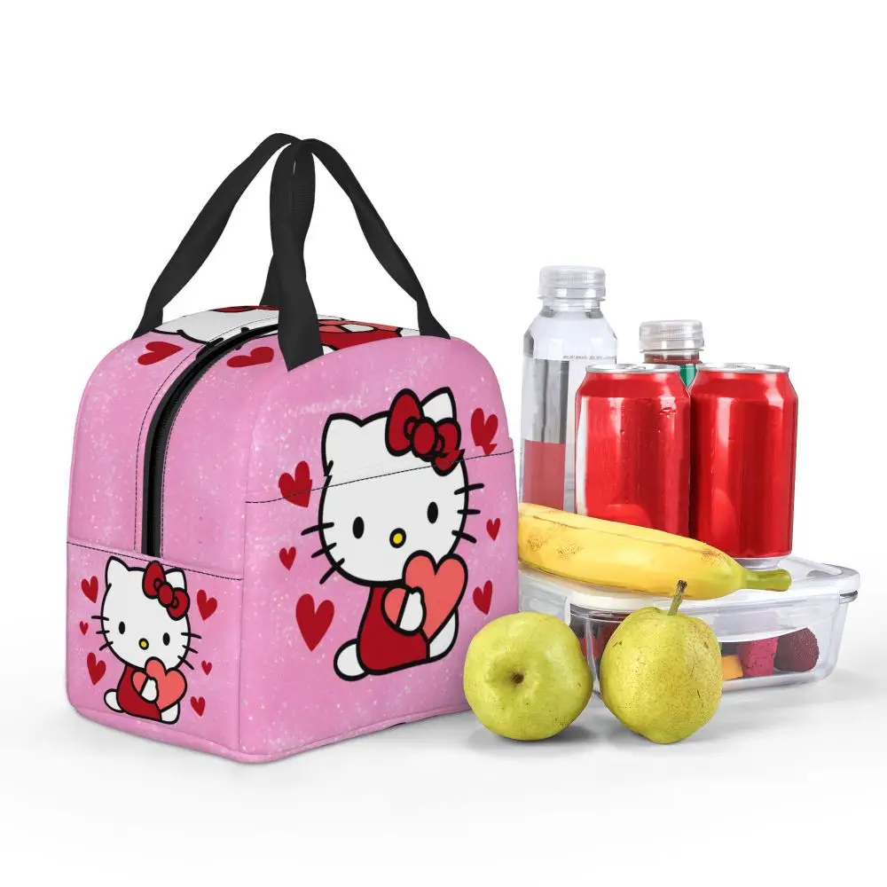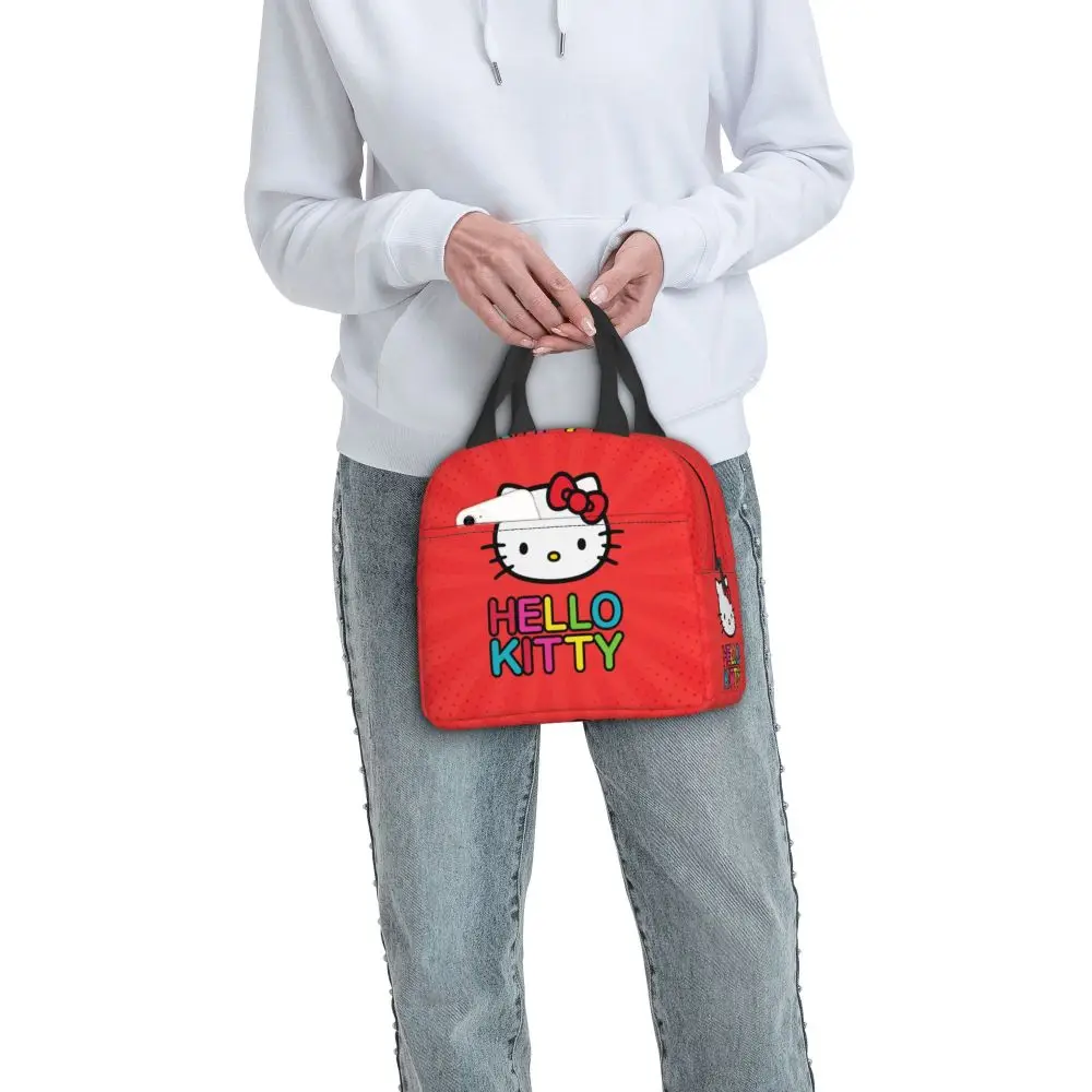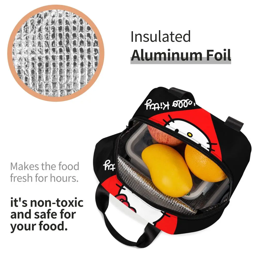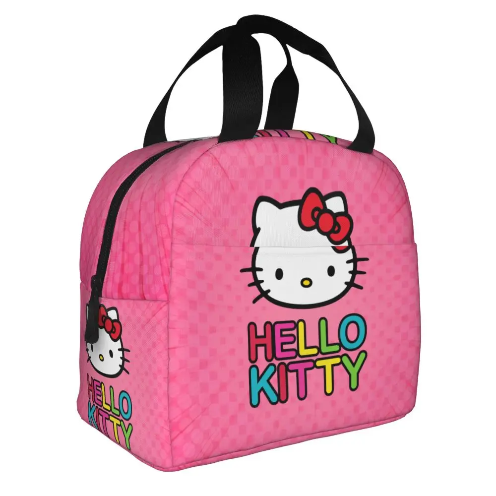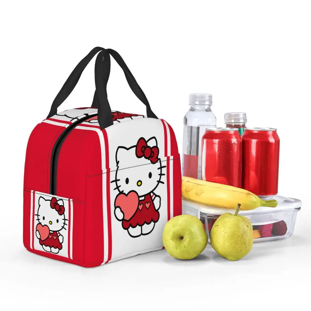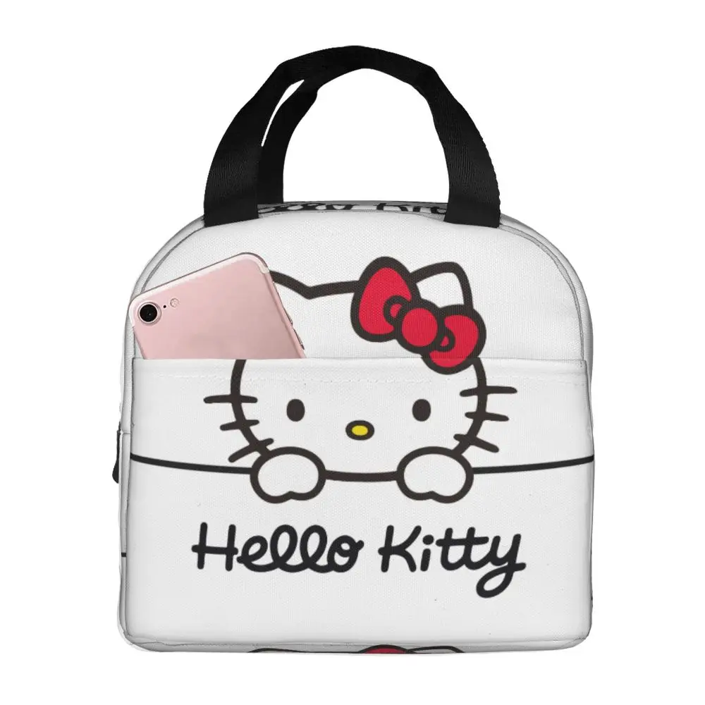 Custom Hello Kitty Cat Lunch Bag Leakproof Cooler Thermal Insulated Bento Box For Women Kids Picnic Travel Food Tote Bags