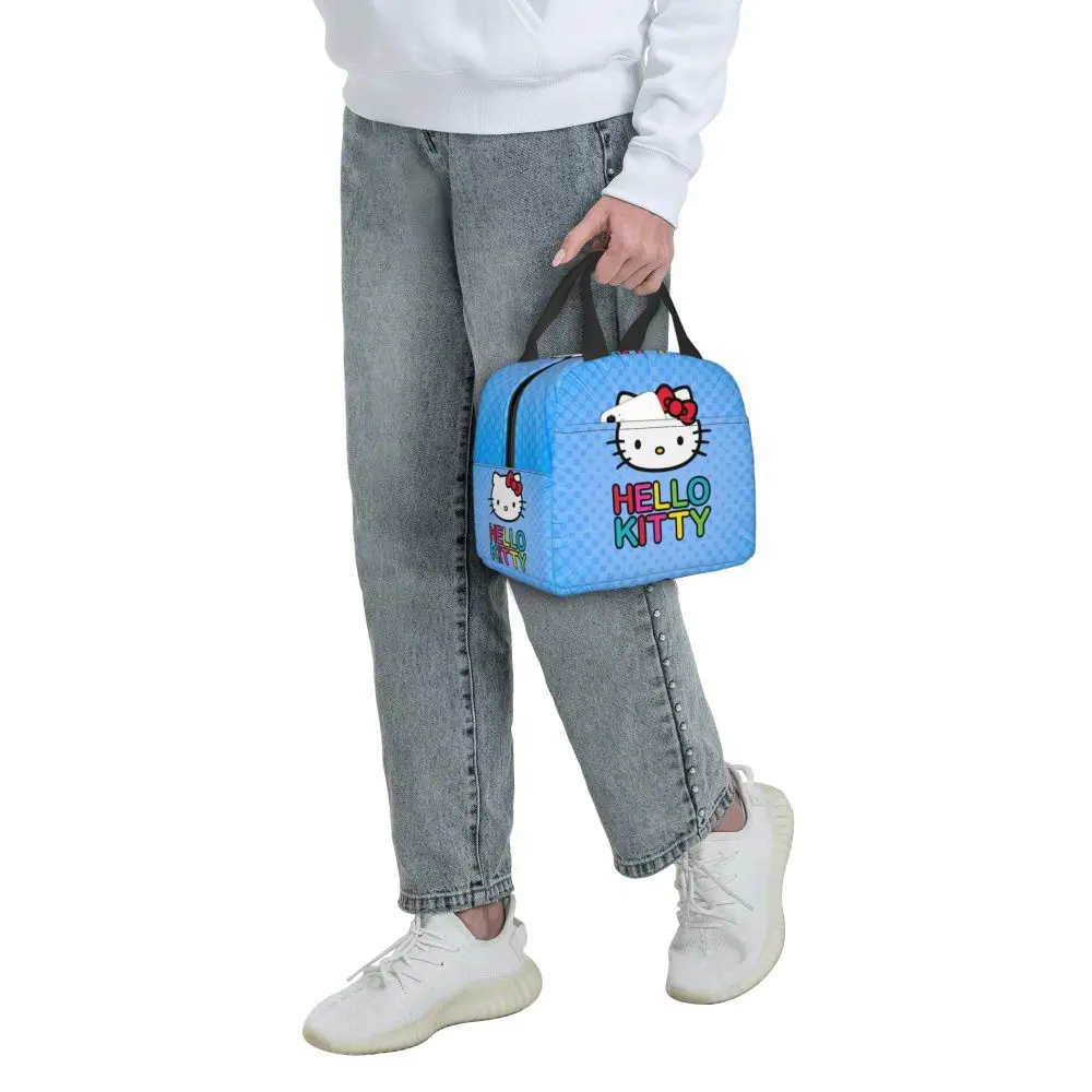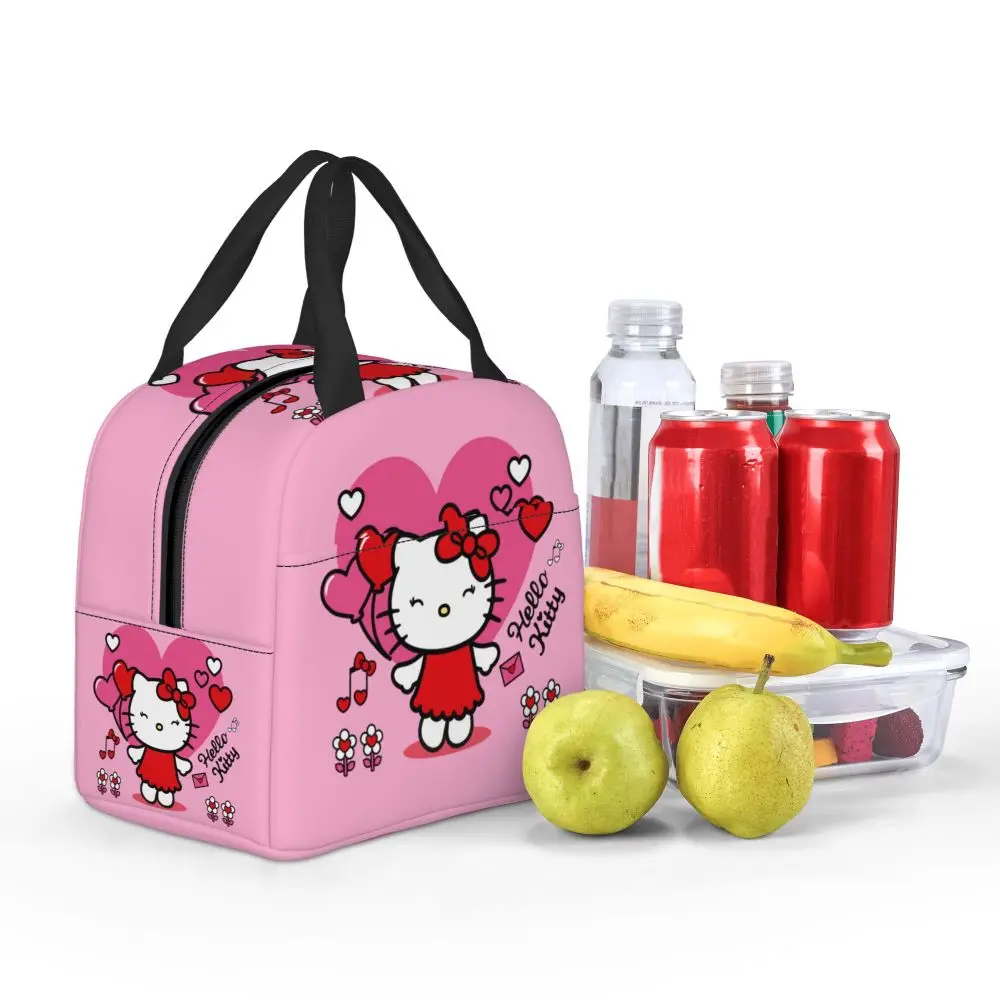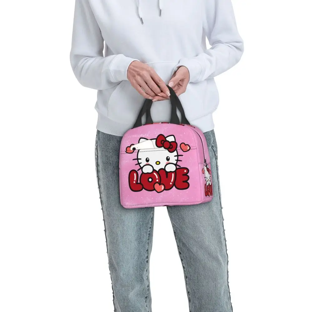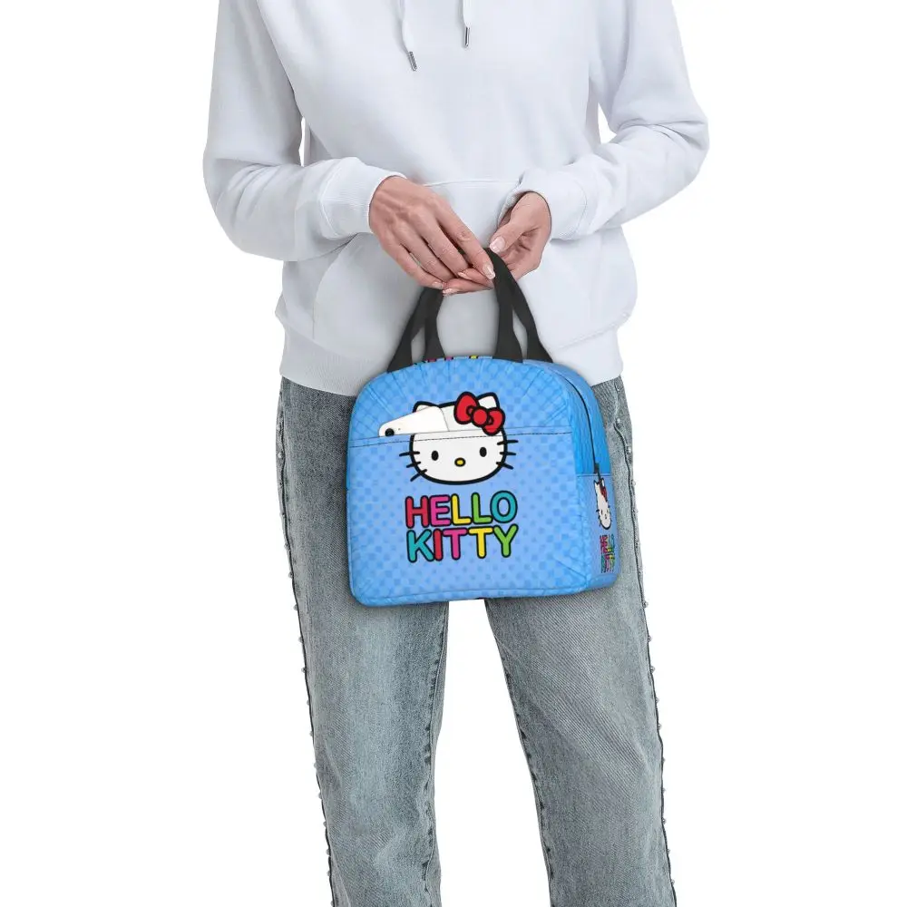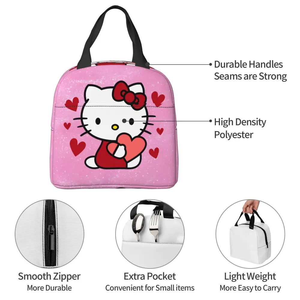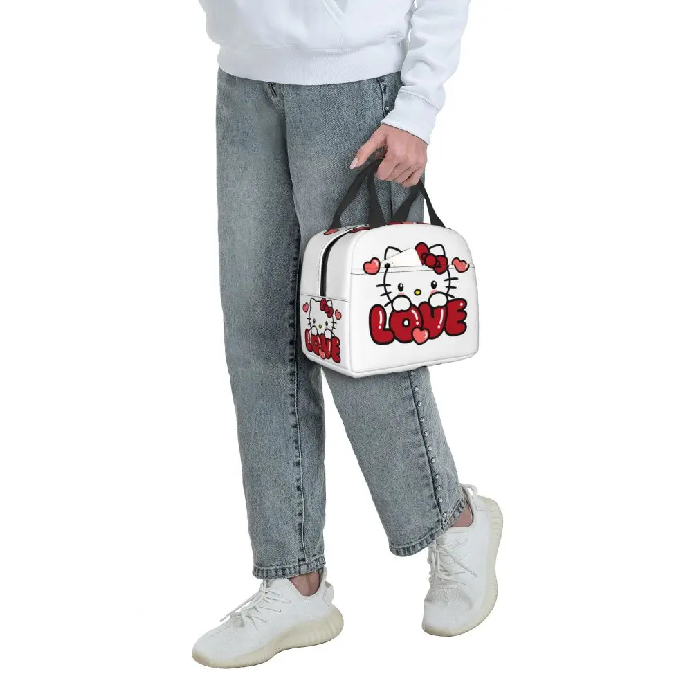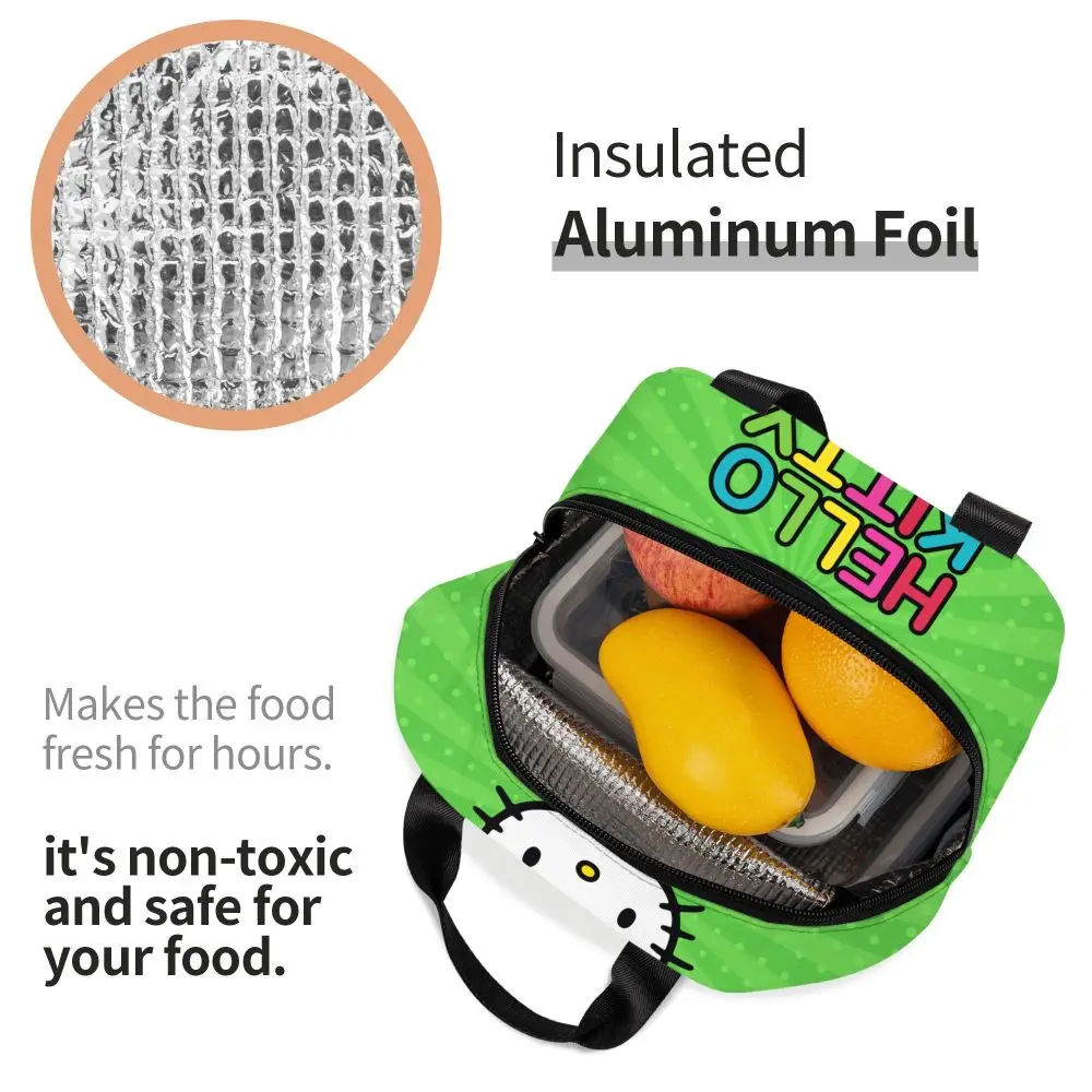 Custom Hello Kitty Cat Lunch Bag Leakproof Cooler Thermal Insulated Bento Box For Women Kids Picnic Travel Food Tote Bags