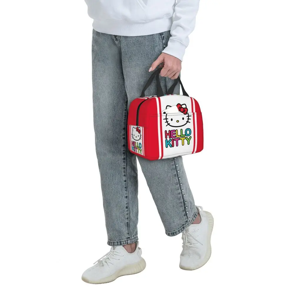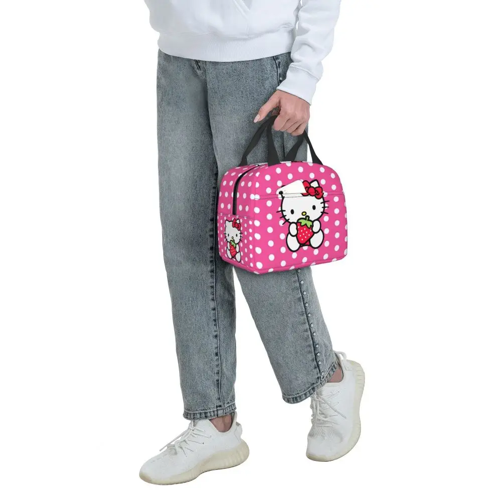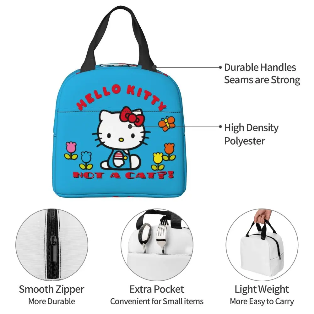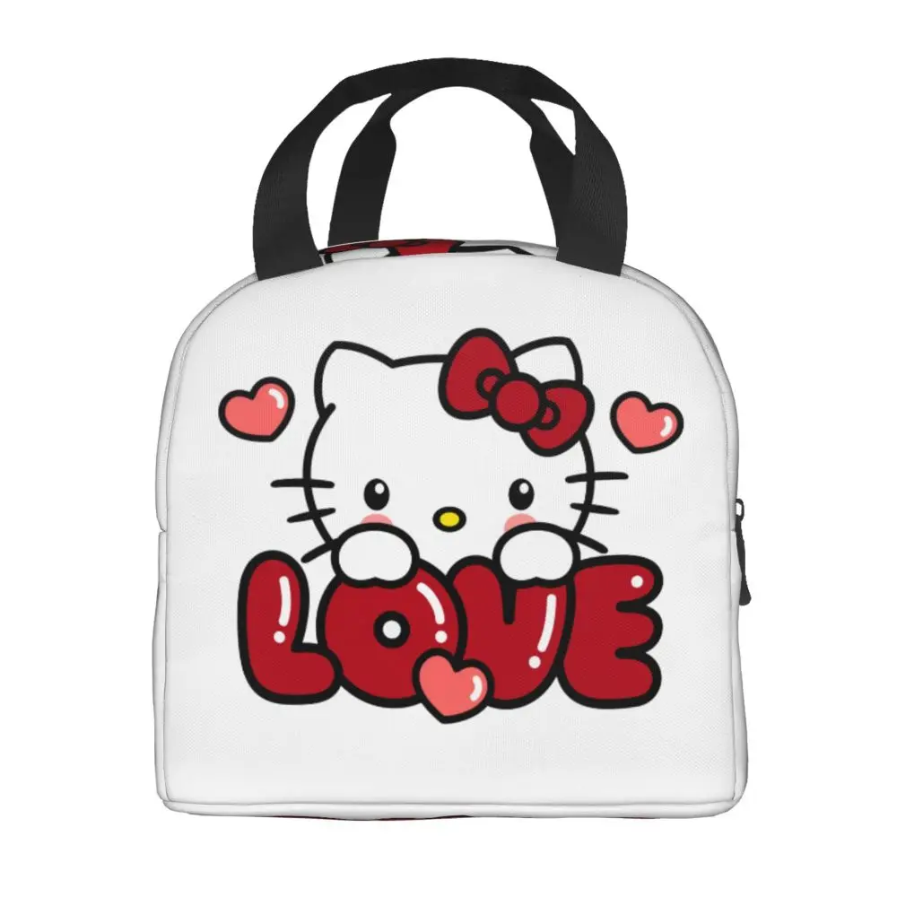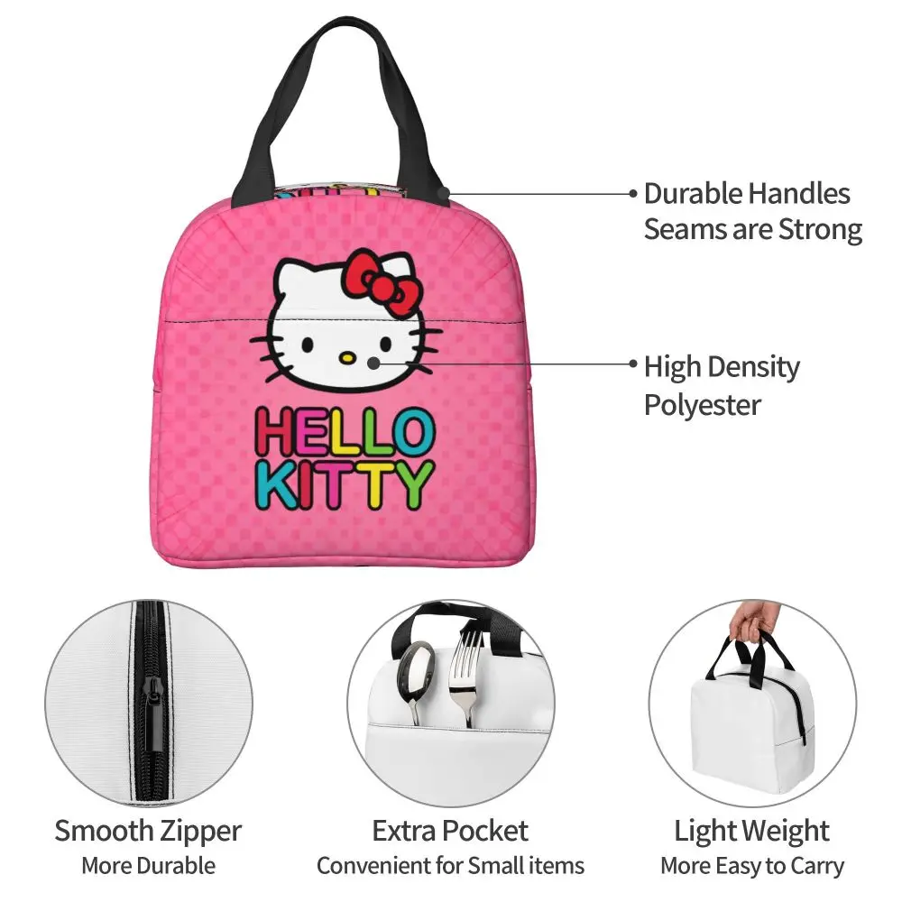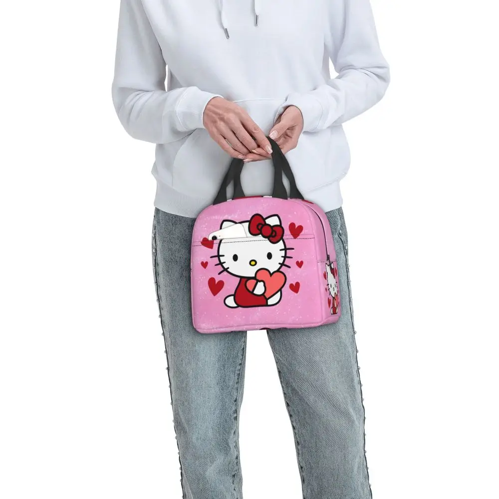 Custom Hello Kitty Cat Lunch Bag Leakproof Cooler Thermal Insulated Bento Box For Women Kids Picnic Travel Food Tote Bags
