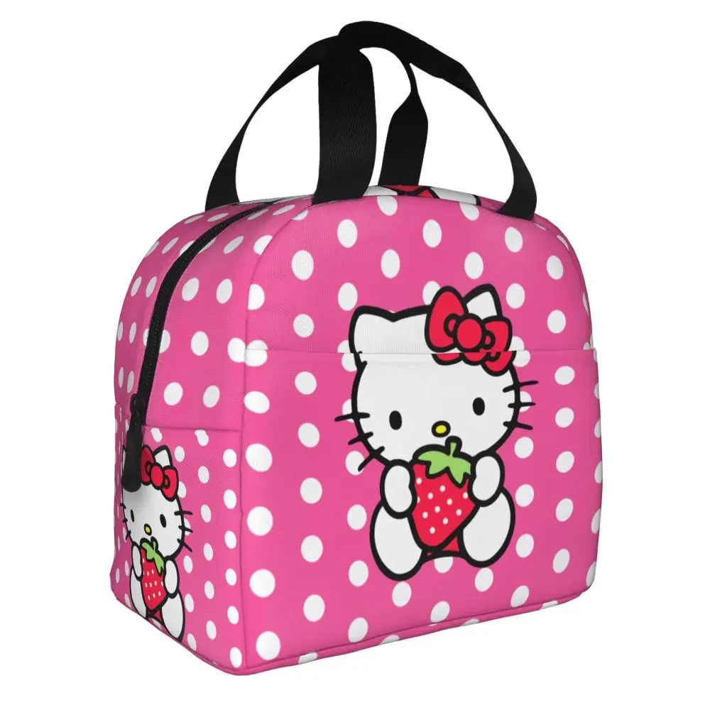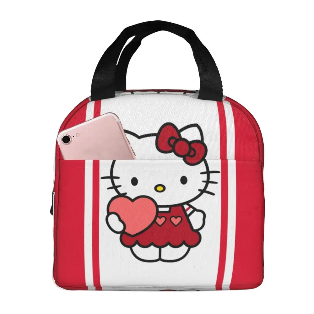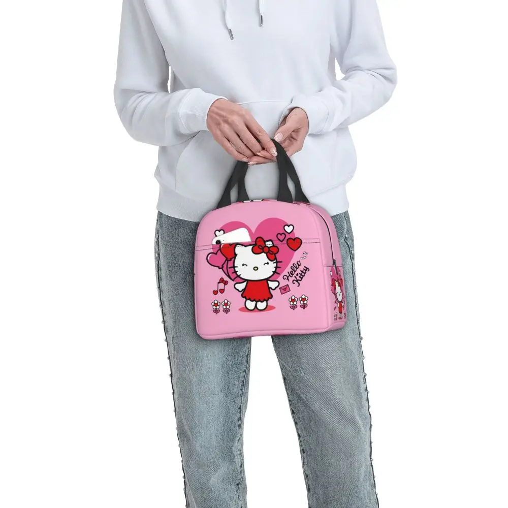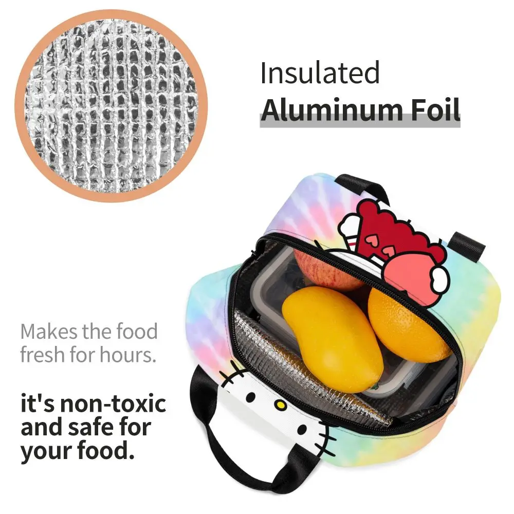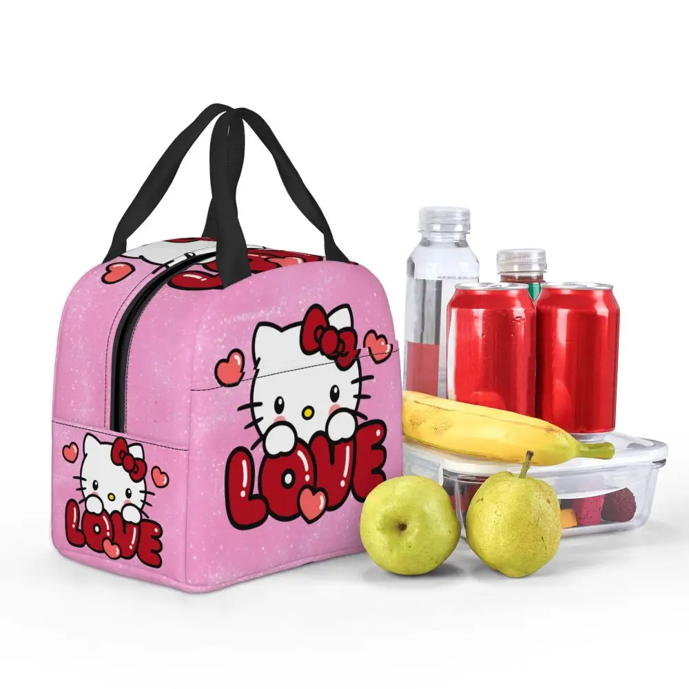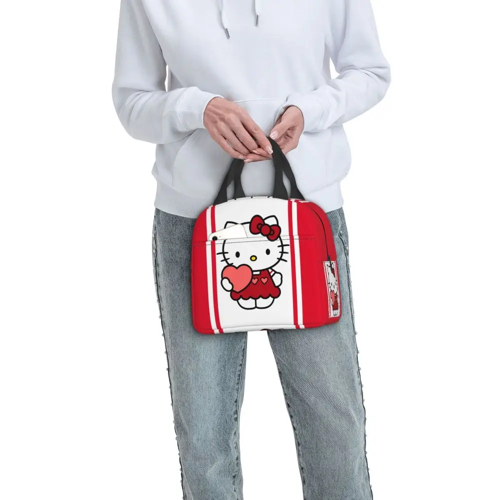 Custom Hello Kitty Cat Lunch Bag Leakproof Cooler Thermal Insulated Bento Box For Women Kids Picnic Travel Food Tote Bags