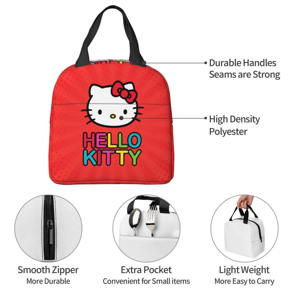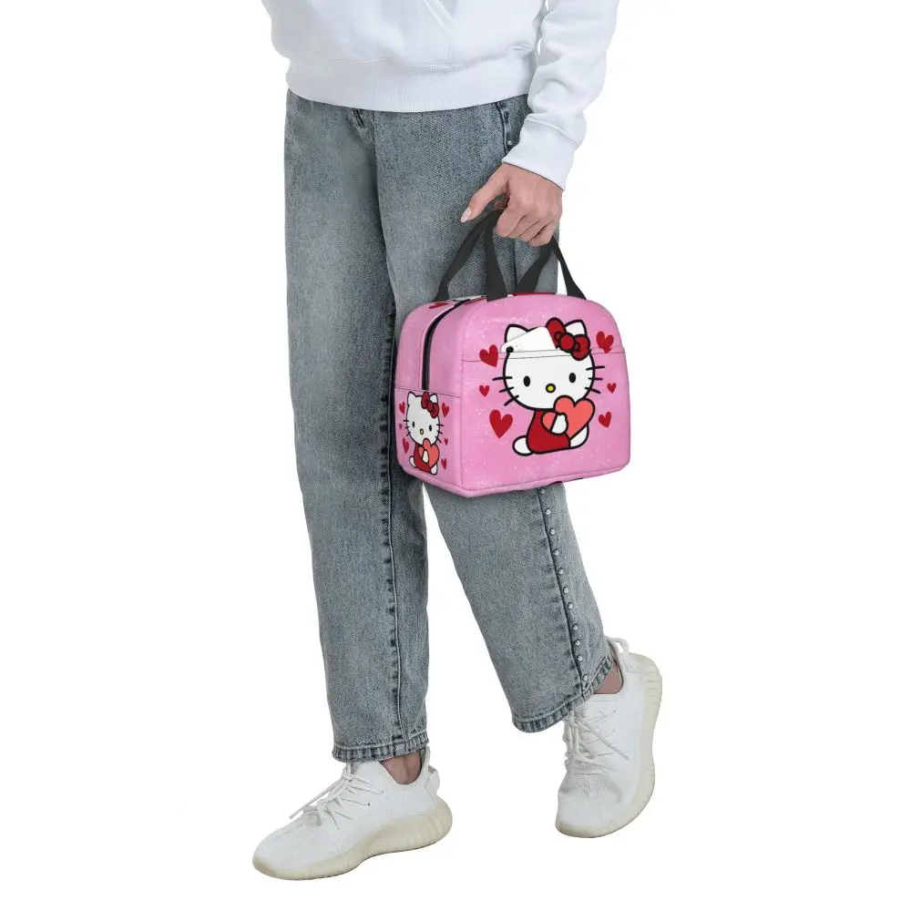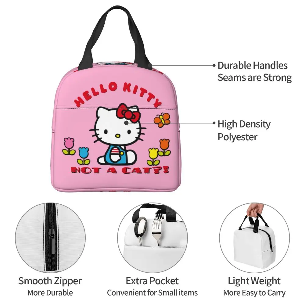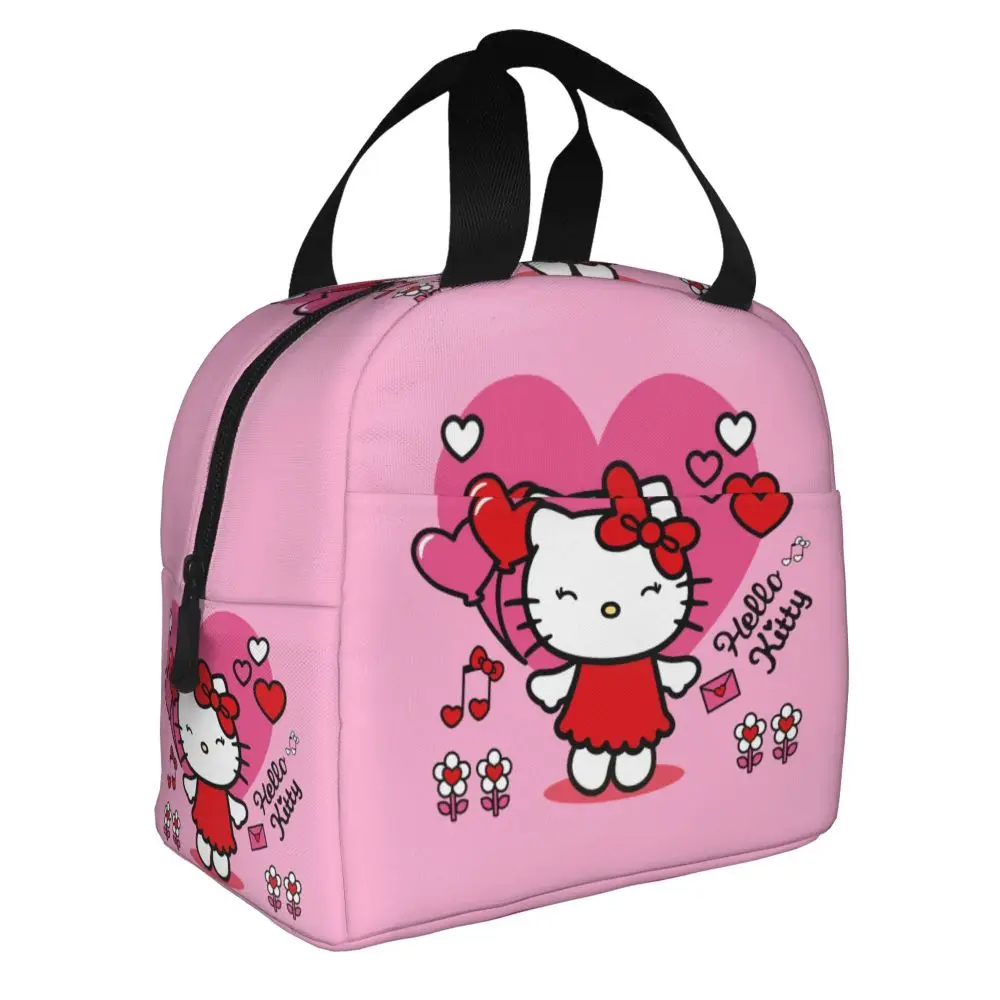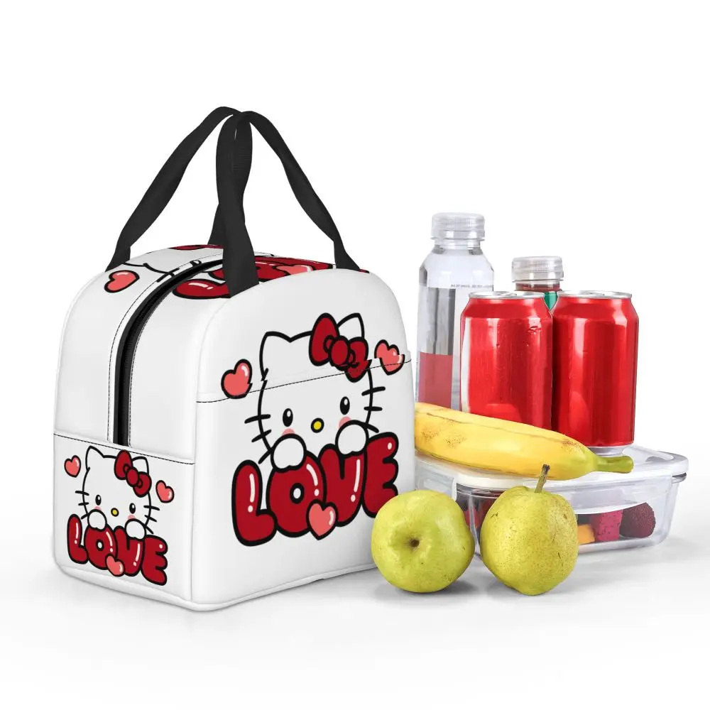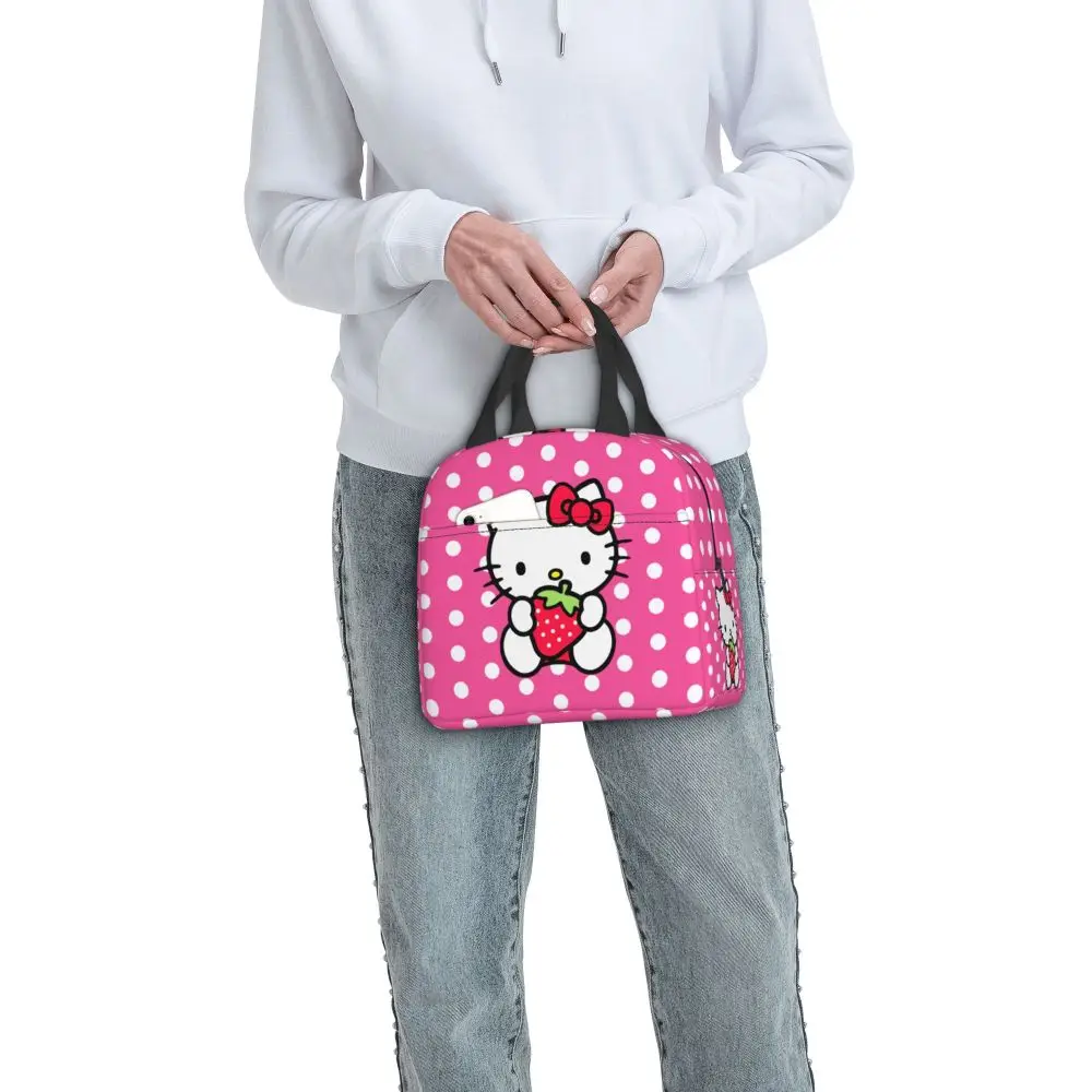 Custom Hello Kitty Cat Lunch Bag Leakproof Cooler Thermal Insulated Bento Box For Women Kids Picnic Travel Food Tote Bags