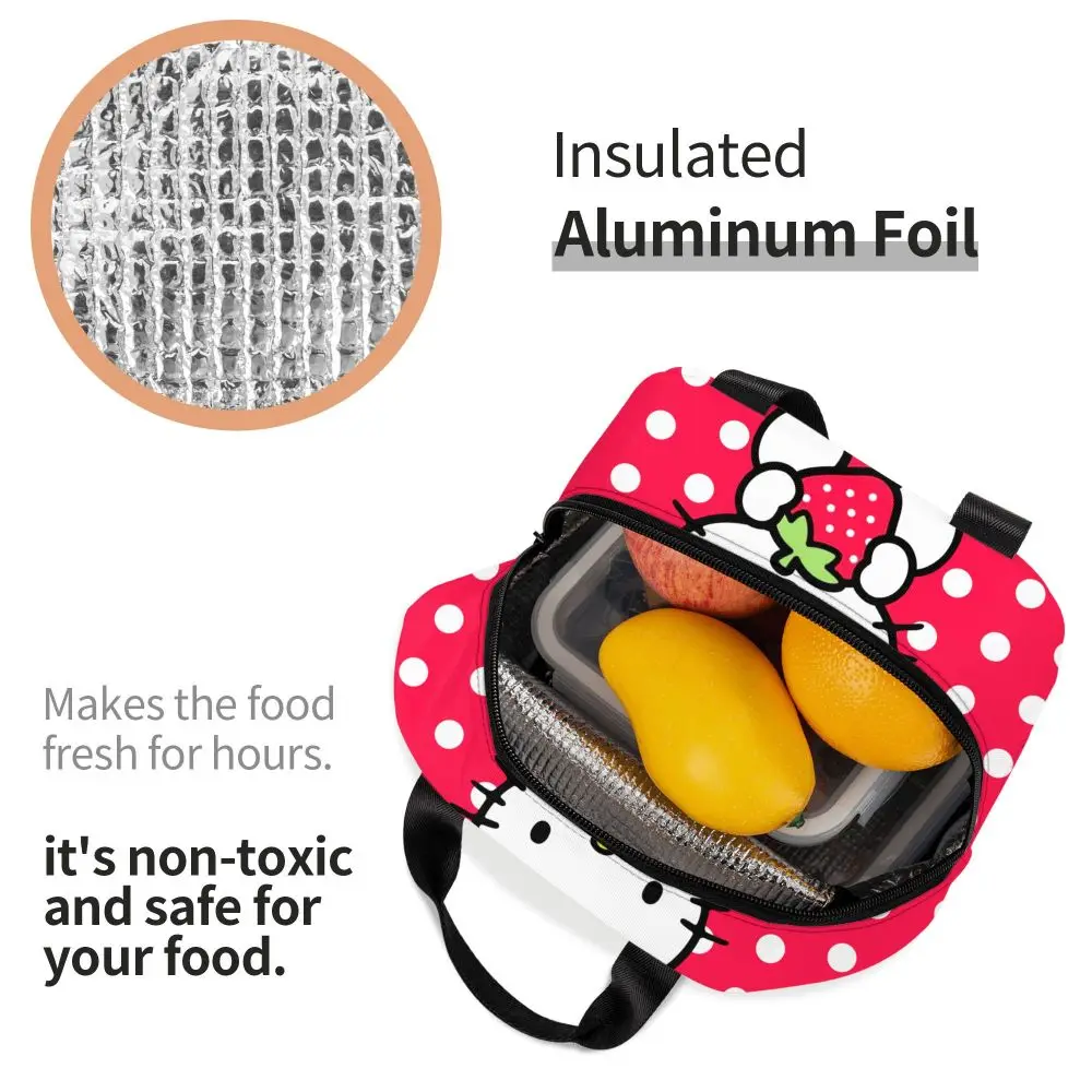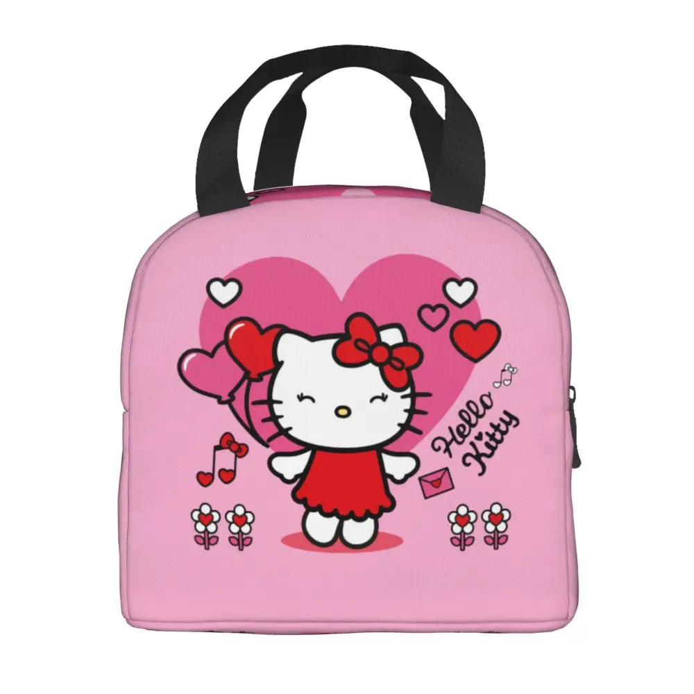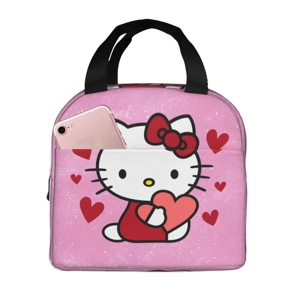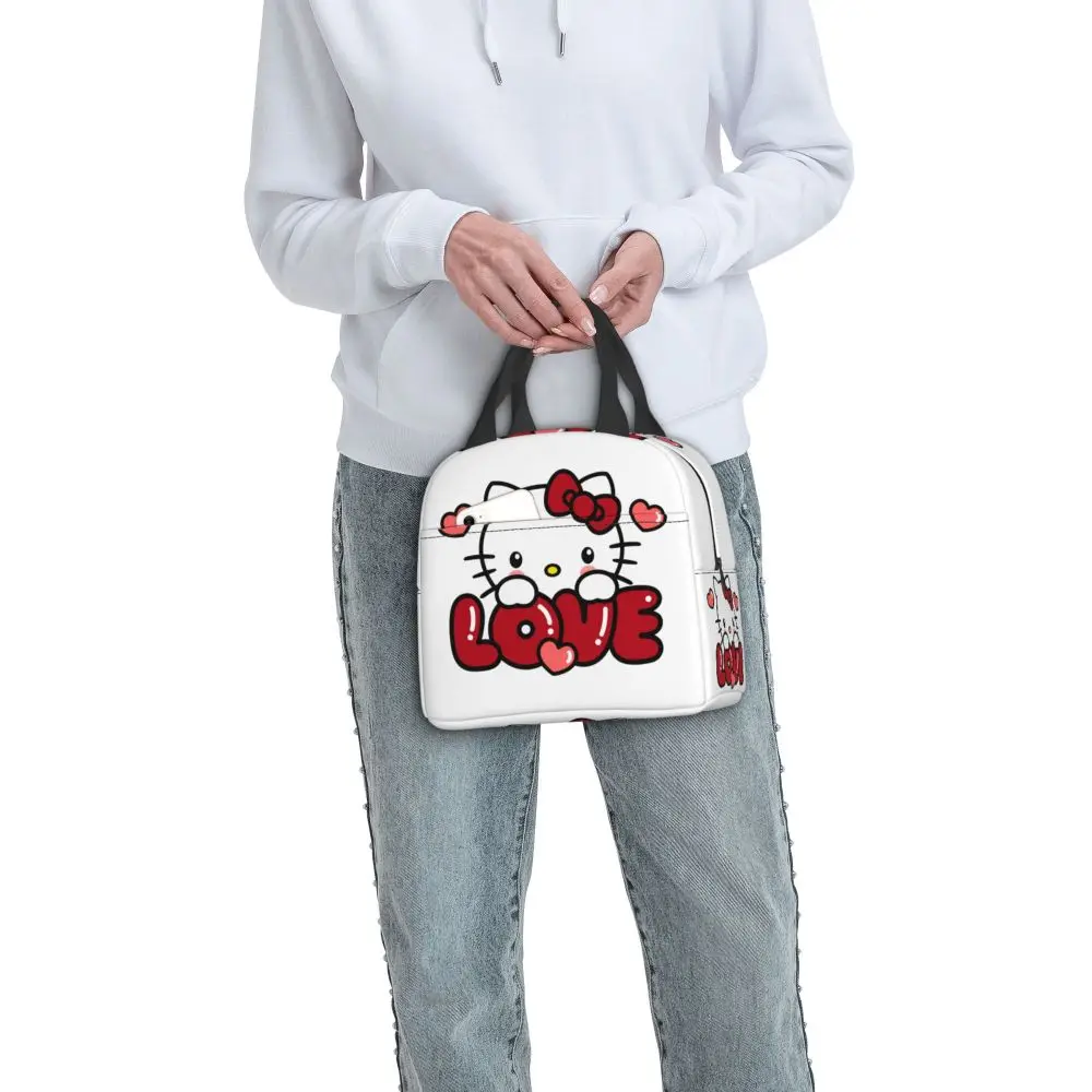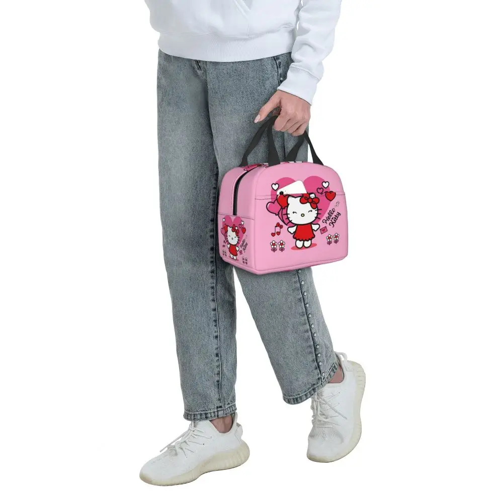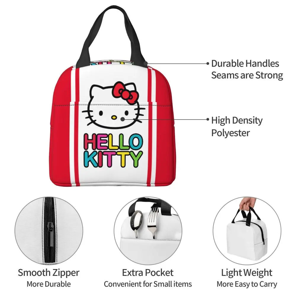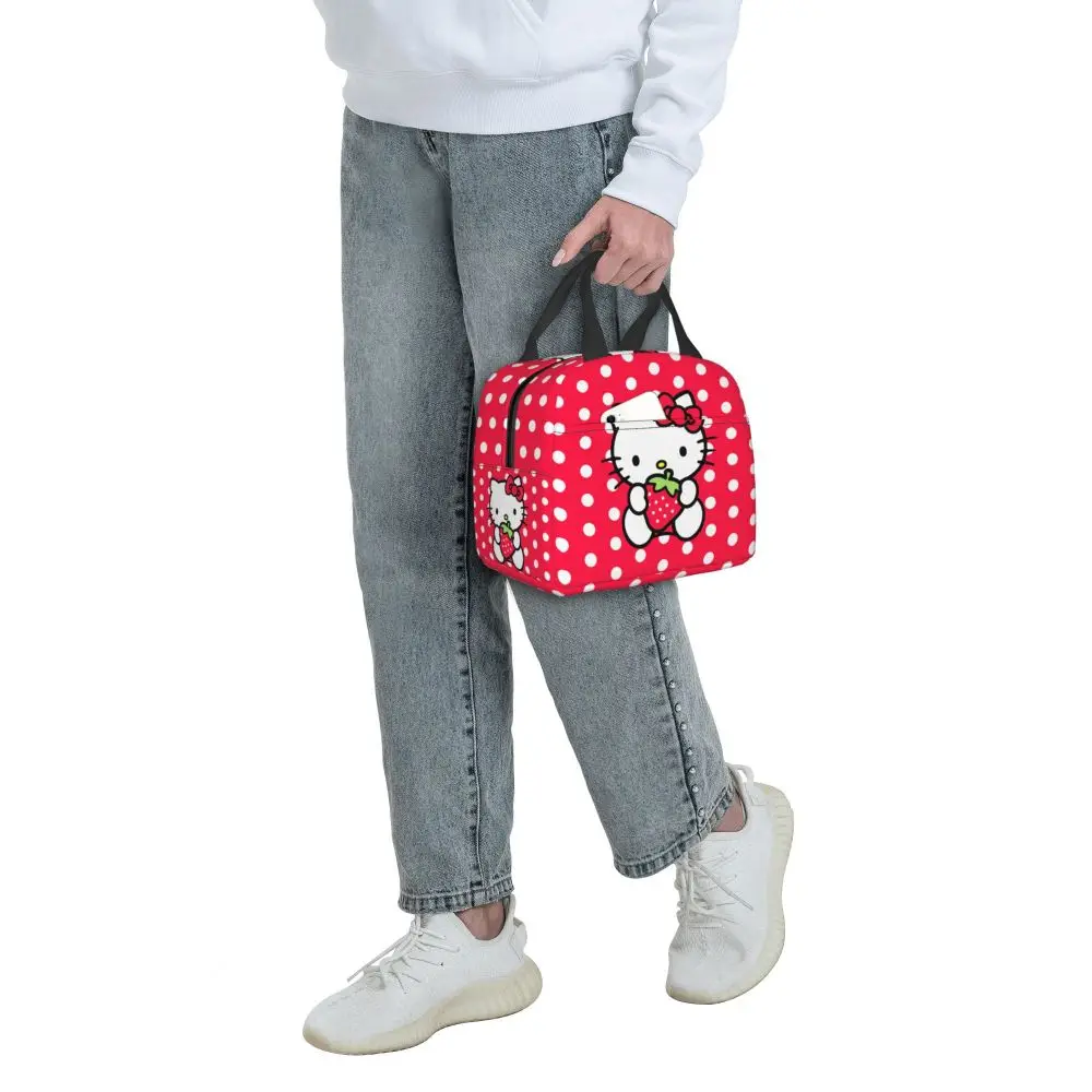 Custom Hello Kitty Cat Lunch Bag Leakproof Cooler Thermal Insulated Bento Box For Women Kids Picnic Travel Food Tote Bags