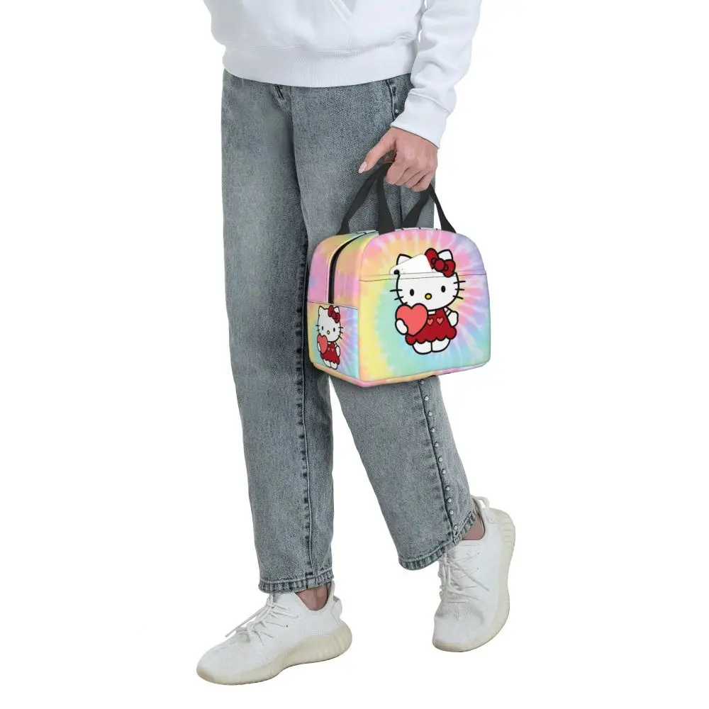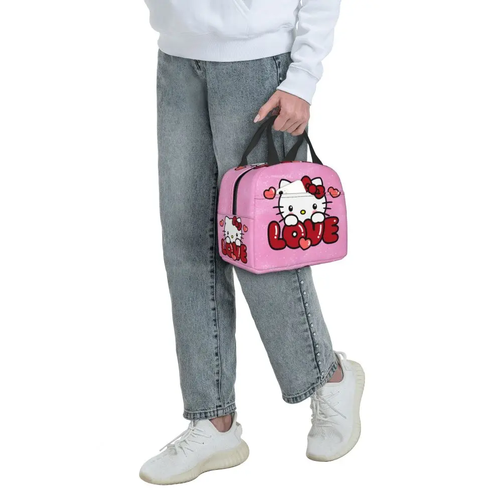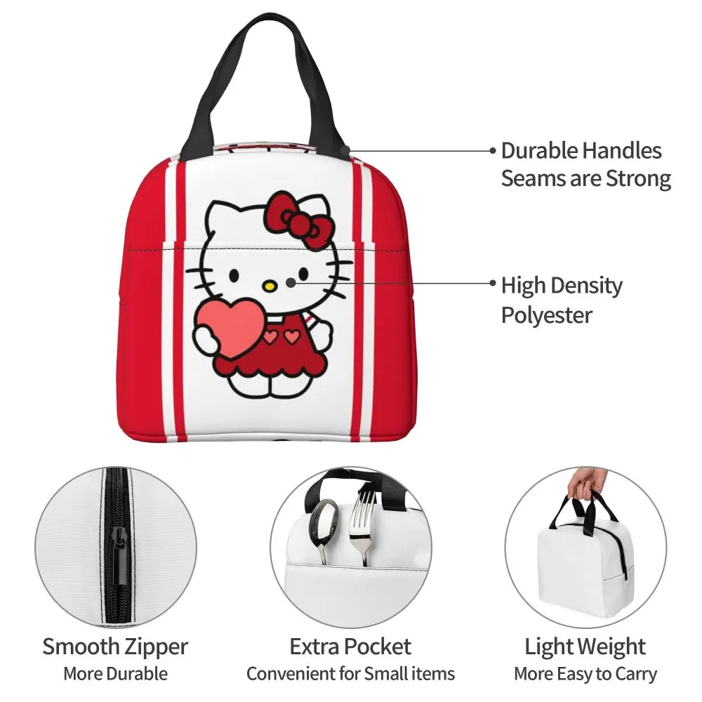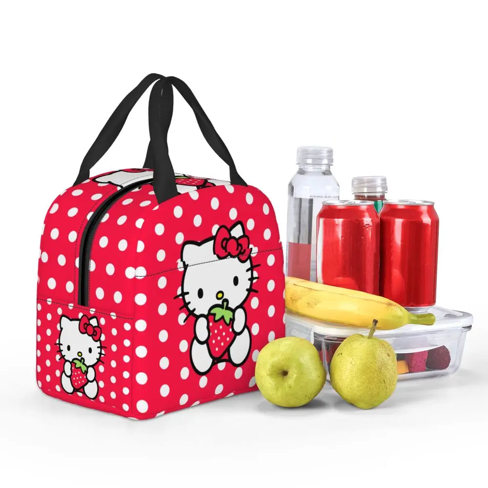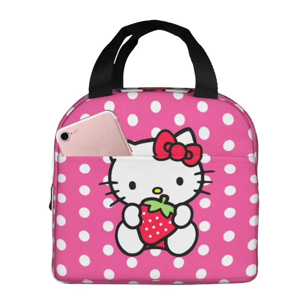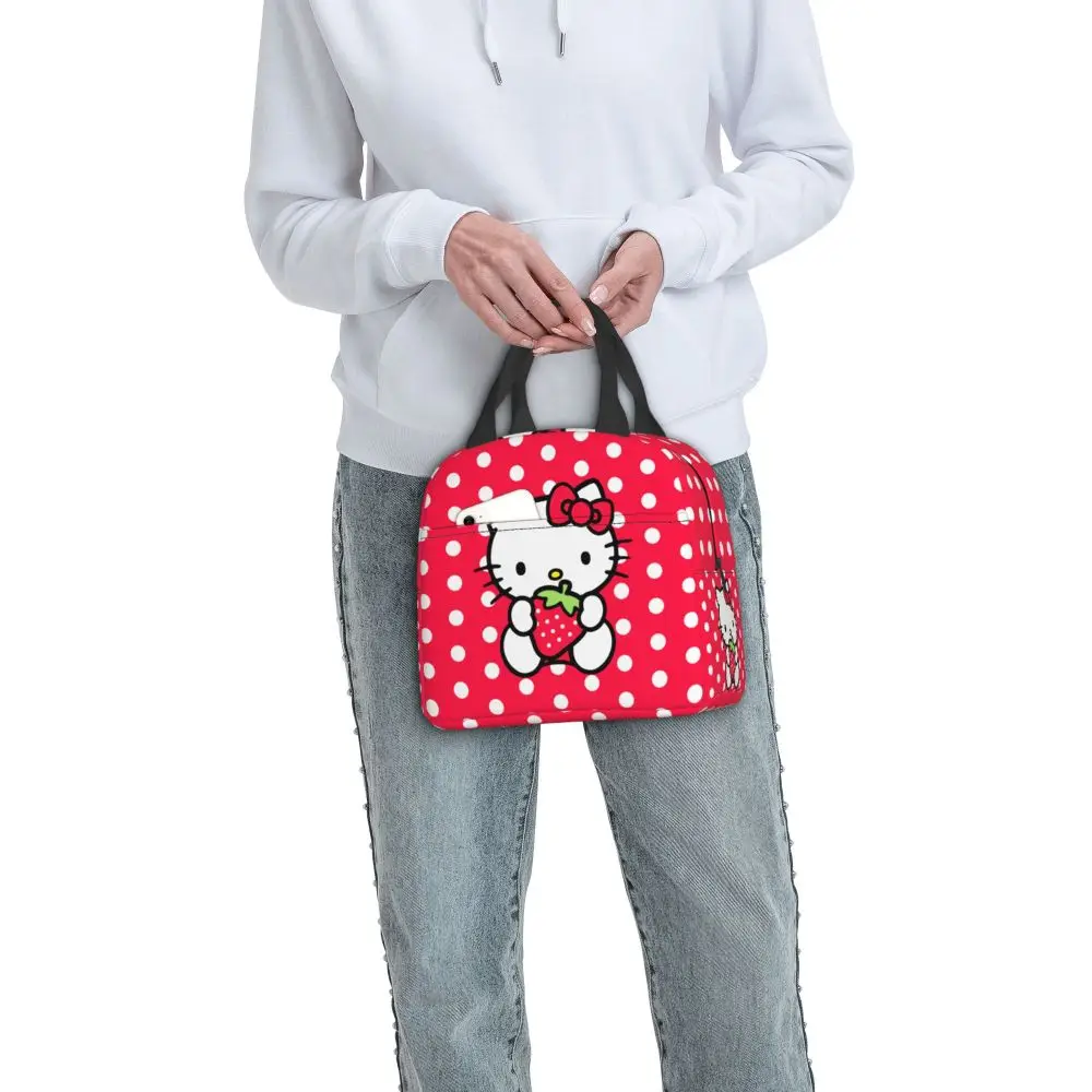 Custom Hello Kitty Cat Lunch Bag Leakproof Cooler Thermal Insulated Bento Box For Women Kids Picnic Travel Food Tote Bags