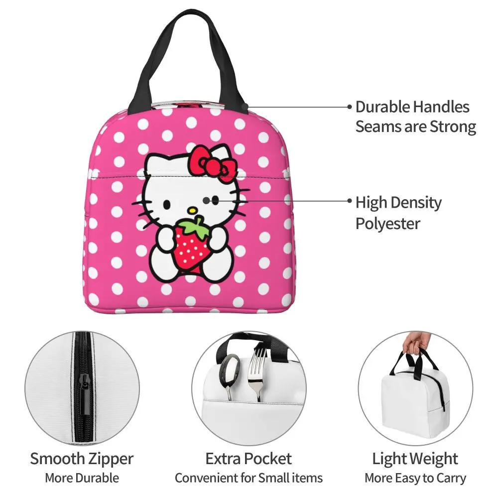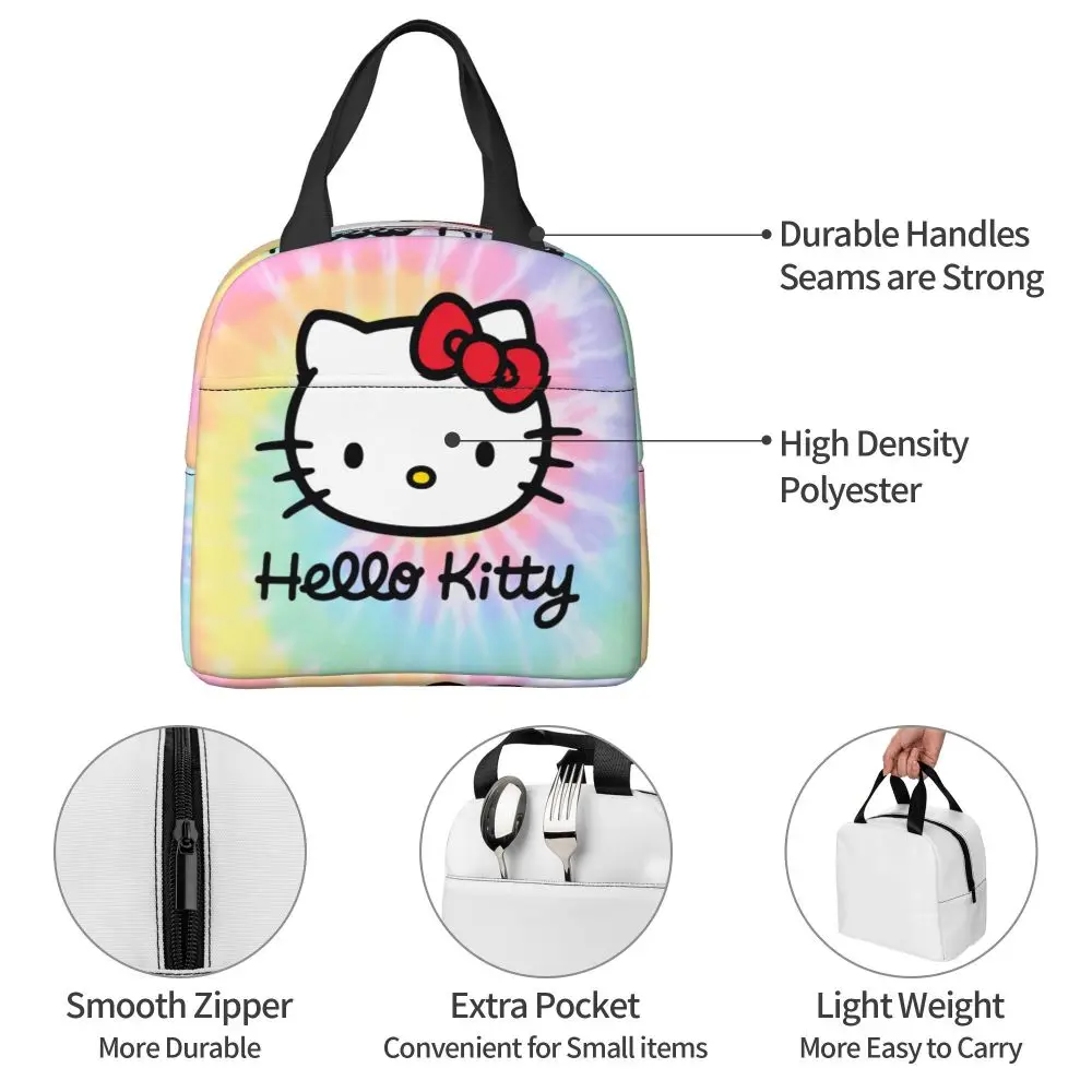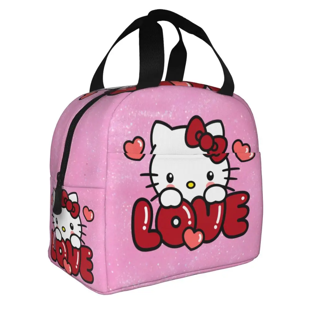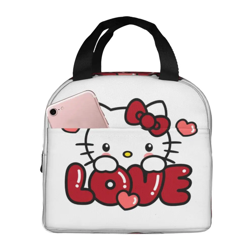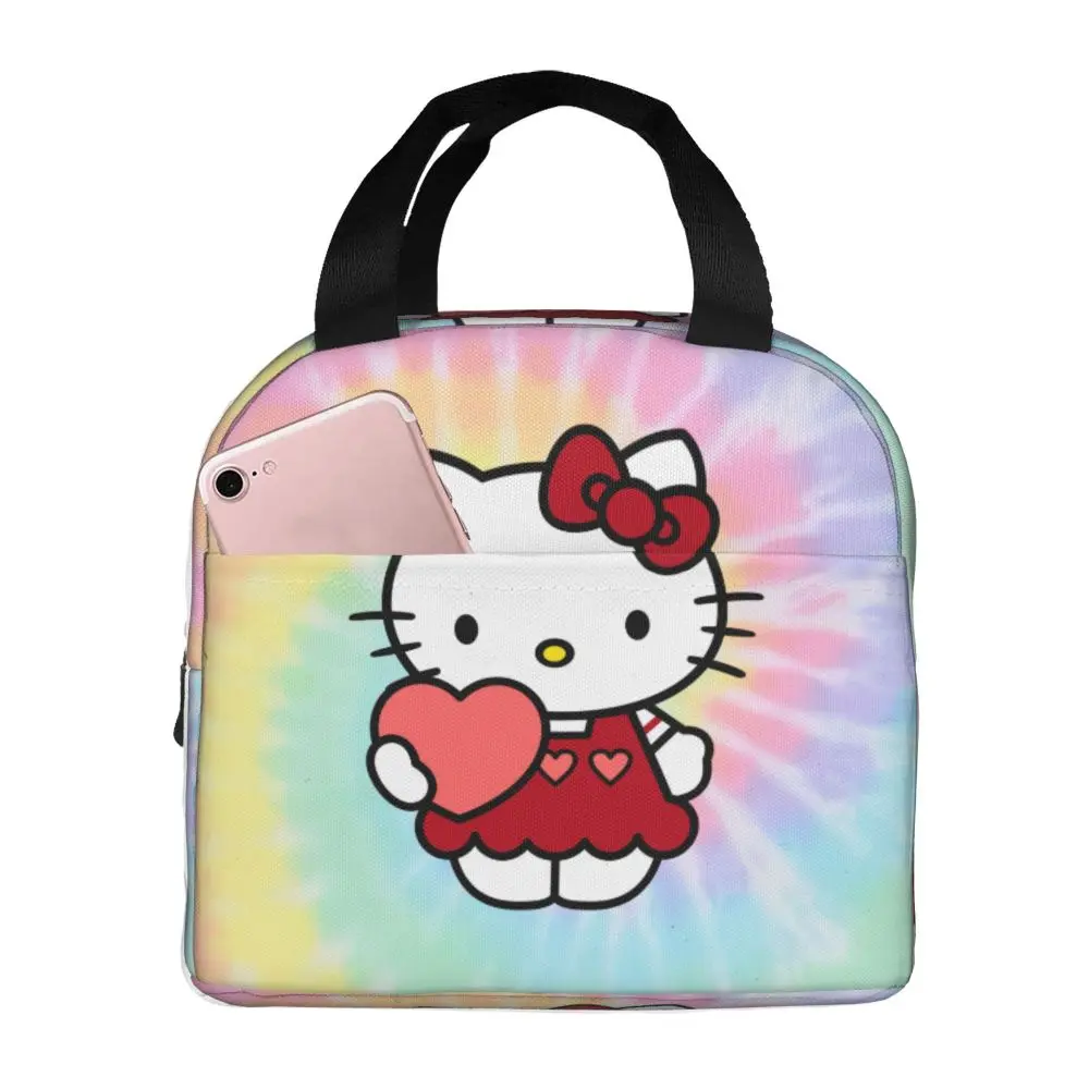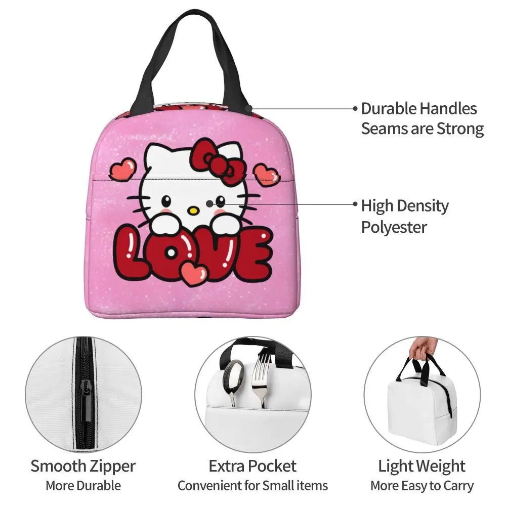 Custom Hello Kitty Cat Lunch Bag Leakproof Cooler Thermal Insulated Bento Box For Women Kids Picnic Travel Food Tote Bags