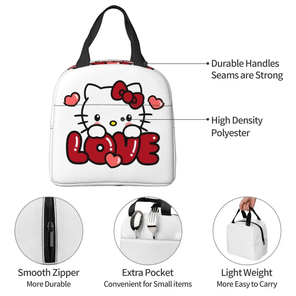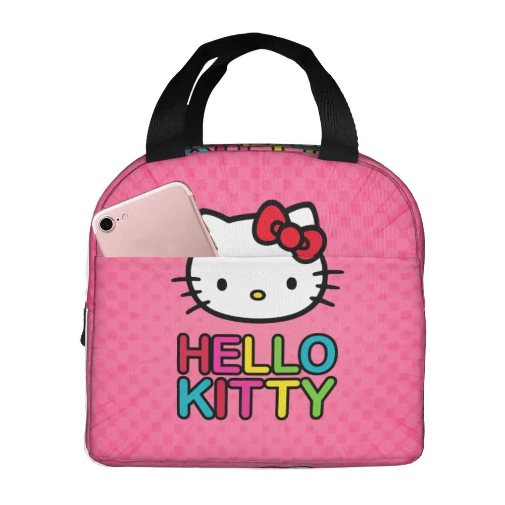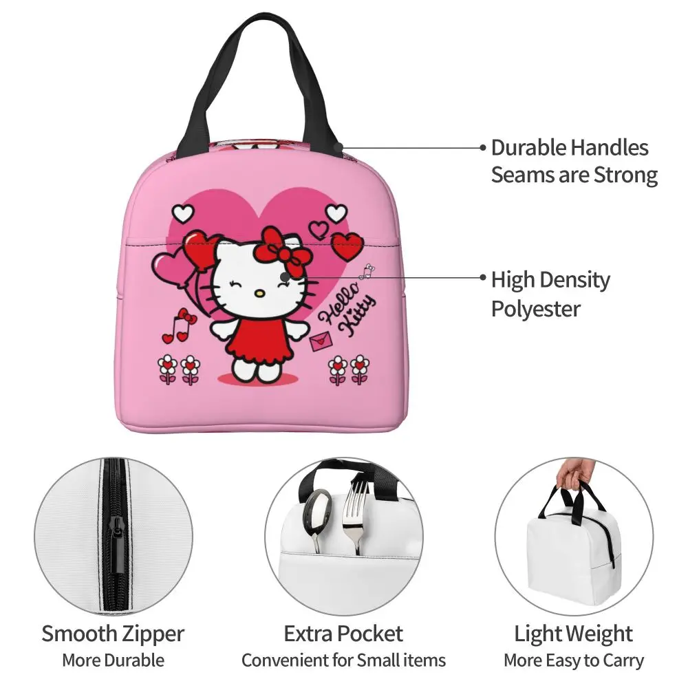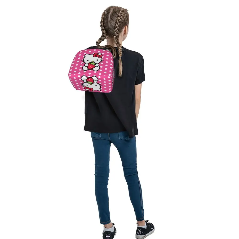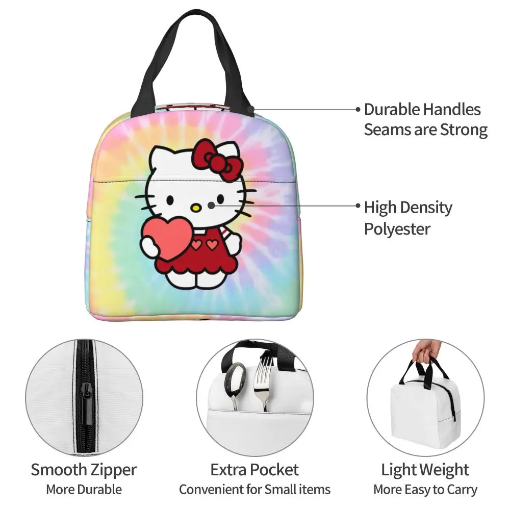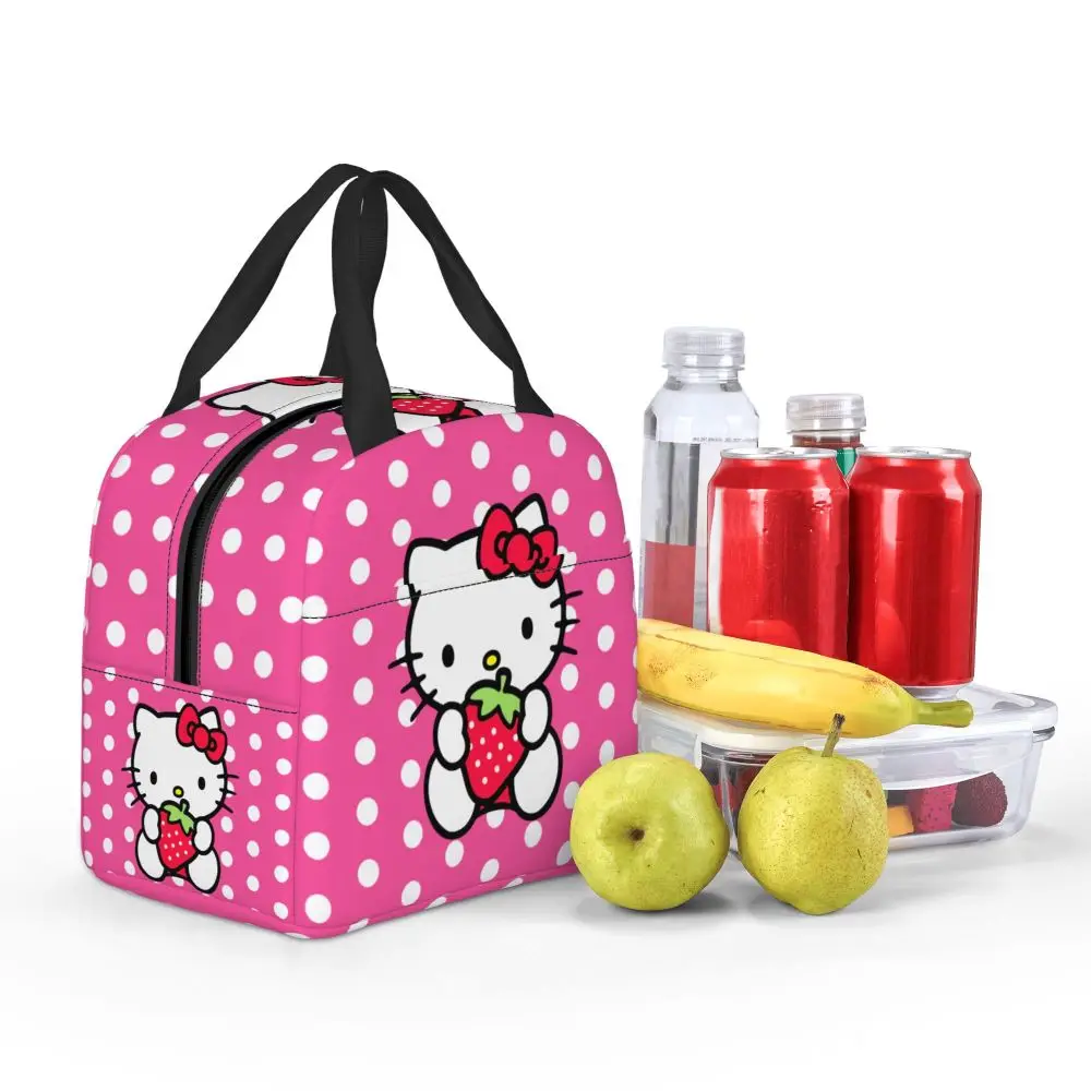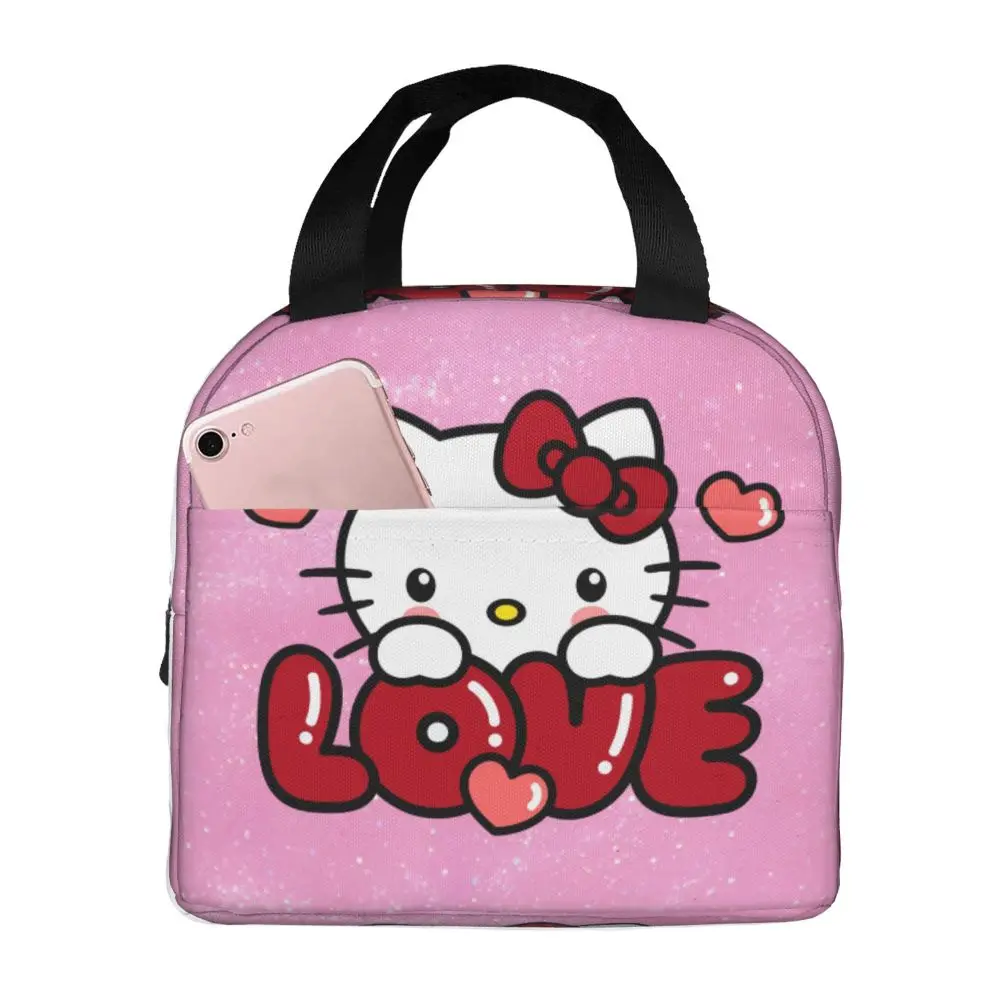 Custom Hello Kitty Cat Lunch Bag Leakproof Cooler Thermal Insulated Bento Box For Women Kids Picnic Travel Food Tote Bags