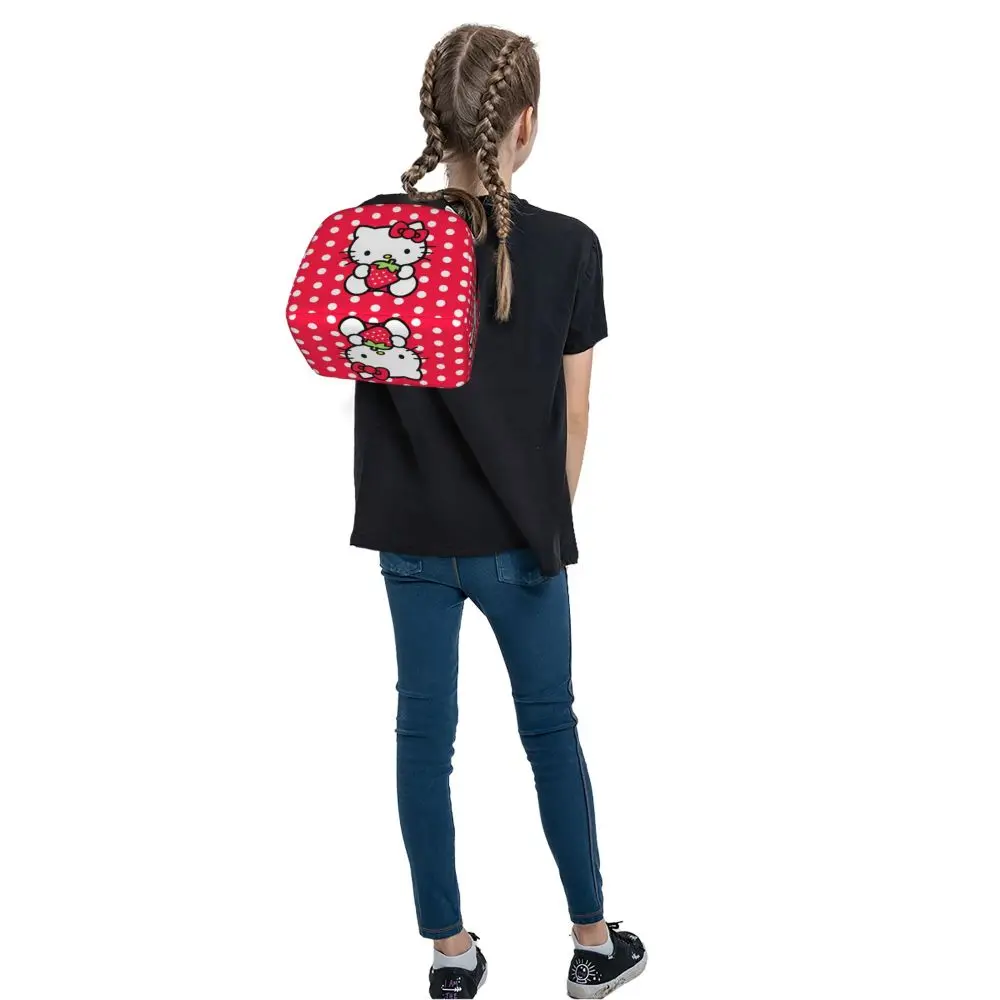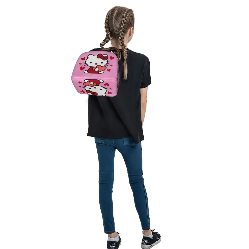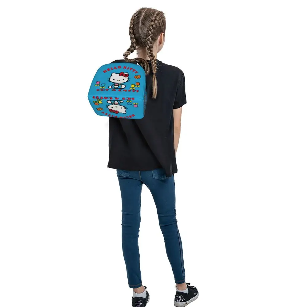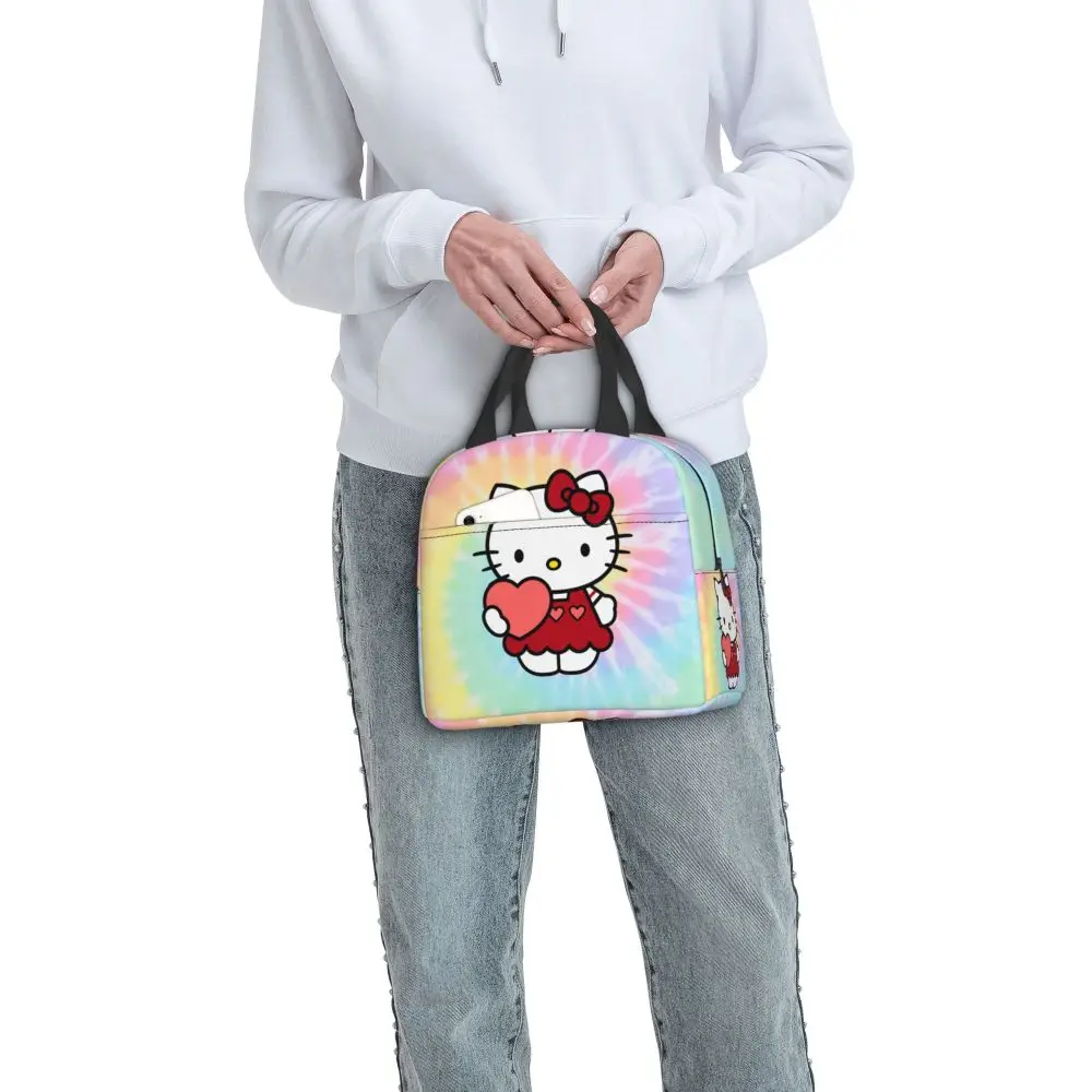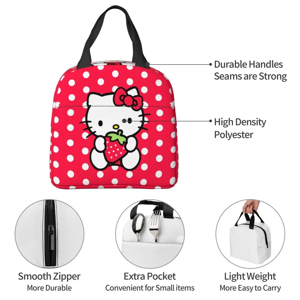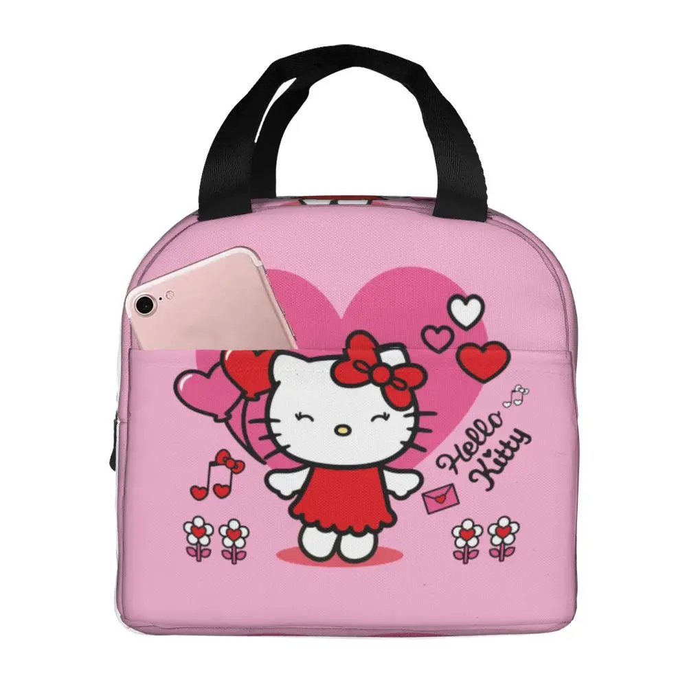 Custom Hello Kitty Cat Lunch Bag Leakproof Cooler Thermal Insulated Bento Box For Women Kids Picnic Travel Food Tote Bags