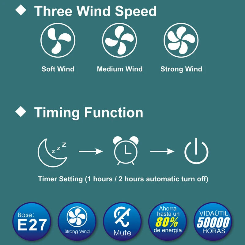 【EASY DIY INSTALLATION】Skip the hassle and cost of hiring an electrician and enjoy easy DIY installation of our fan light. Simply install it like an E27 bulb and you're ready to go.