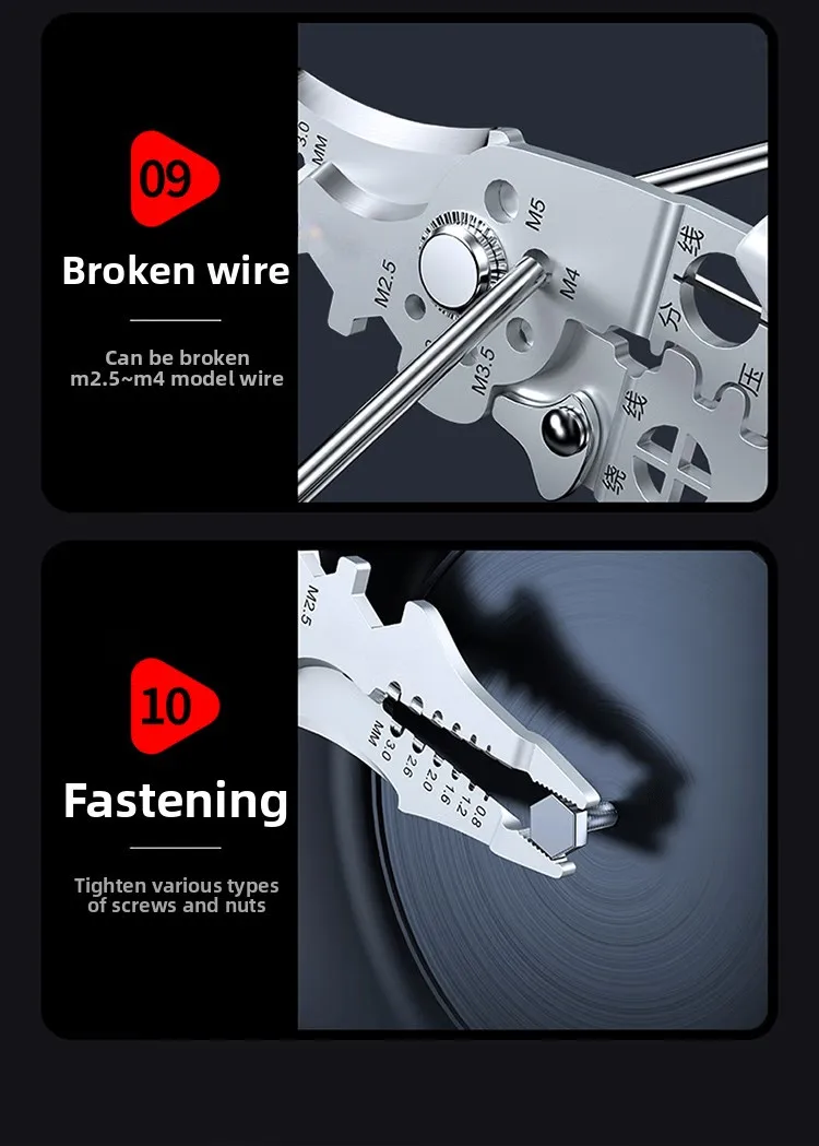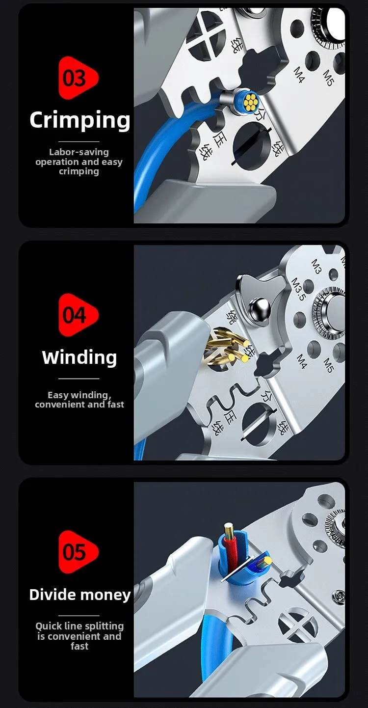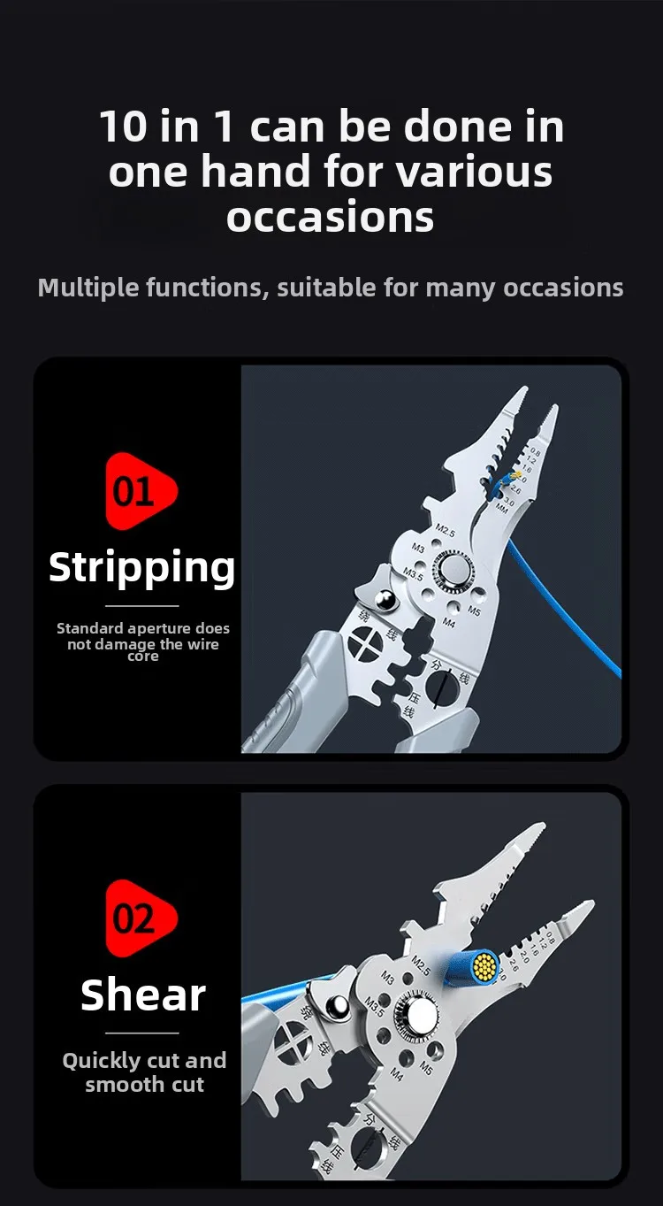 * Multifunctional Design: Designed to handle various electrician tasks such as wire cutting, stripping, winding, and wrenching—no need for frequent tool changes.