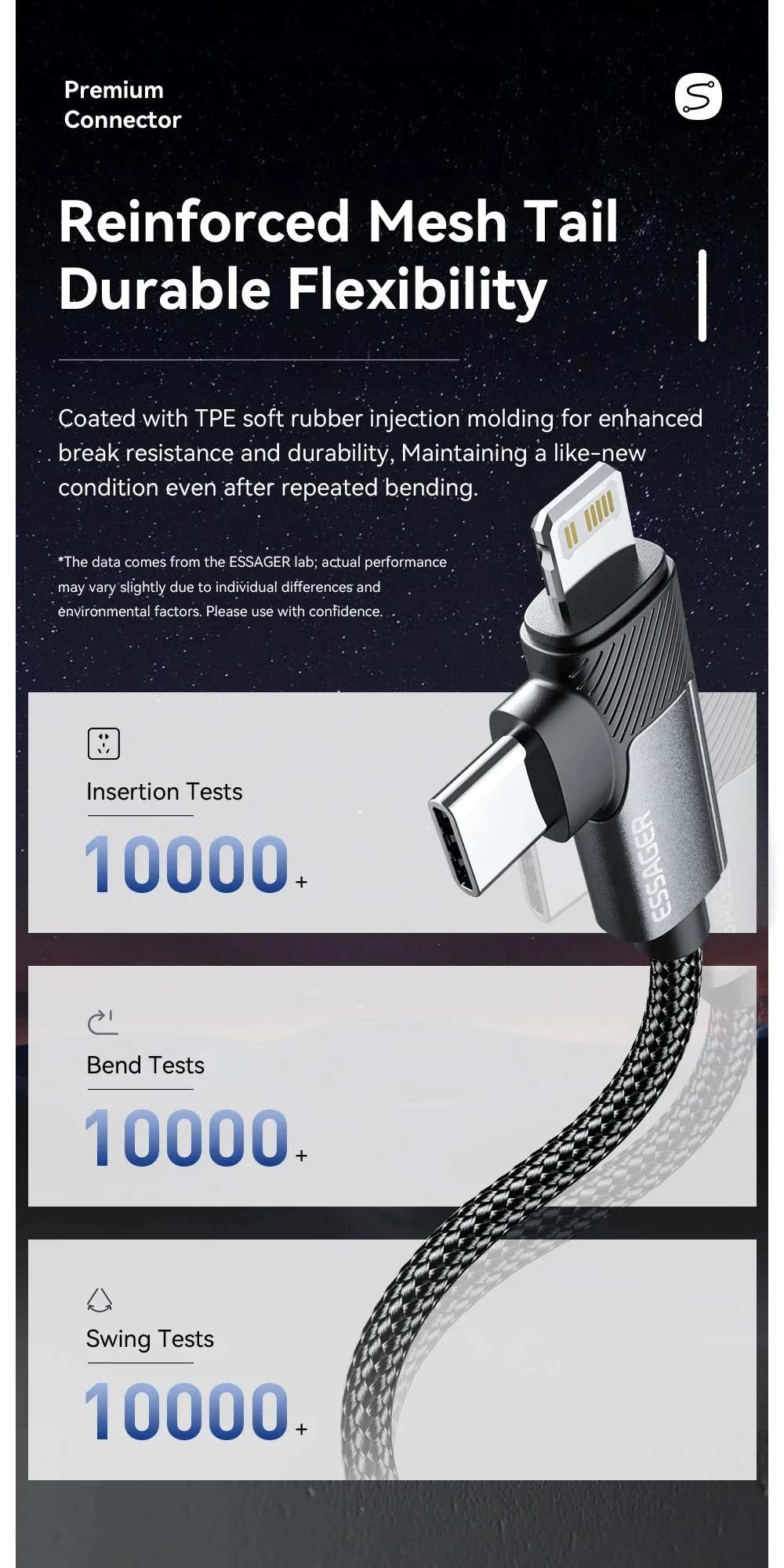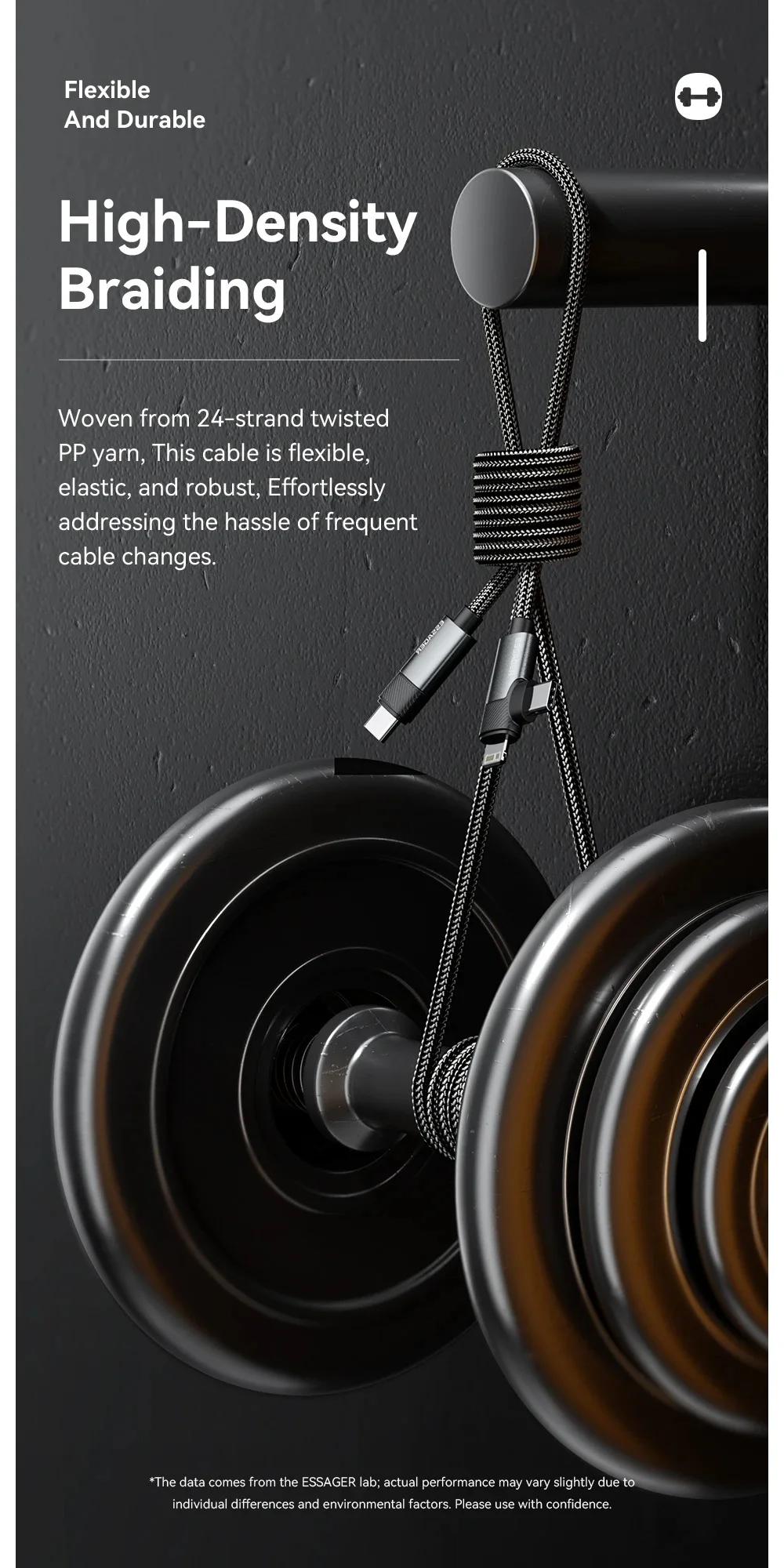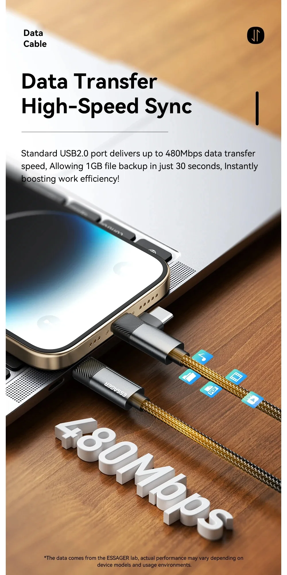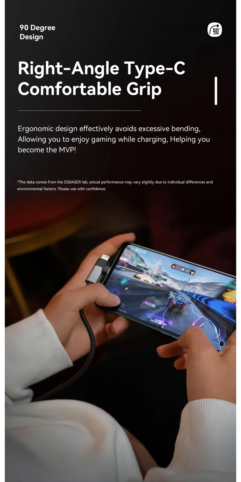 Essager 2-in-1 Right Angle Cable C-L 29W C-C 65W Fast Charging Elbow Data Cable For iPhone 16 15 14 MacBook Lenovo Dell iPad Pro