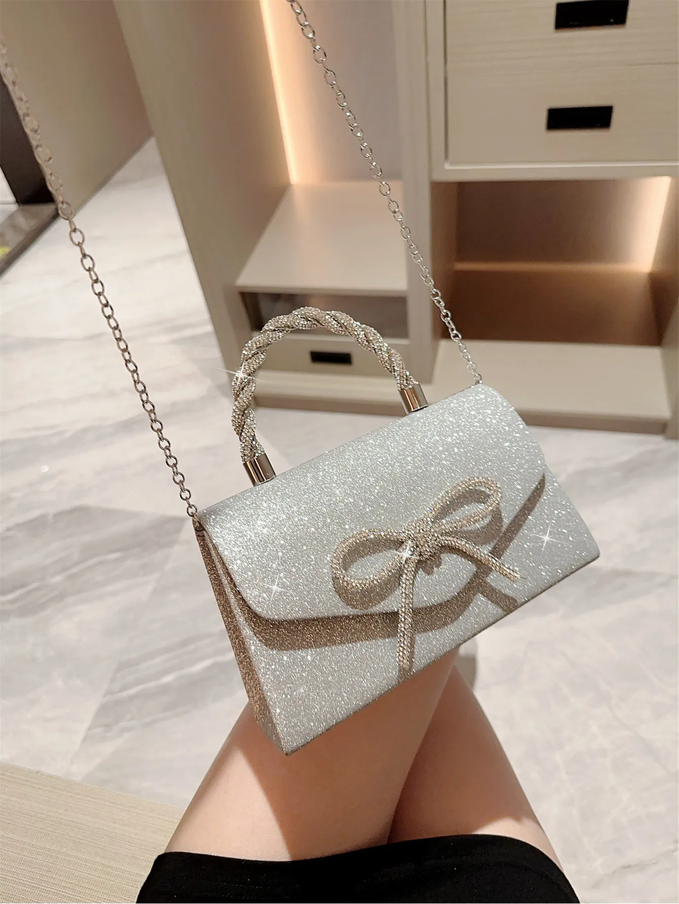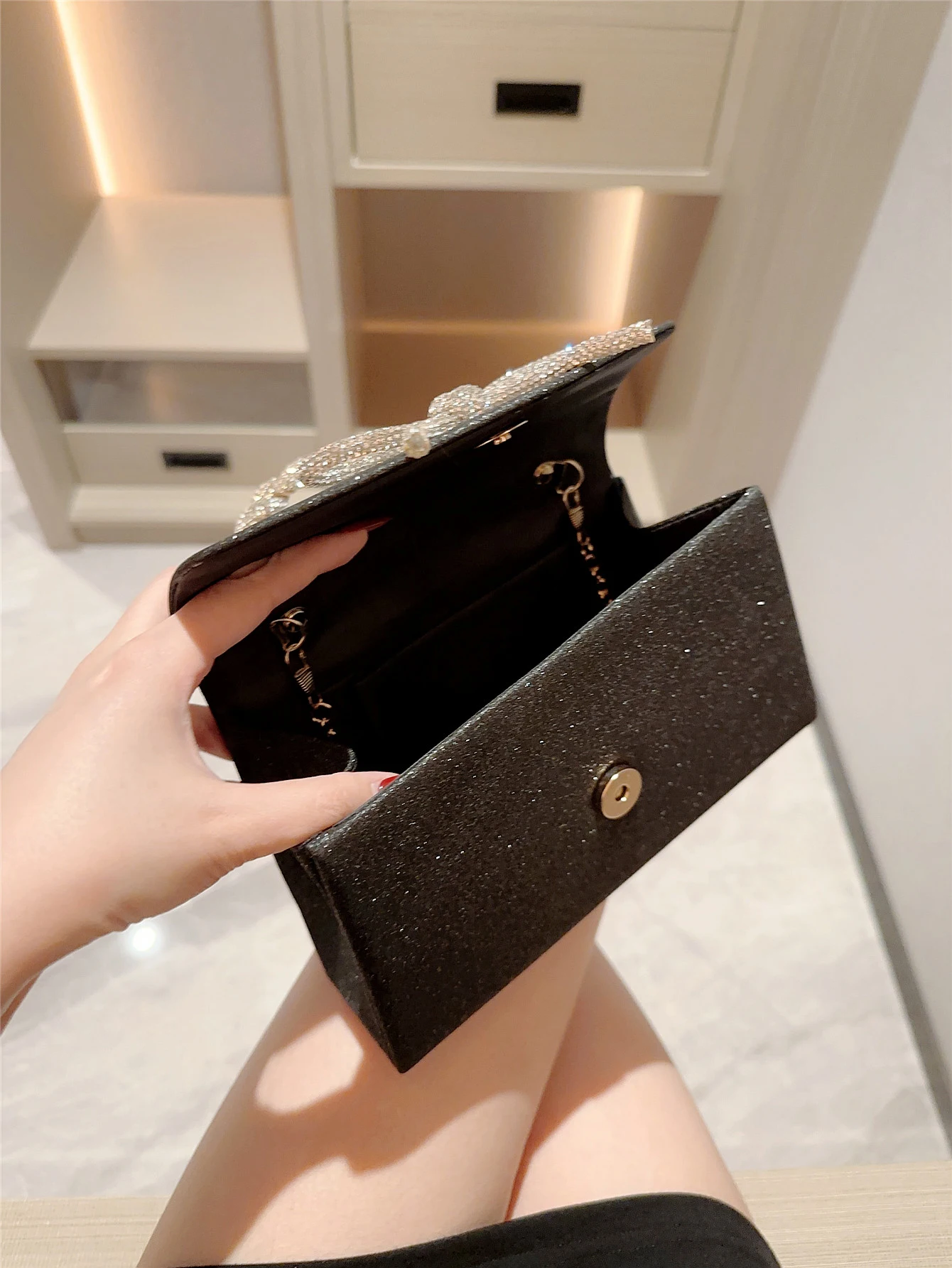 Evening Bag Dress Versatile European and American Clutch Bag Crossbody Celebrity Fashion Diamond Bow Chain Bag